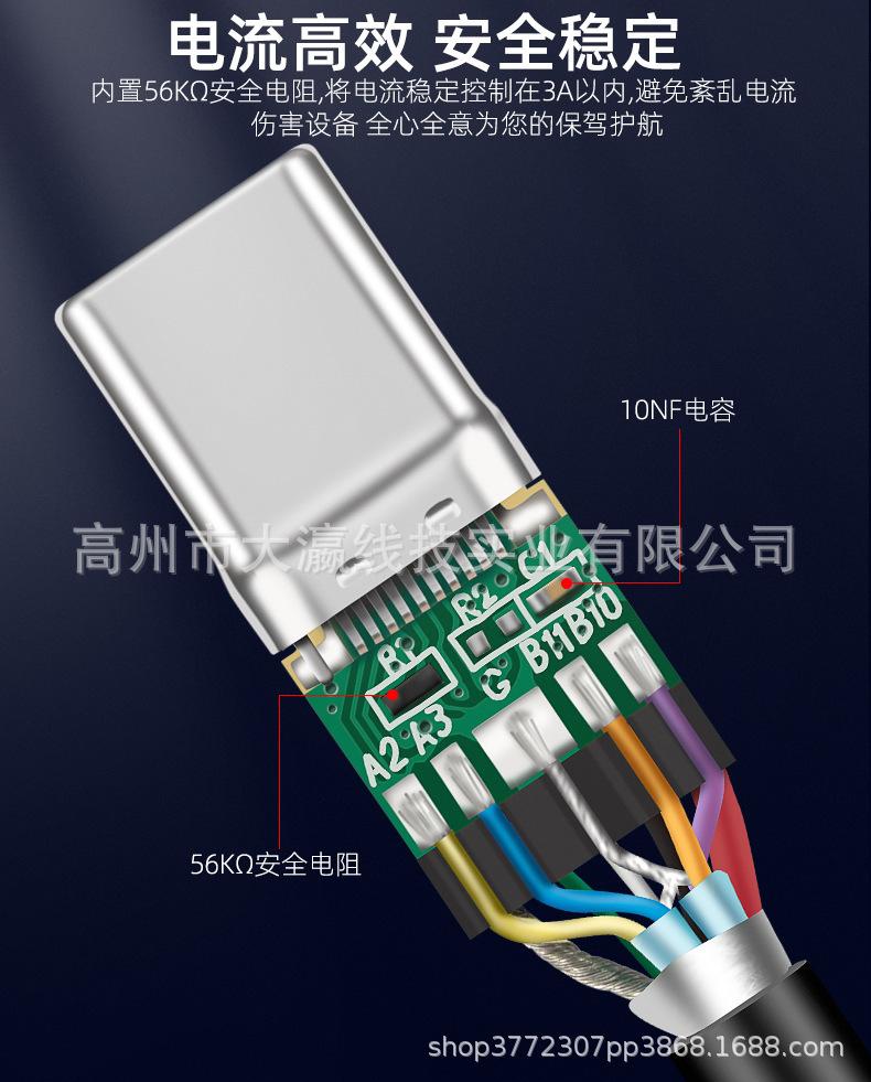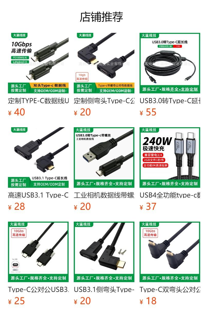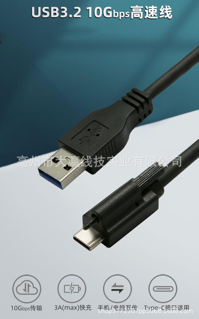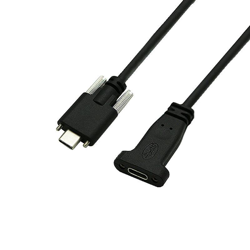 Cable de datos USB 3.2 tipo C personalizado, macho a macho, con panel fijo de tuerca simple o doble, 10 Gbp, 100 W
