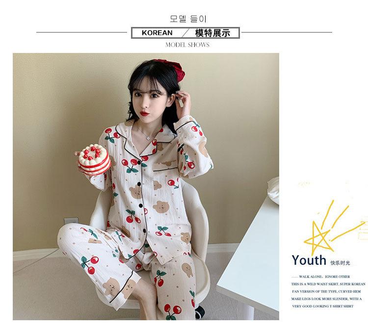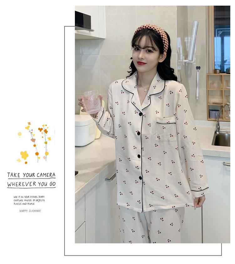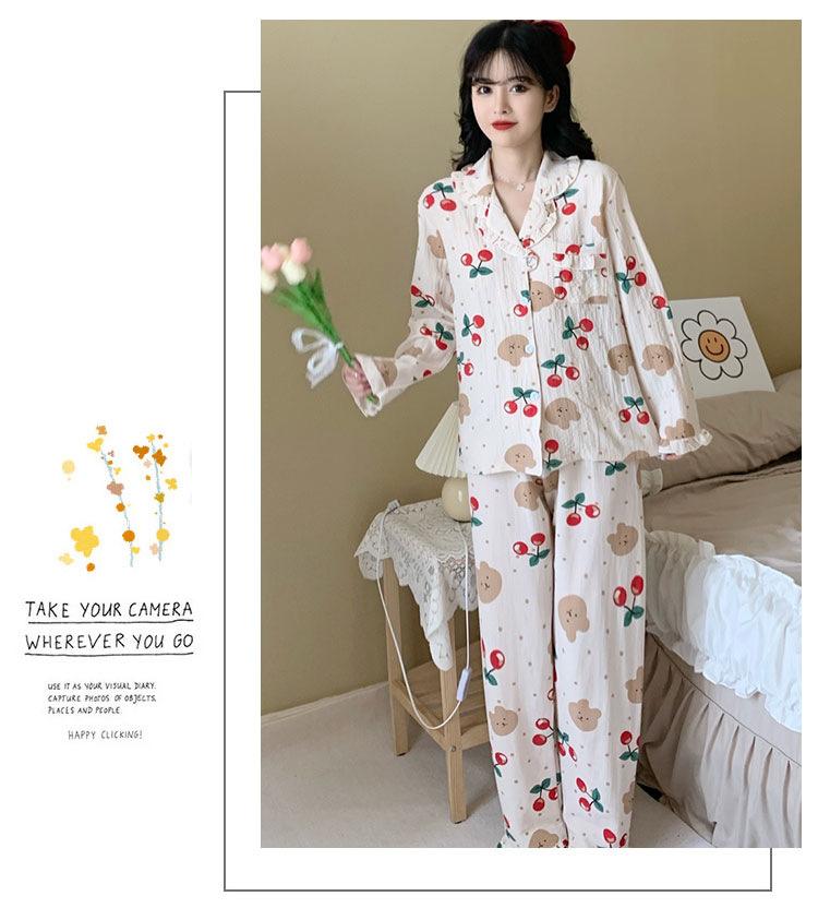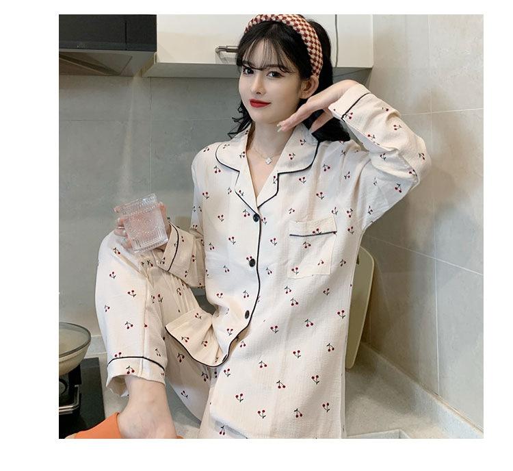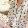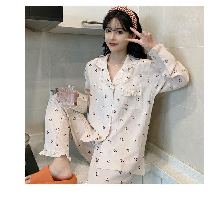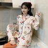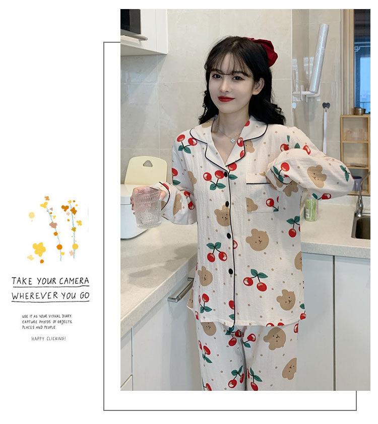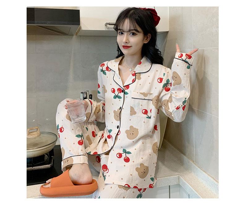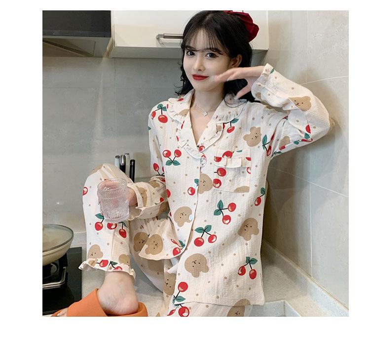 Cárdigan de Algodón Burbuja para Mujer Estilo Coreano Estilo ins Dulce Lindo Manga Larga Pijama Solapa Ropa Casual para el Hogar