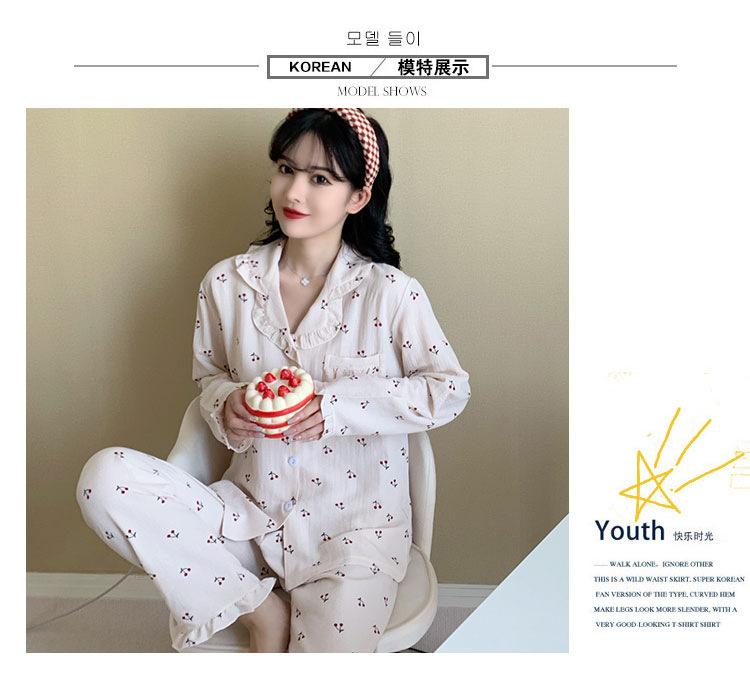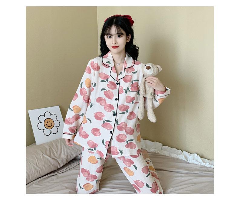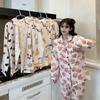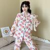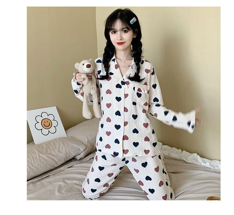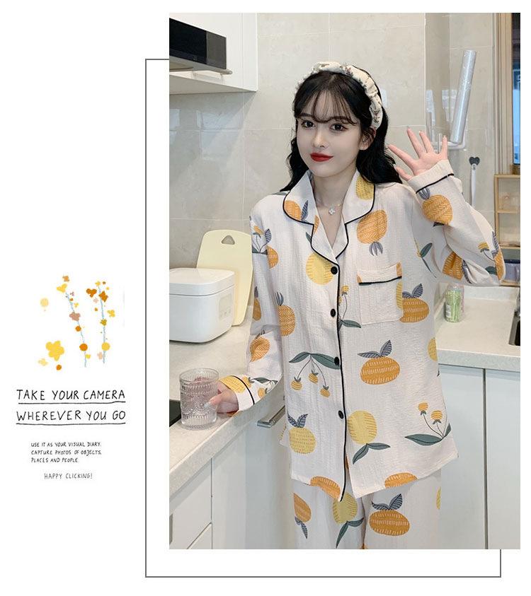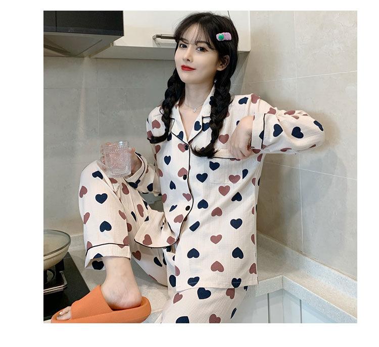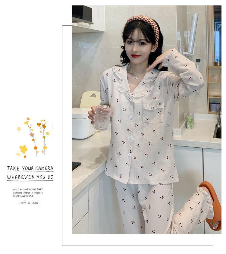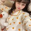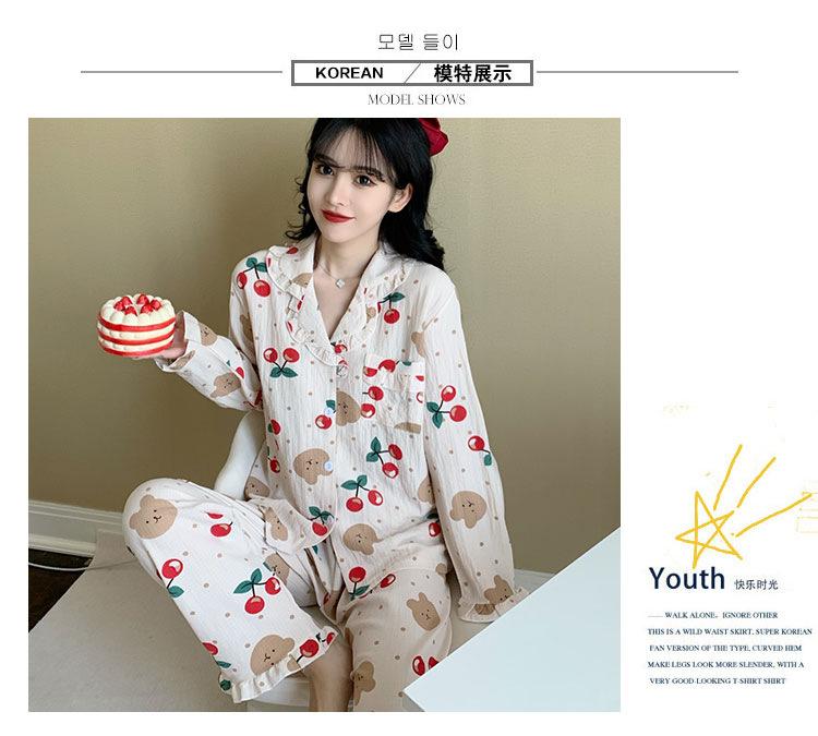 Cárdigan de Algodón Burbuja para Mujer Estilo Coreano Estilo ins Dulce Lindo Manga Larga Pijama Solapa Ropa Casual para el Hogar