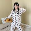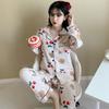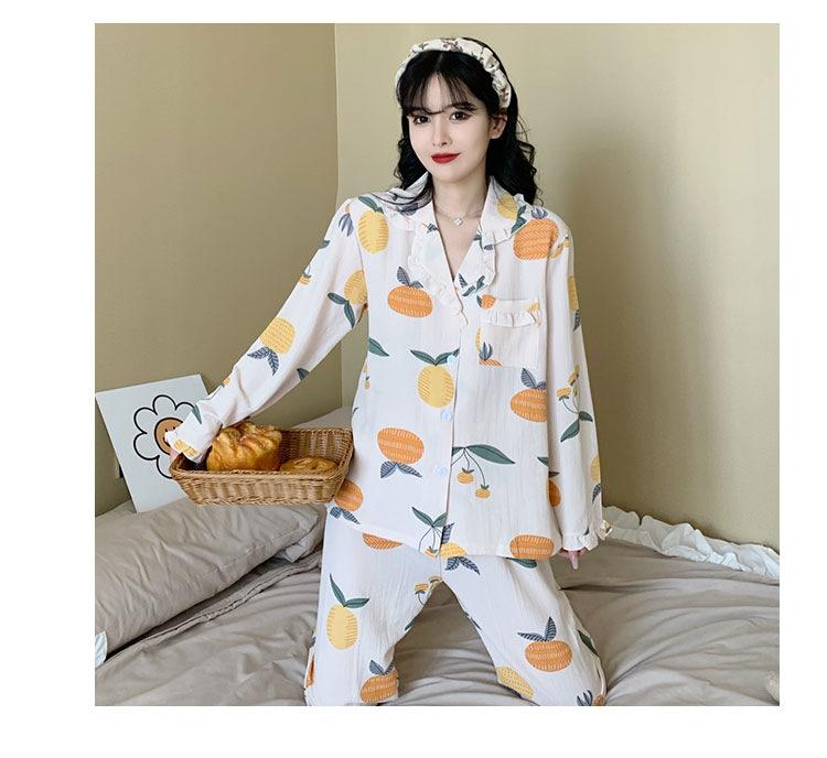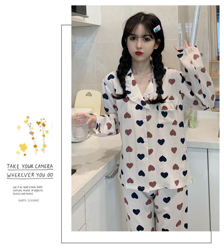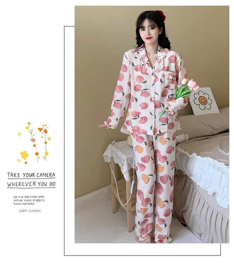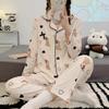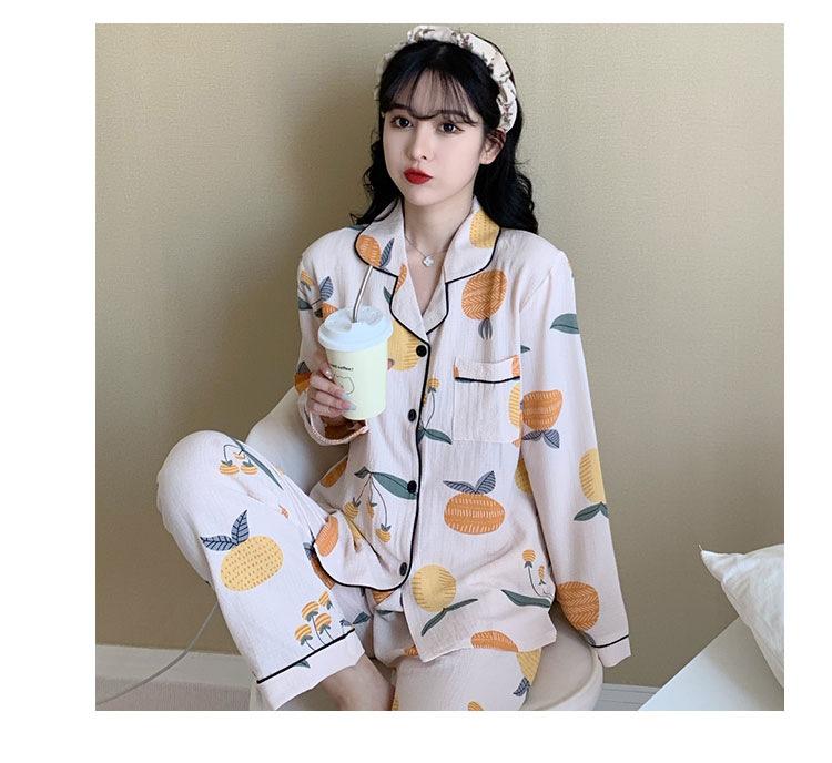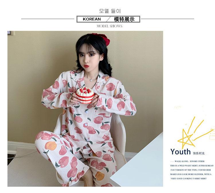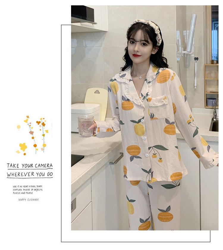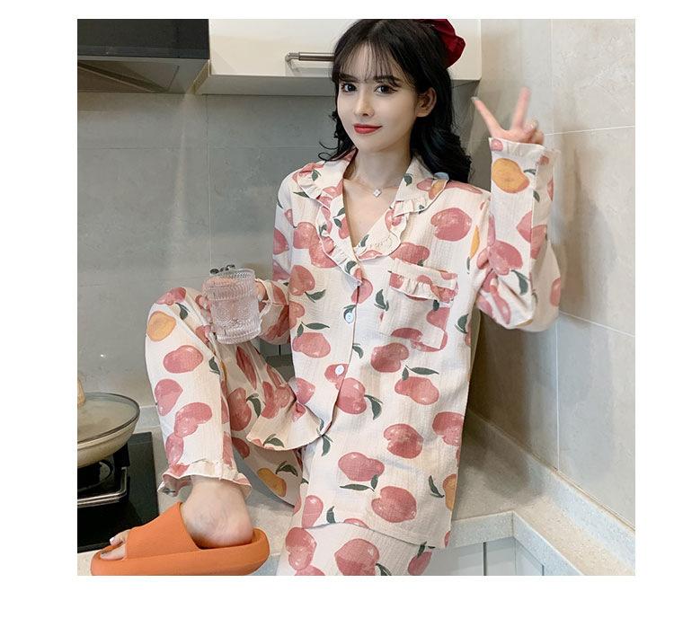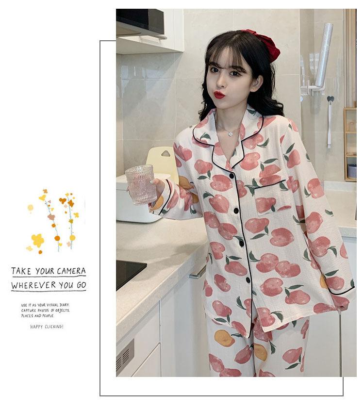 Cárdigan de Algodón Burbuja para Mujer Estilo Coreano Estilo ins Dulce Lindo Manga Larga Pijama Solapa Ropa Casual para el Hogar