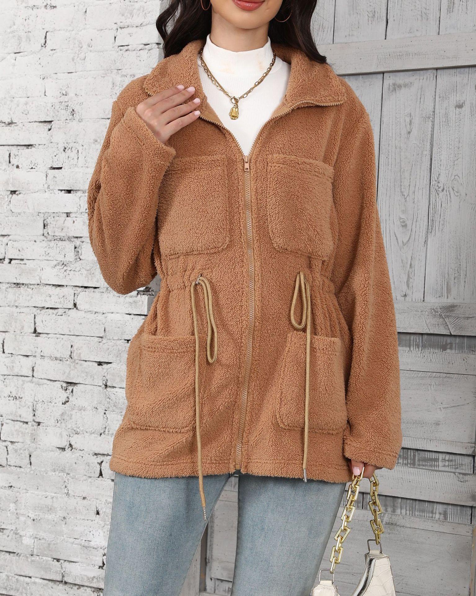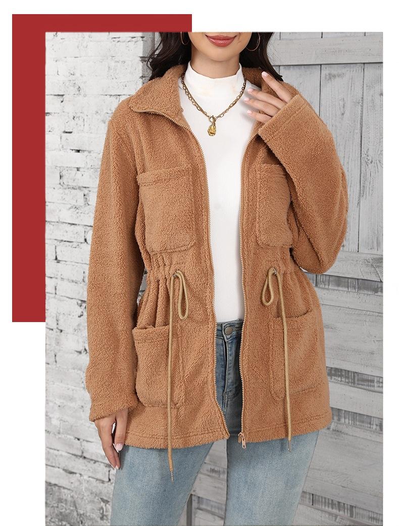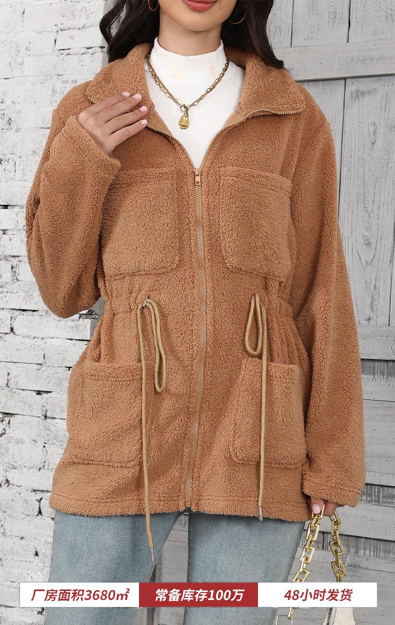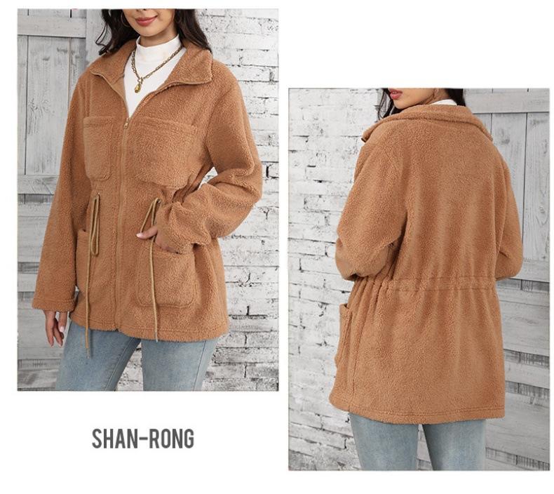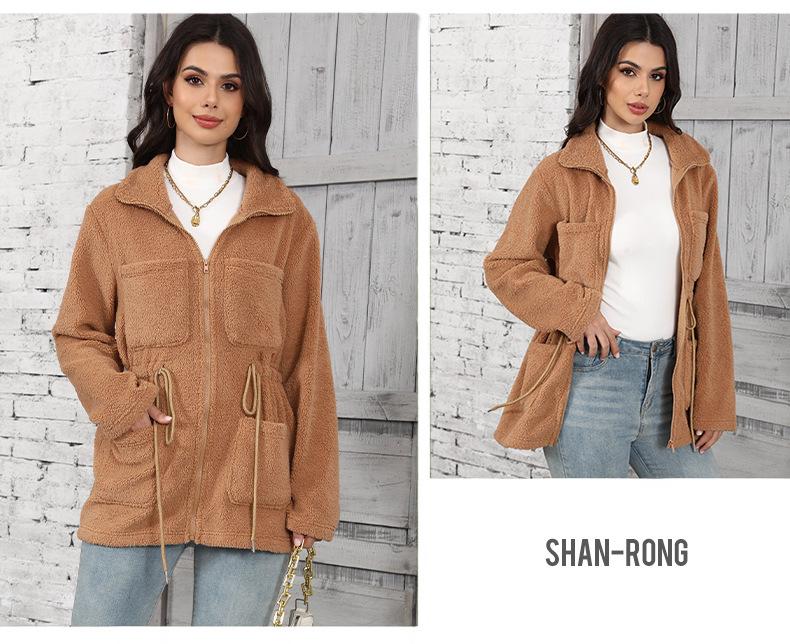 Flash Velvet 2024 Ropa de mujer transfronteriza europea y americana Nuevo otoño e invierno Bolsillo suelto Cremallera Solapa Manga larga Cárdigan Abrigo de felpa