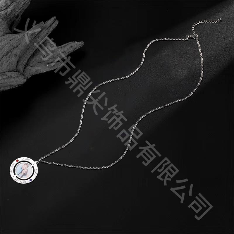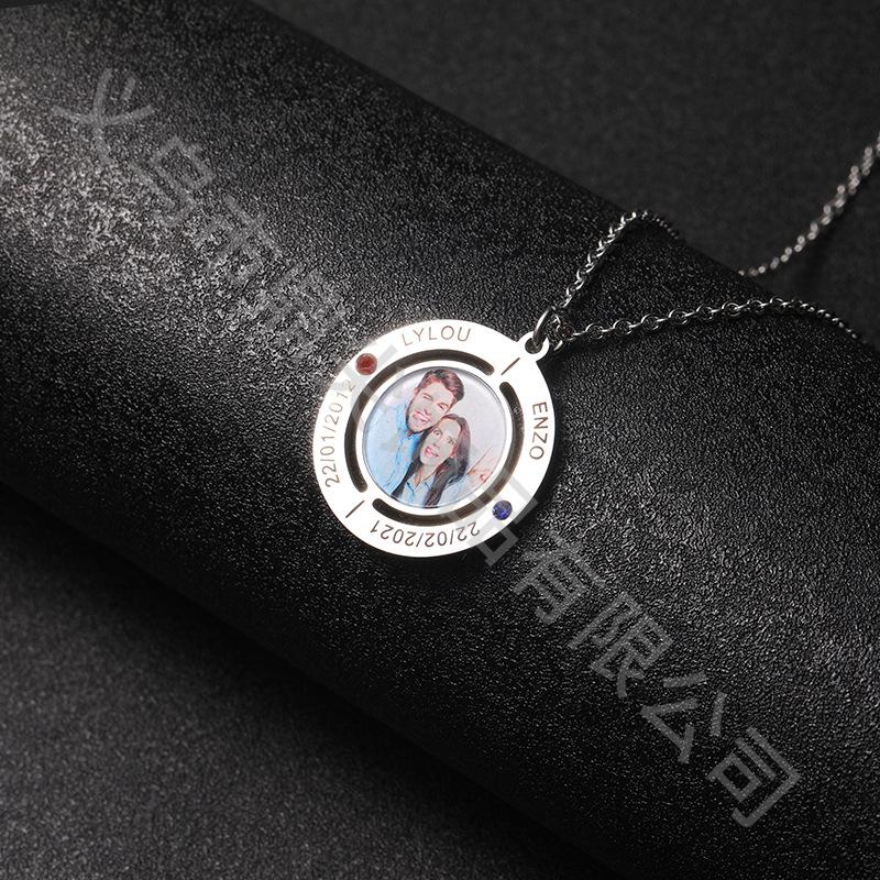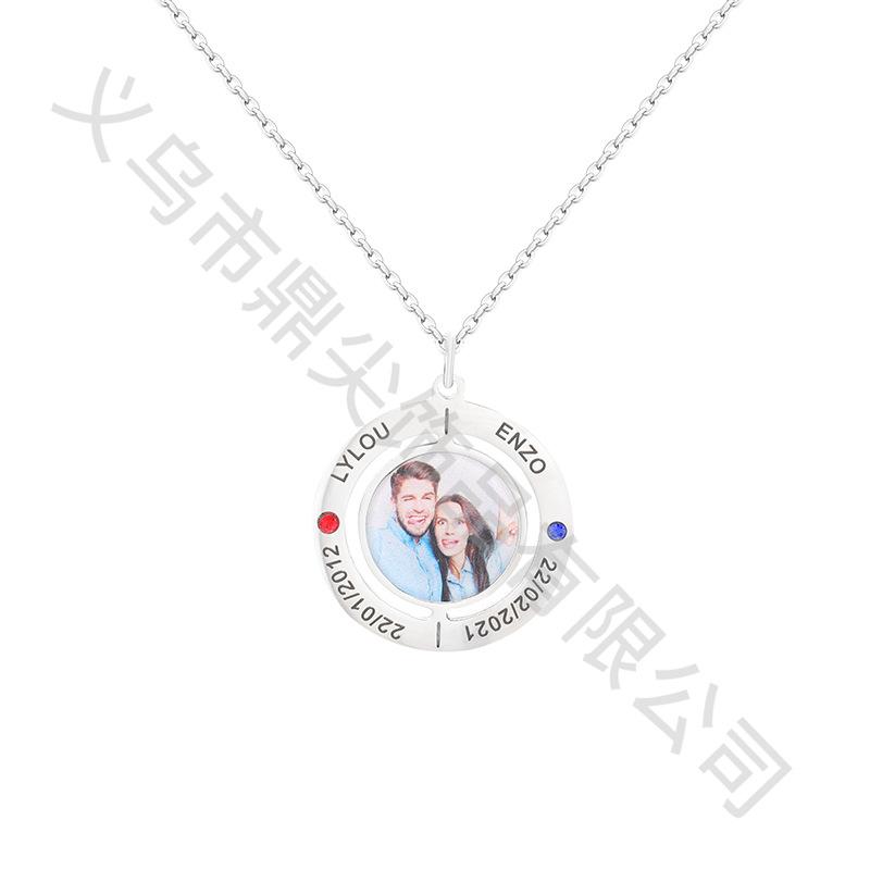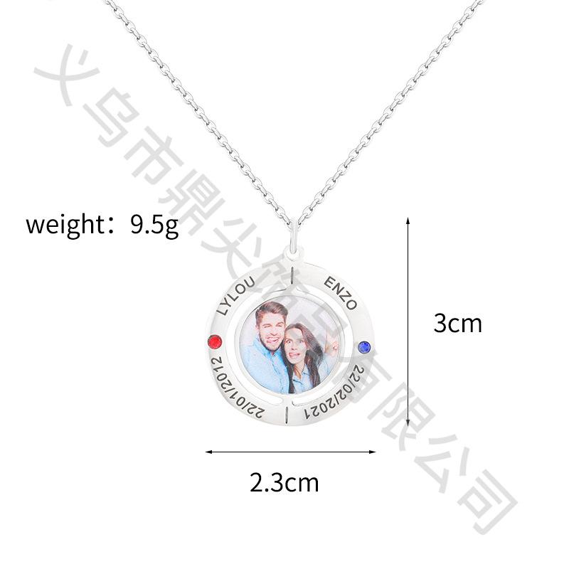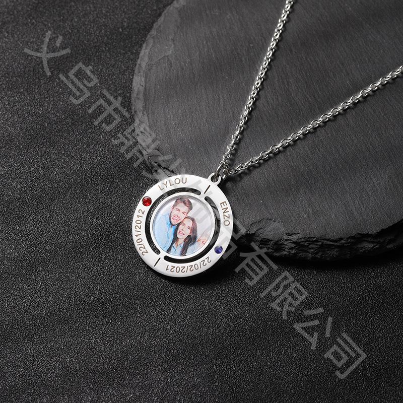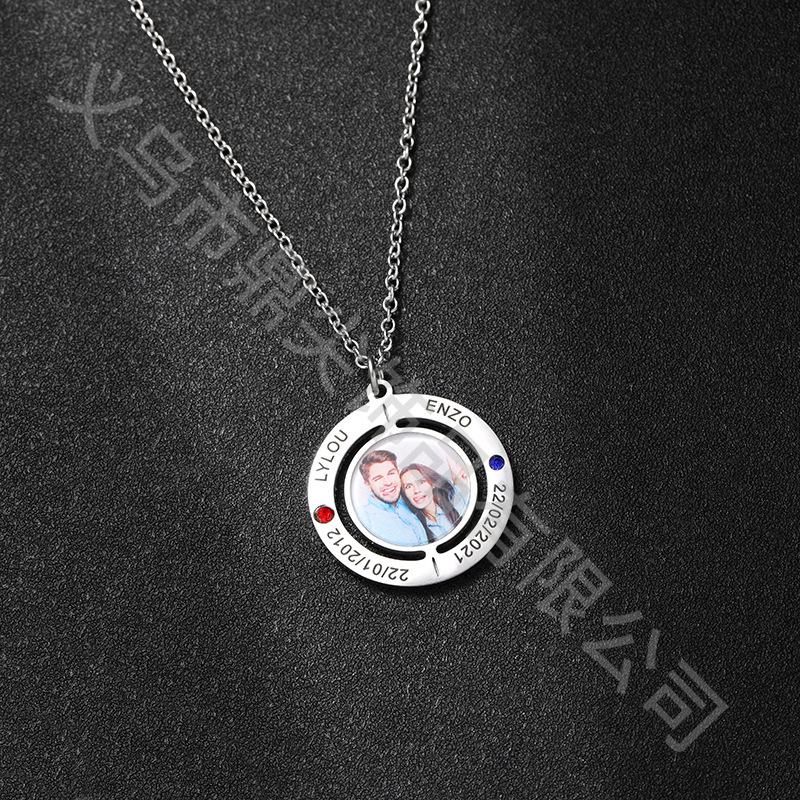 Anillo de moda transfronterizo con nombre y foto grabados, collar de diamantes, colgante versátil para pareja, regalo familiar.