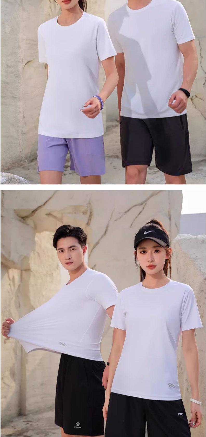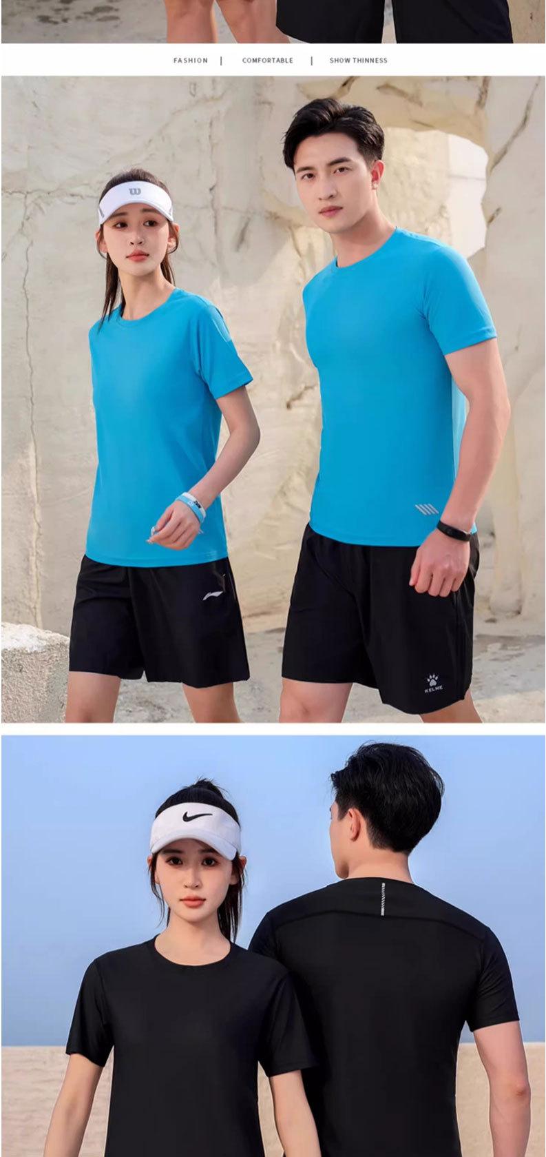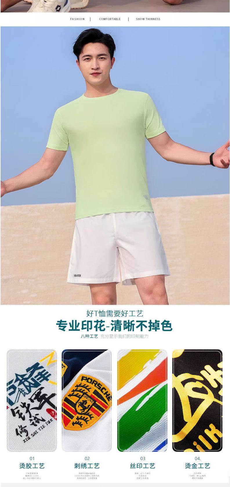 Camiseta de manga corta con cuello redondo y secado rápido, con logotipo personalizado impreso, ideal para deportes al aire libre, correr y hacer ejercicio.