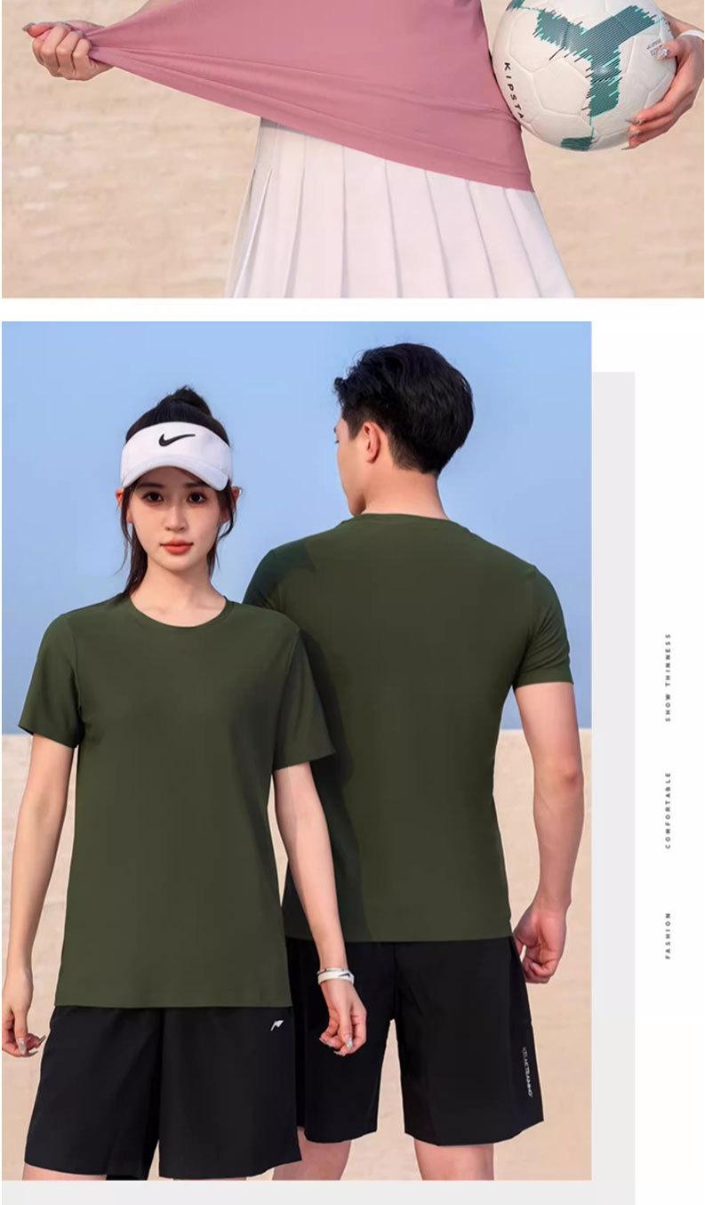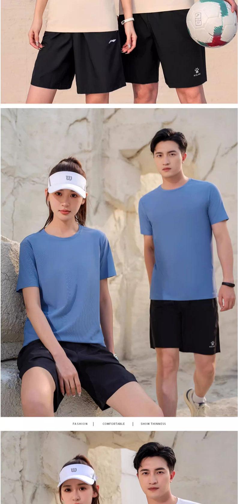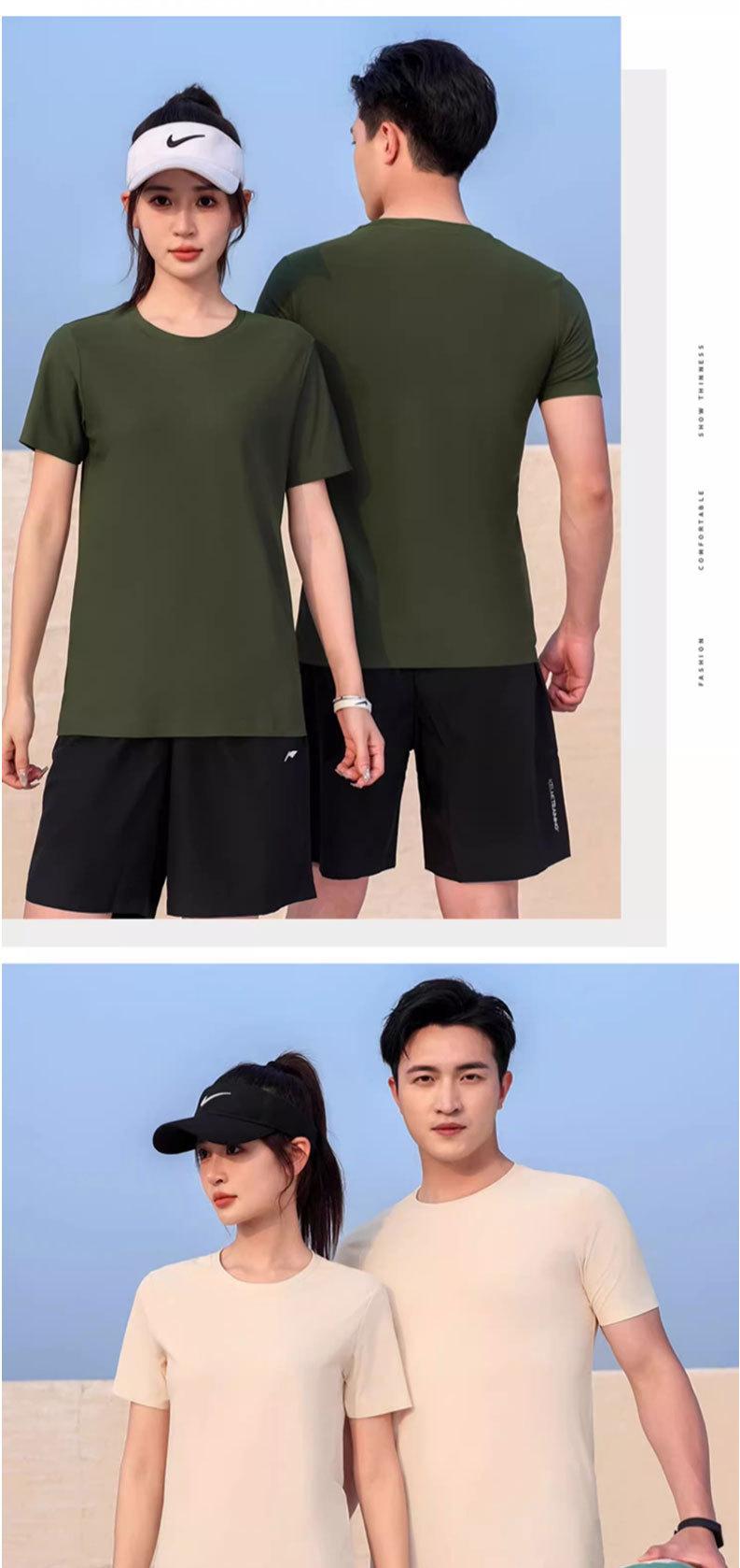 Camiseta de manga corta con cuello redondo y secado rápido, con logotipo personalizado impreso, ideal para deportes al aire libre, correr y hacer ejercicio.