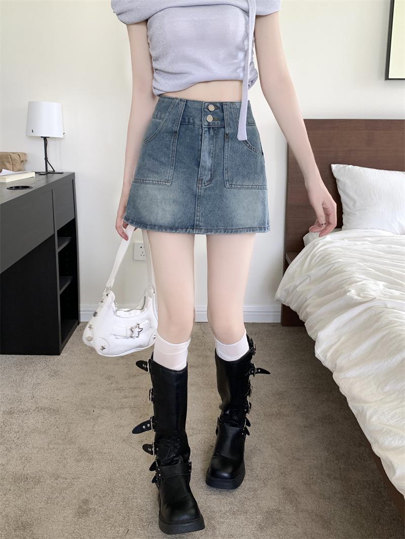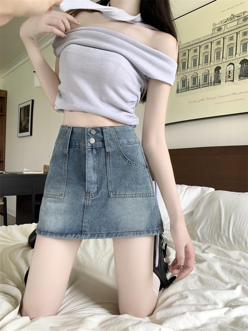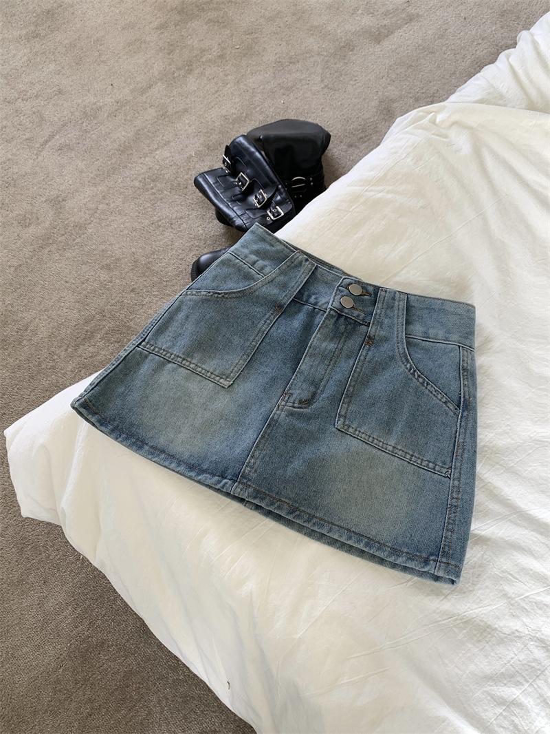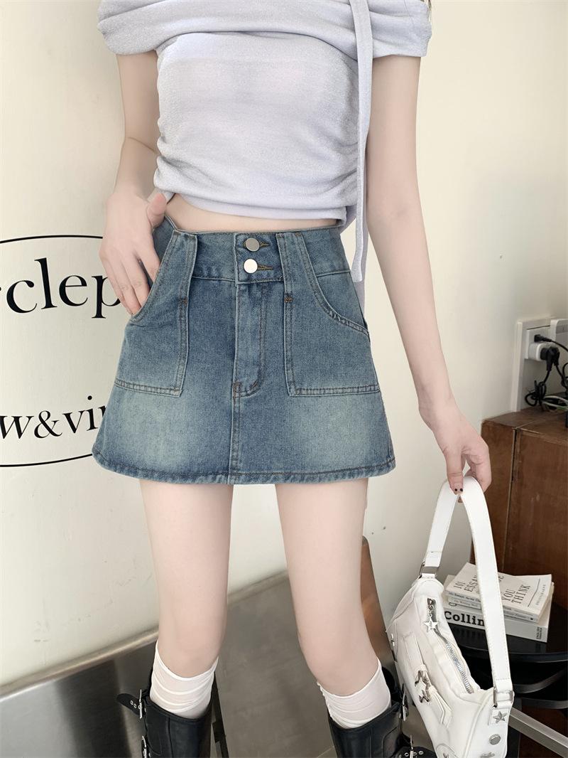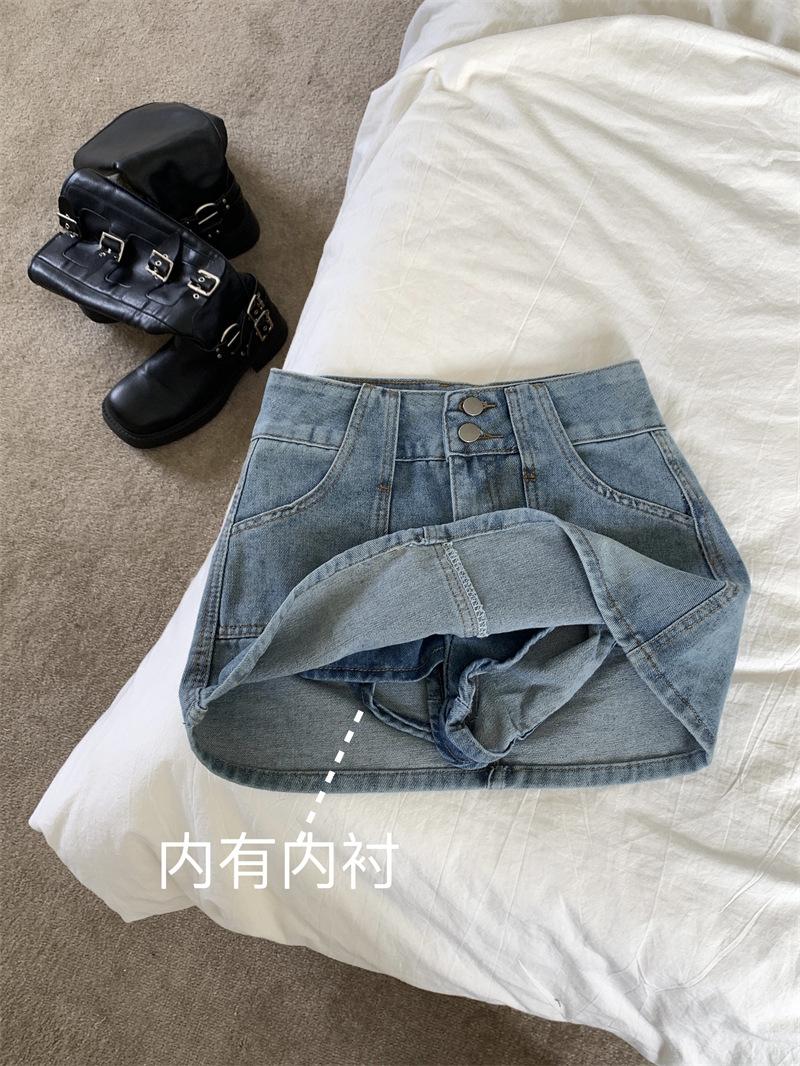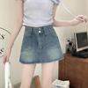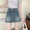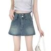 Falda vaquera de media longitud con doble hebilla y nicho para mujer, nueva moda, antibrillo, cintura alta, corte A, estilo retro, corta, pantalones