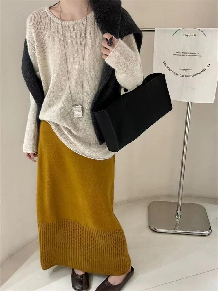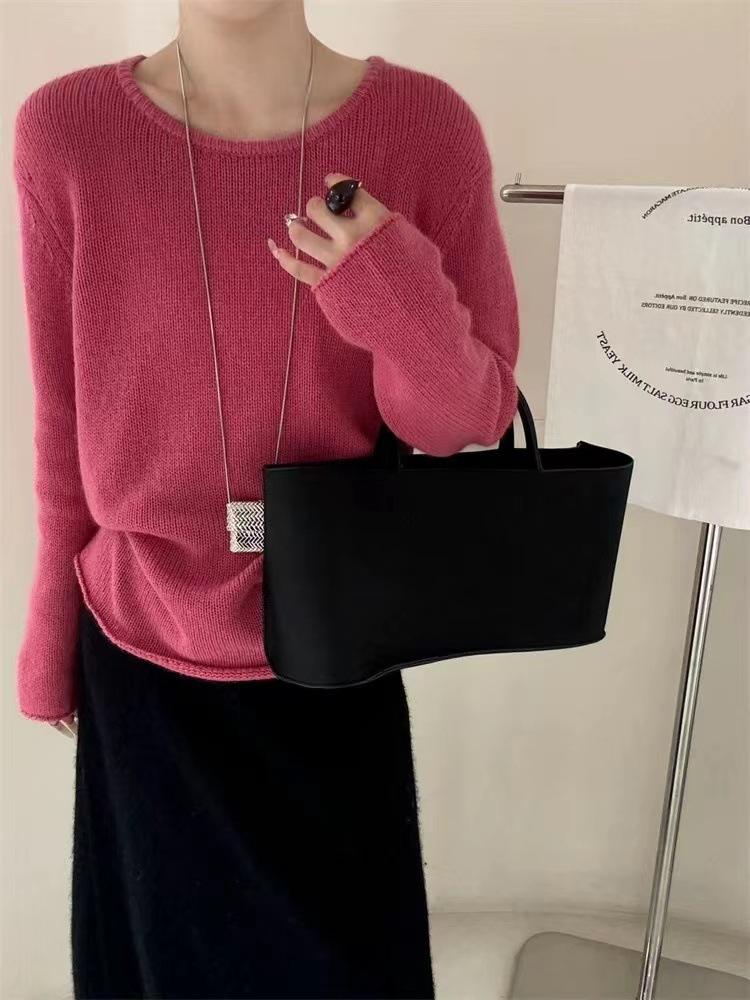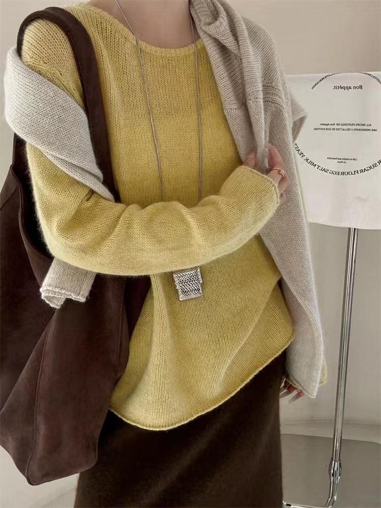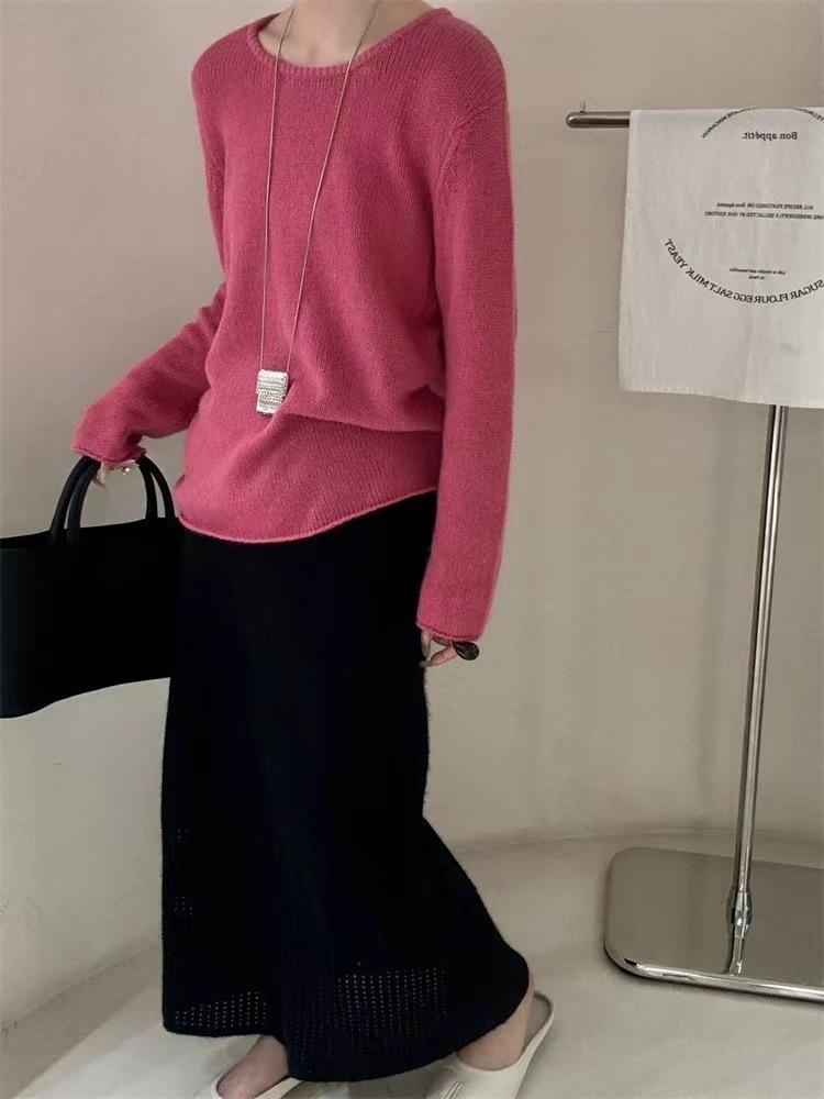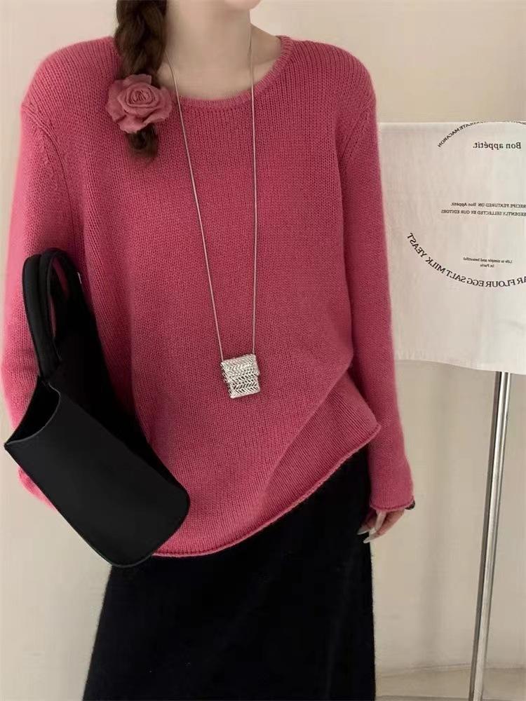 Suéter de cuello redondo para mujer, suéter holgado y suave, informal, sencillo, combinable con todo, para otoño e invierno, 24 unidades