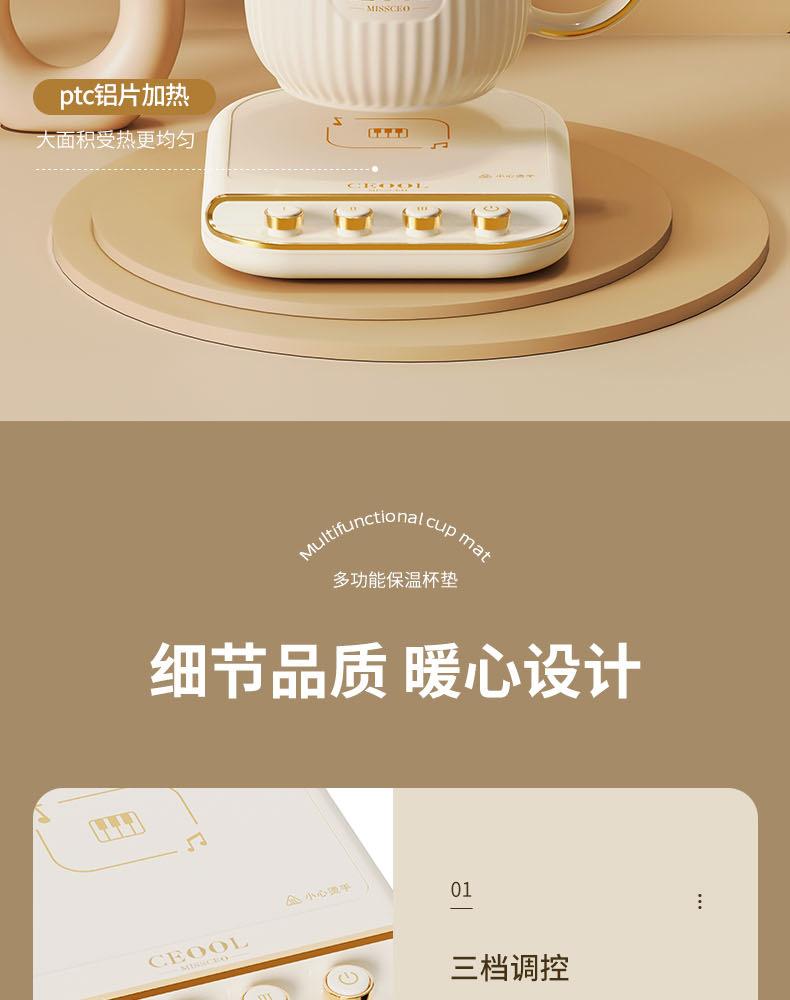 Presidente de CEOOL Señorita temperatura constante calefacción posavasos tres bloques temperatura constante temperatura constante taza caliente 55 grados aislamiento taza de agua taza caliente