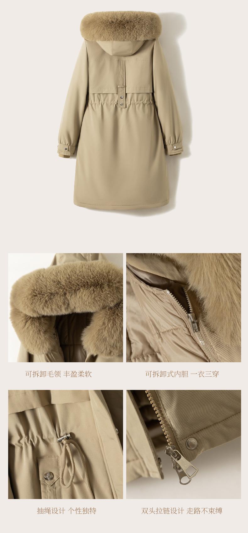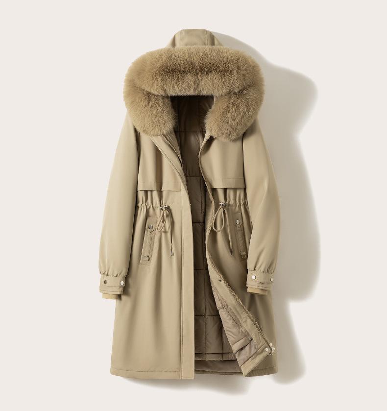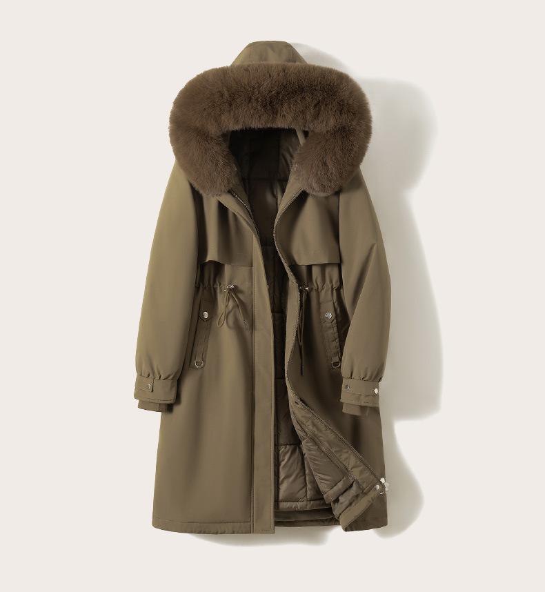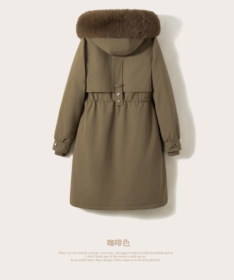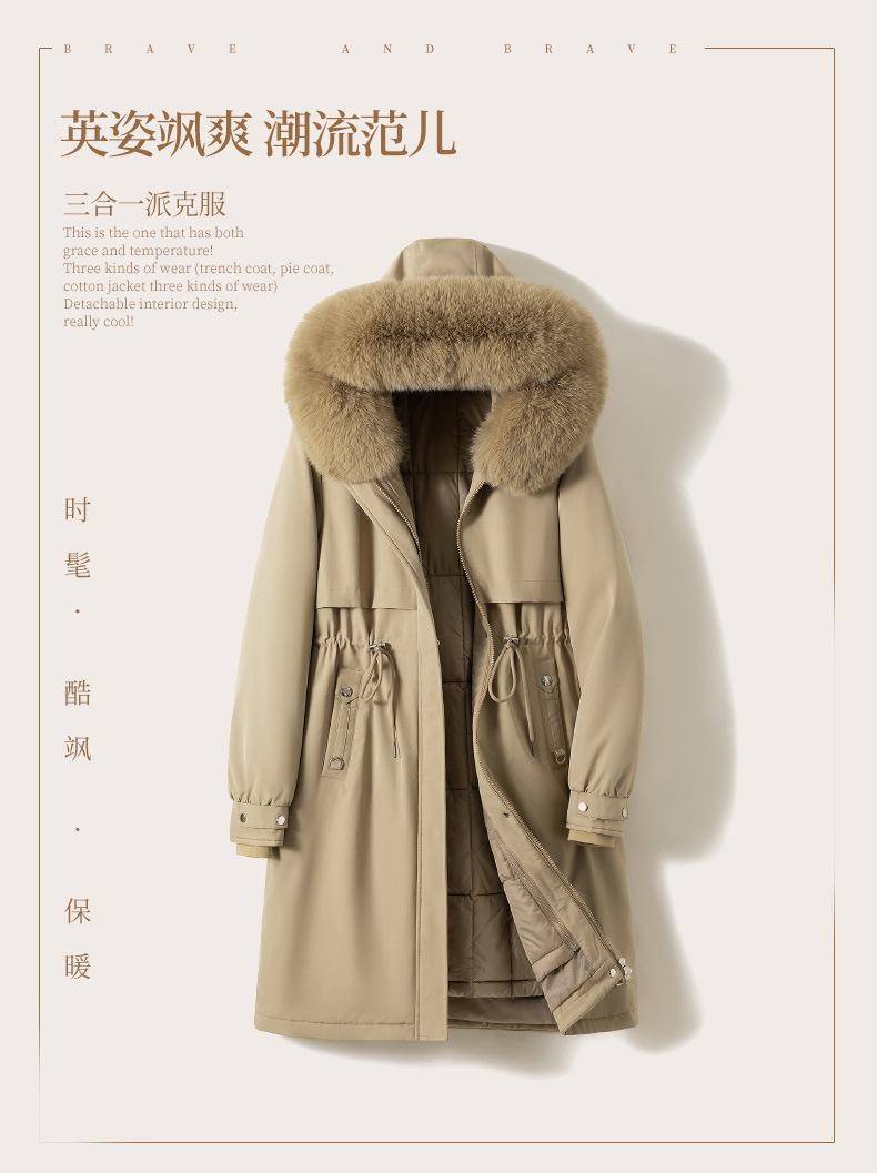 Abrigo Parker de invierno grueso y desmontable de longitud media para mujer, nuevo abrigo acolchado de algodón y plumón de piel de 2024