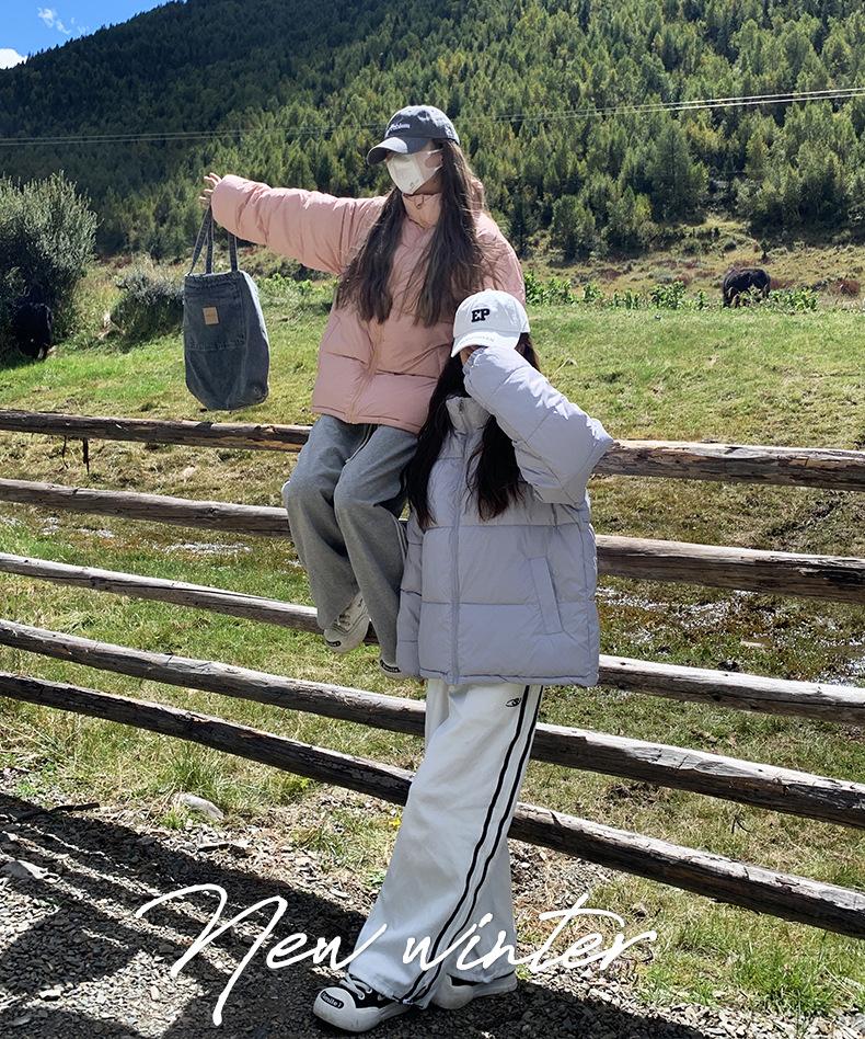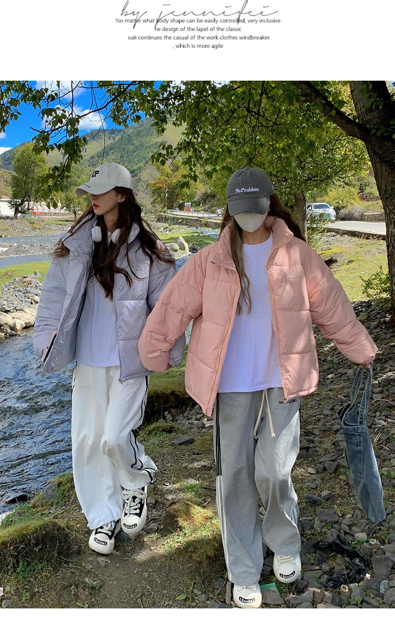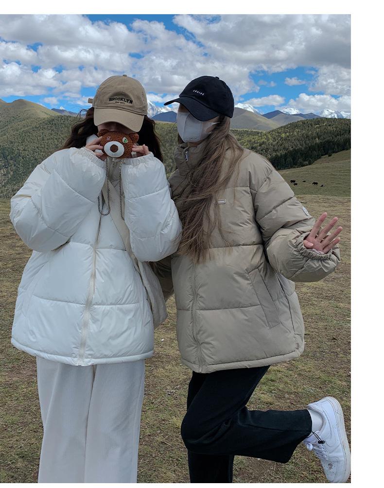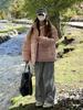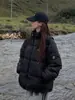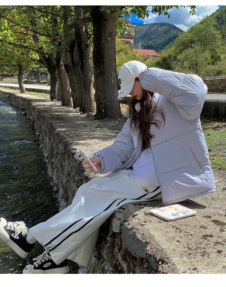 Chaqueta de mujer, traje de pan corto y grueso para mujer, chaqueta de invierno con cuello suelto y acolchado de algodón con borde cruzado.