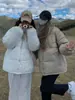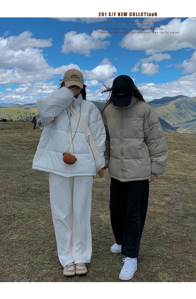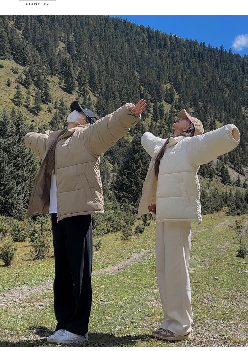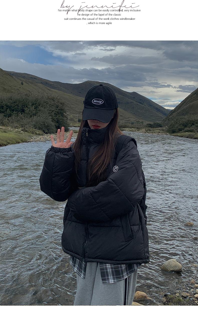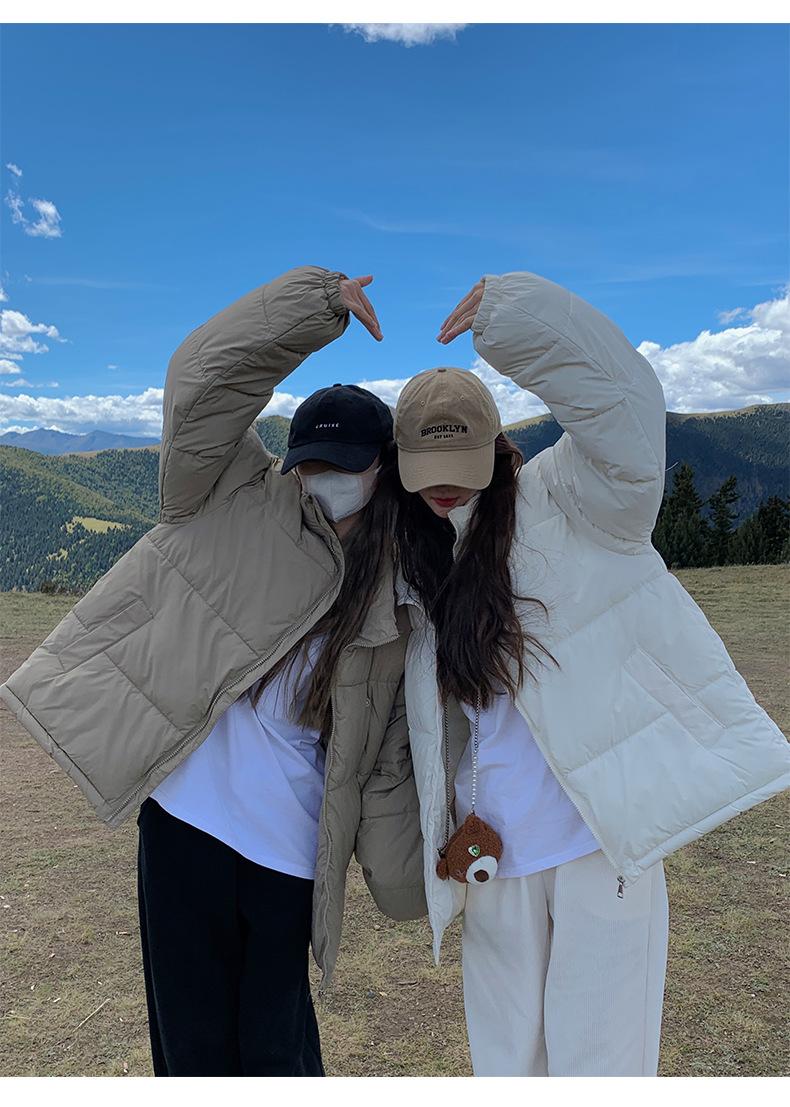 Chaqueta de mujer, traje de pan corto y grueso para mujer, chaqueta de invierno con cuello suelto y acolchado de algodón con borde cruzado.