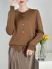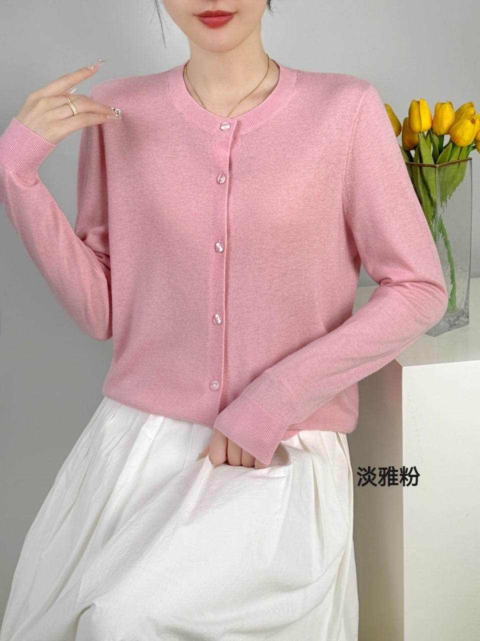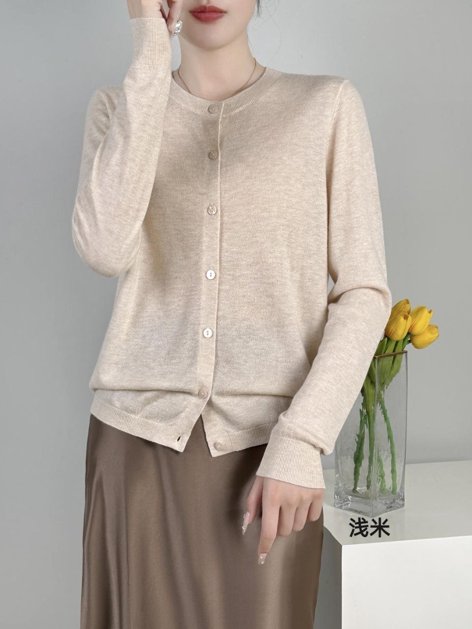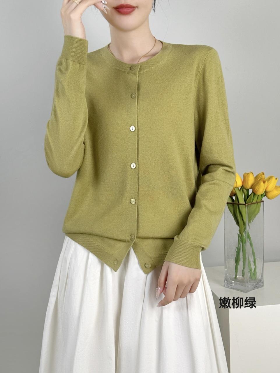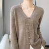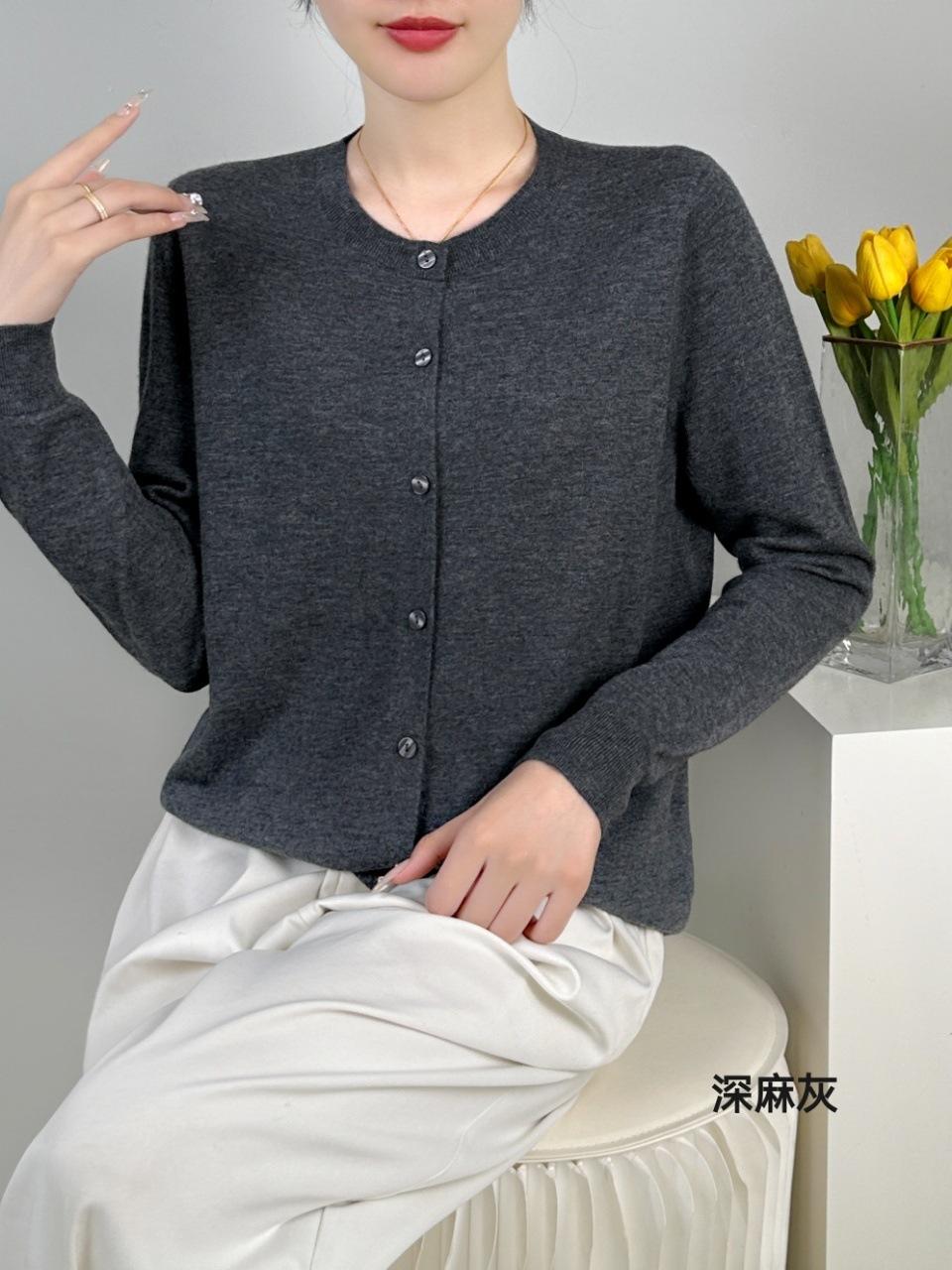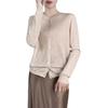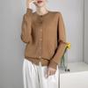 Abrigo de punto de lana pura de 48 pulgadas para mujer, otoño e invierno, cuello redondo, hebilla, manga larga, suéter tipo cárdigan, suelto, fino, nuevo estilo