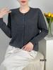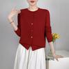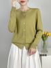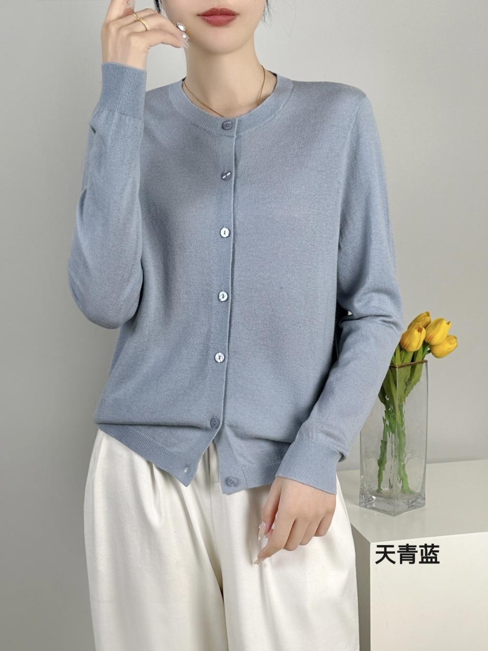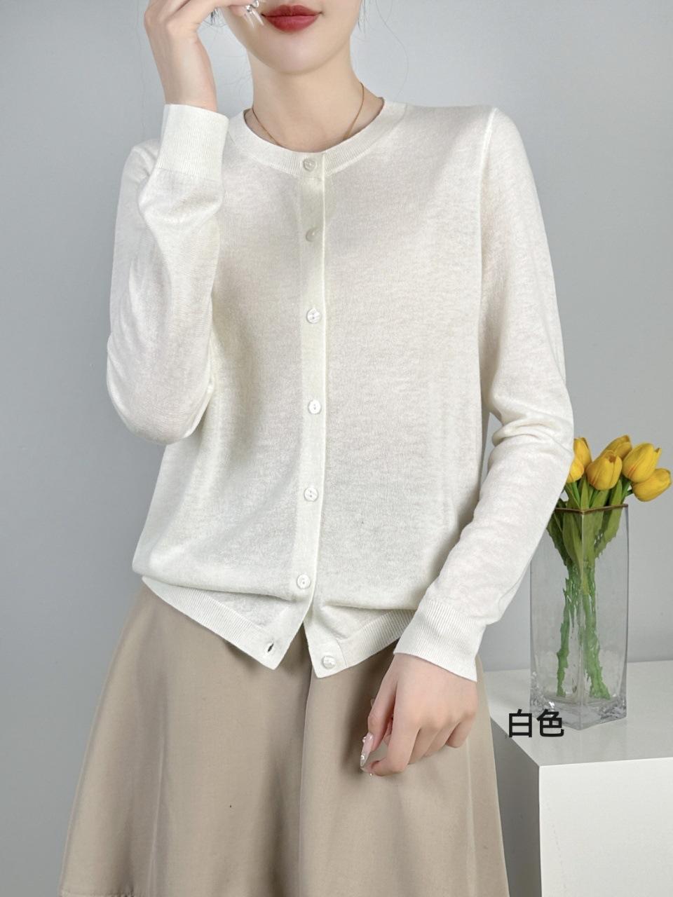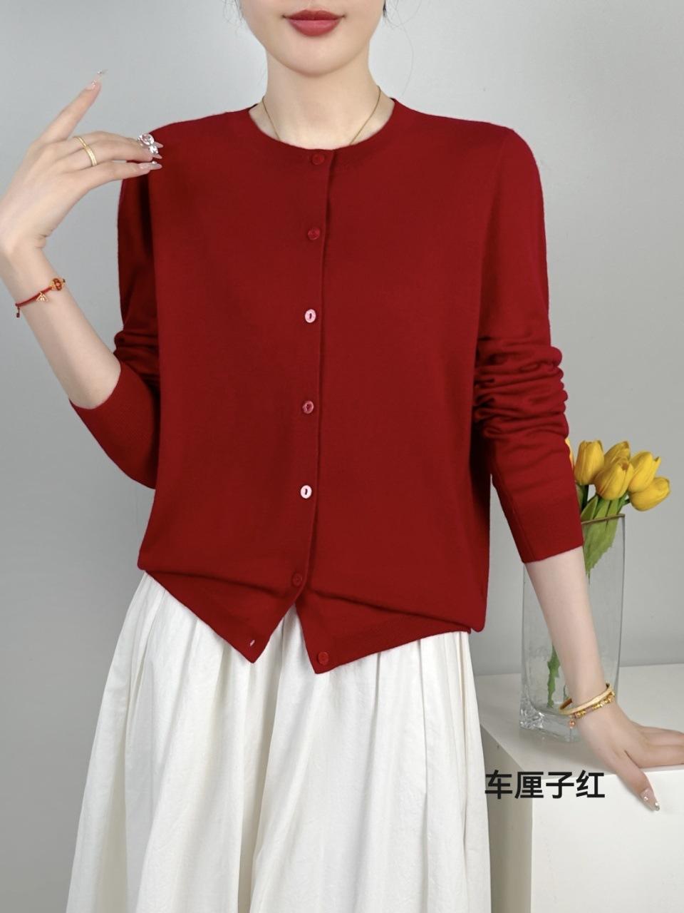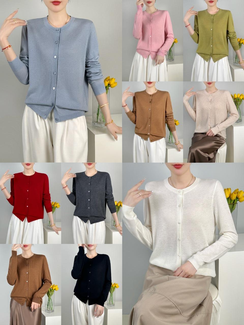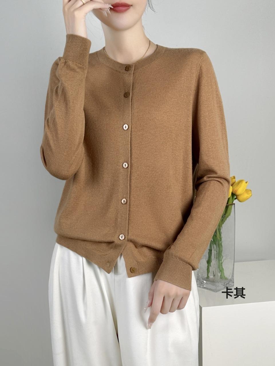 Abrigo de punto de lana pura de 48 pulgadas para mujer, otoño e invierno, cuello redondo, hebilla, manga larga, suéter tipo cárdigan, suelto, fino, nuevo estilo