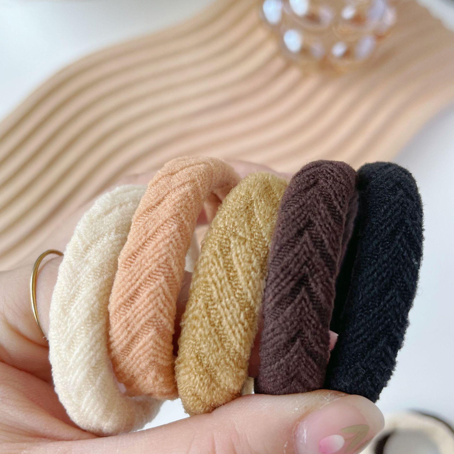 Toallero de aro elástico de 2 capas, grueso y ancho, color té con leche, combina con todo, sin base de vello, accesorio para el cabello de cola de caballo alta para mujer.