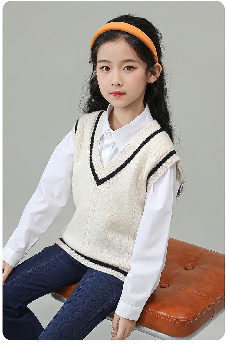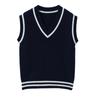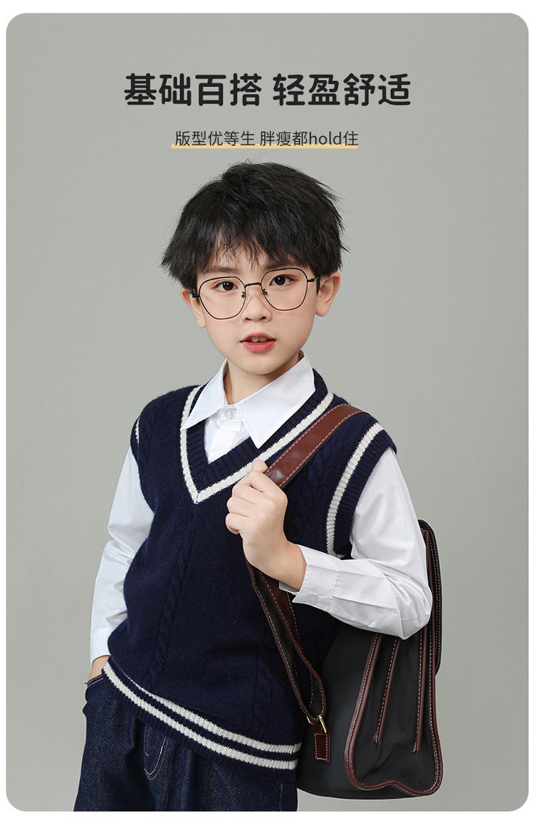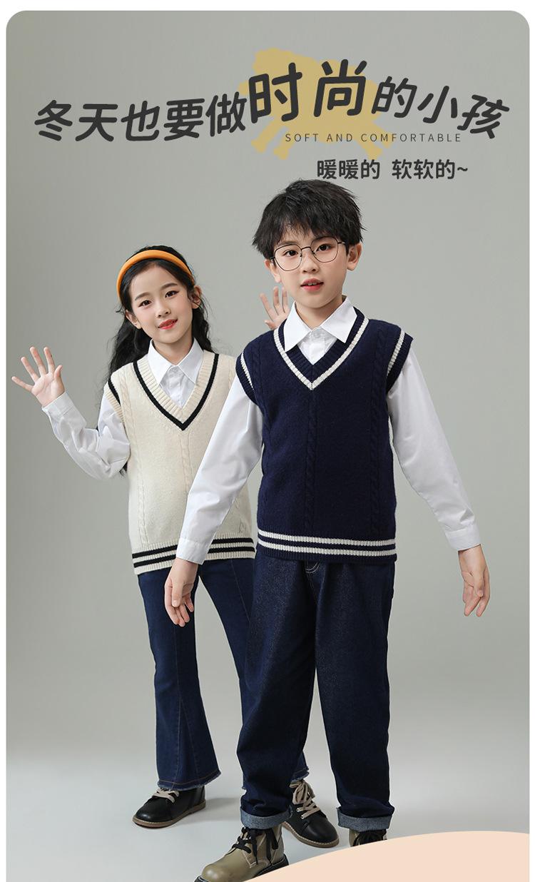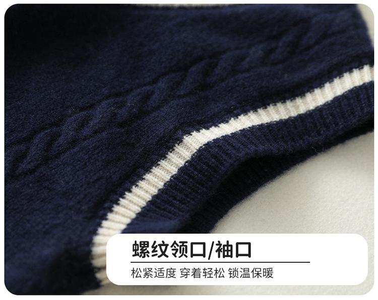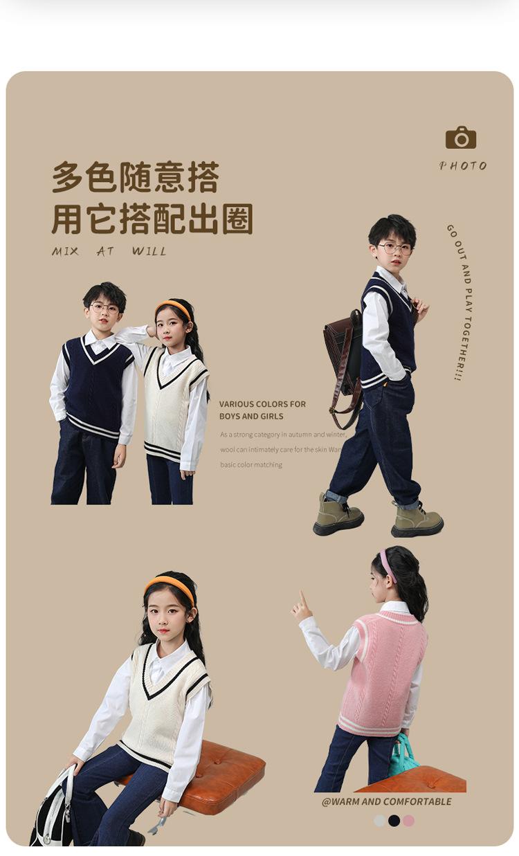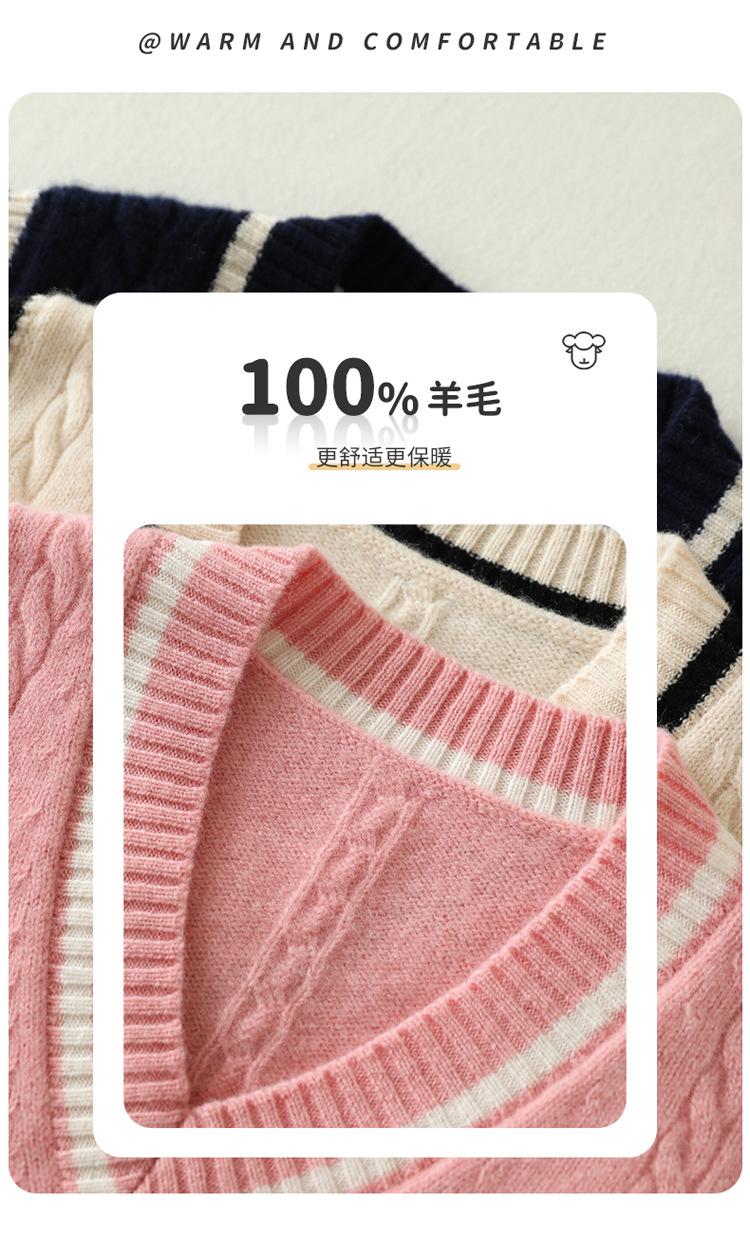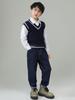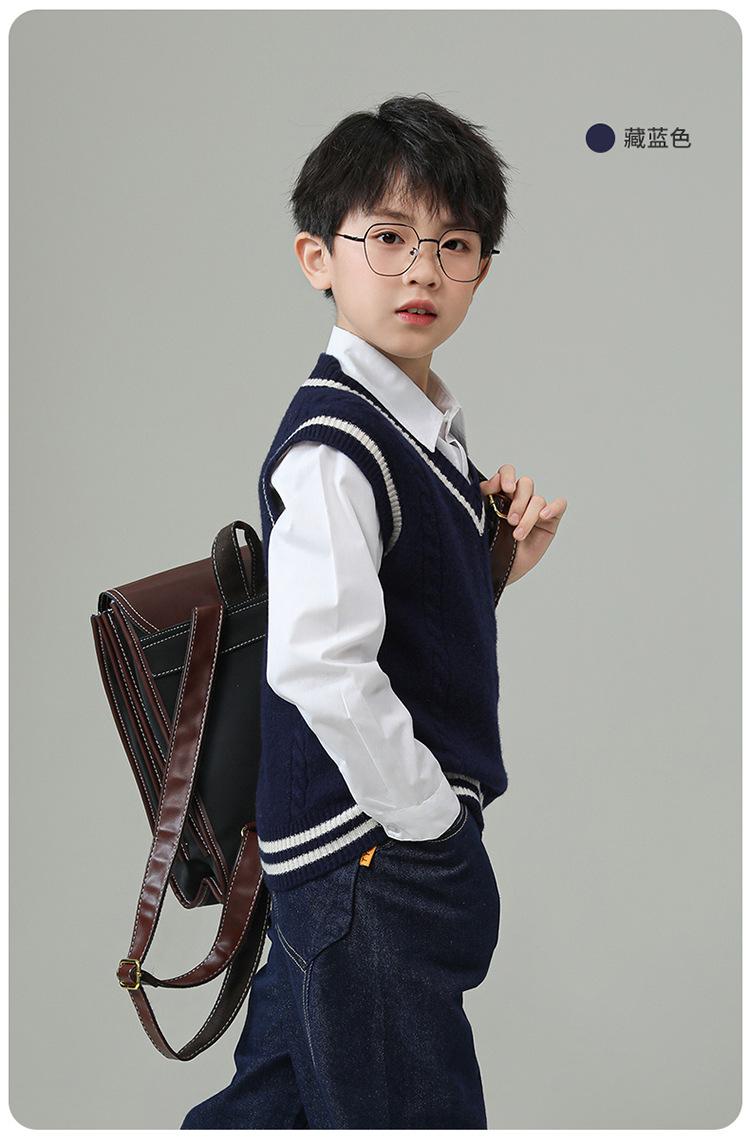 Chaleco de punto 100% lana para niños, estilo universitario, cuello en V, suelto, sin mangas, chaleco tipo jersey, para niños medianos y grandes, uniforme escolar cálido