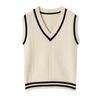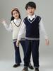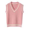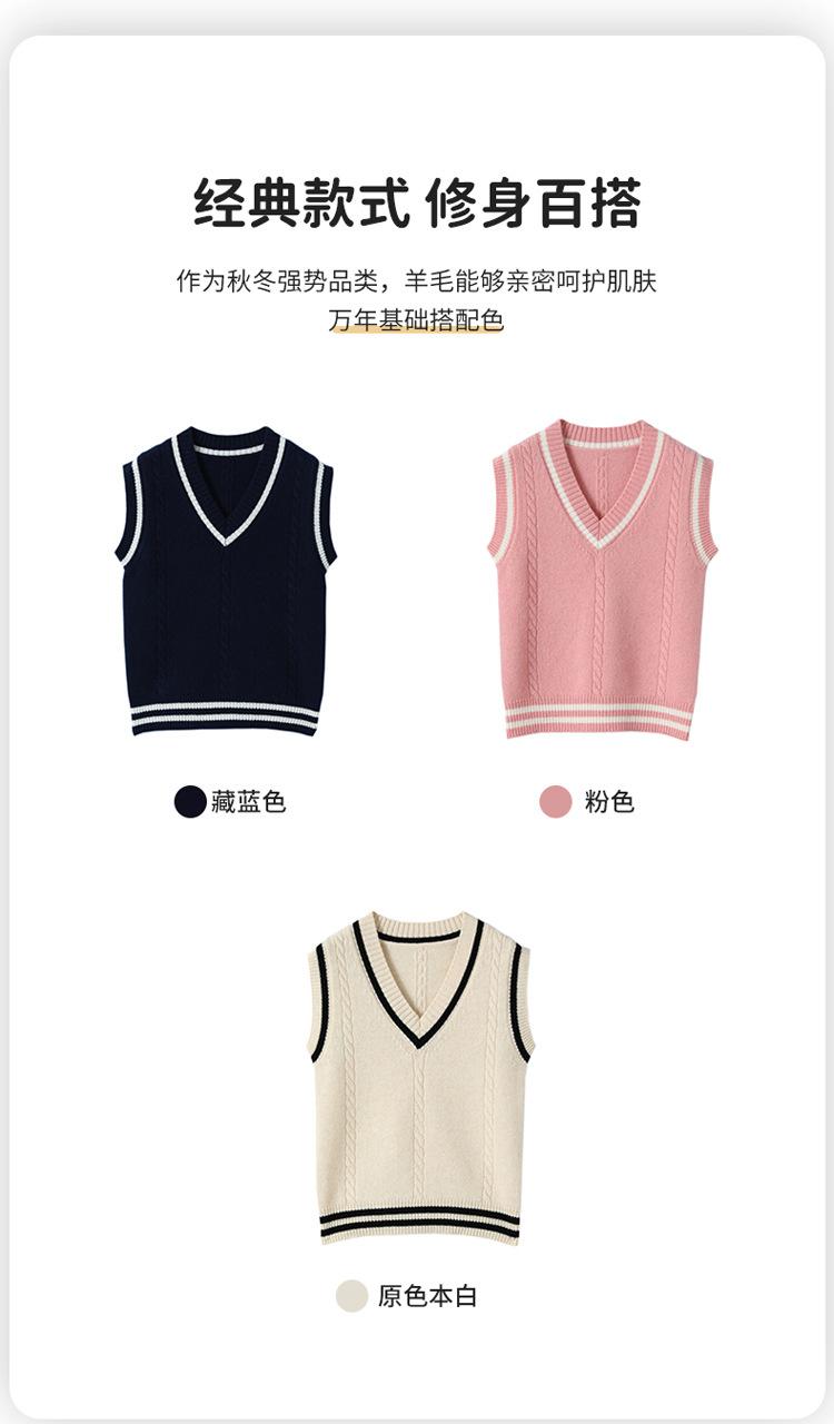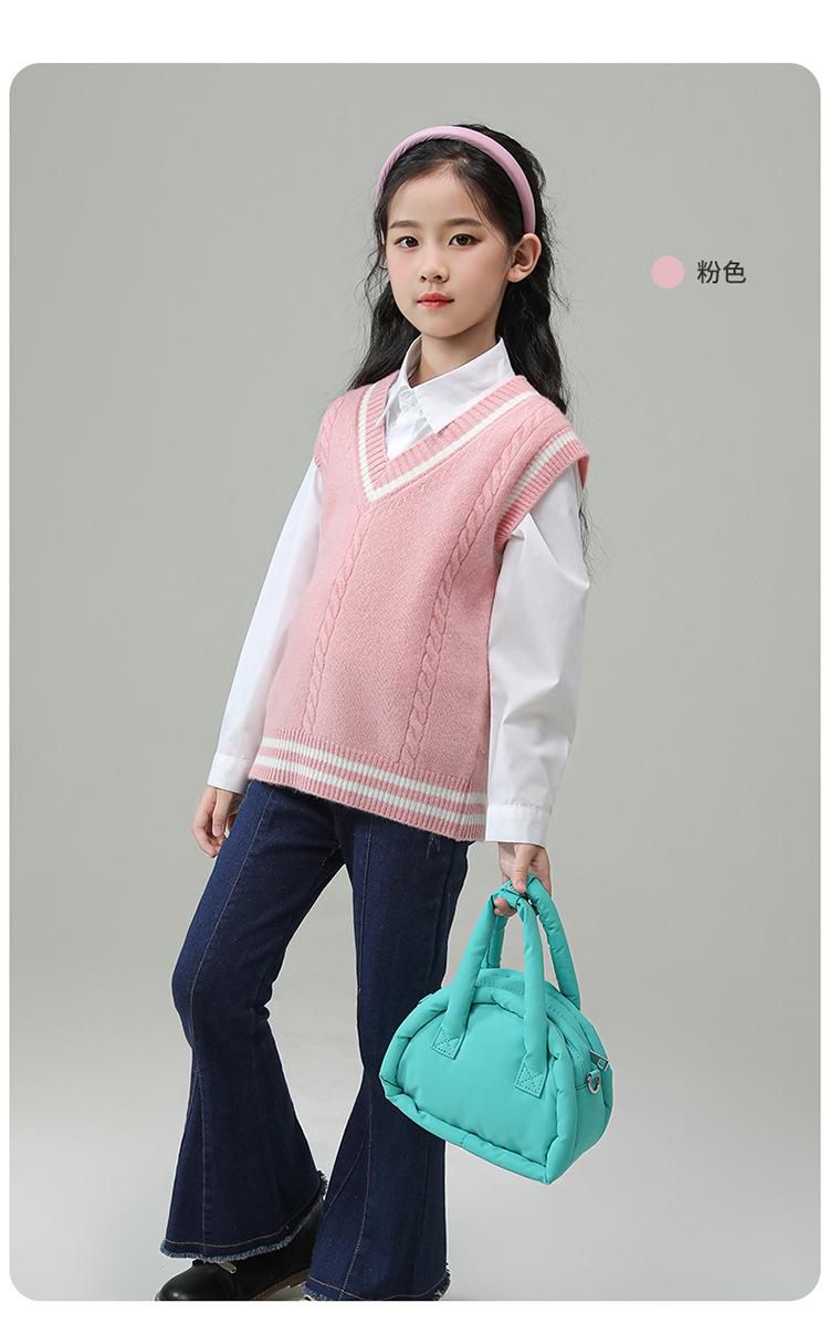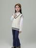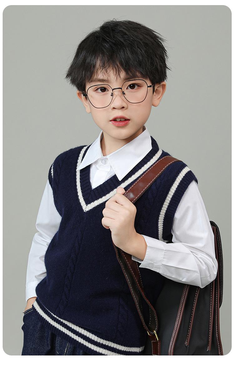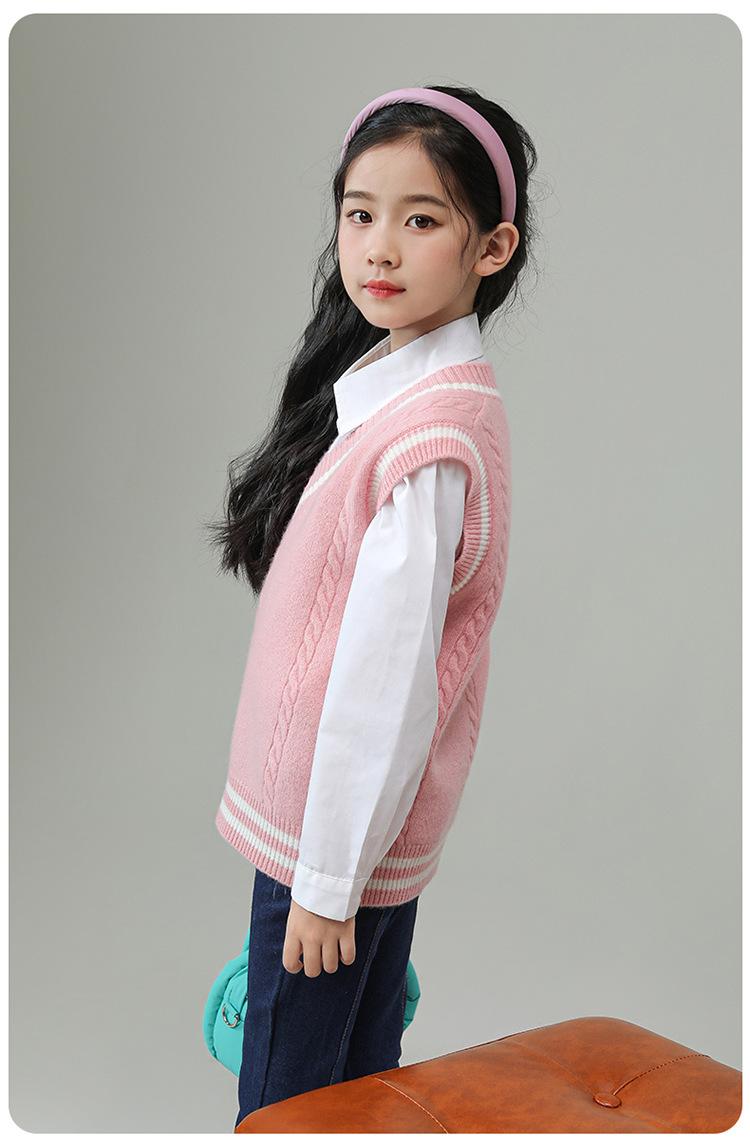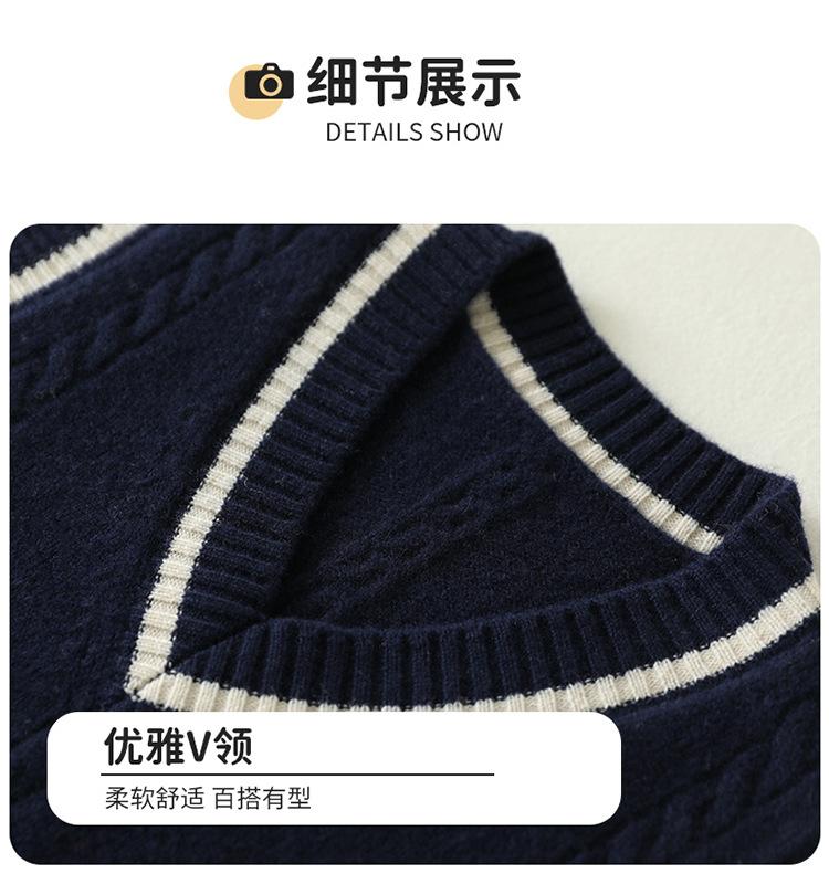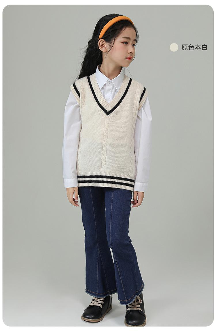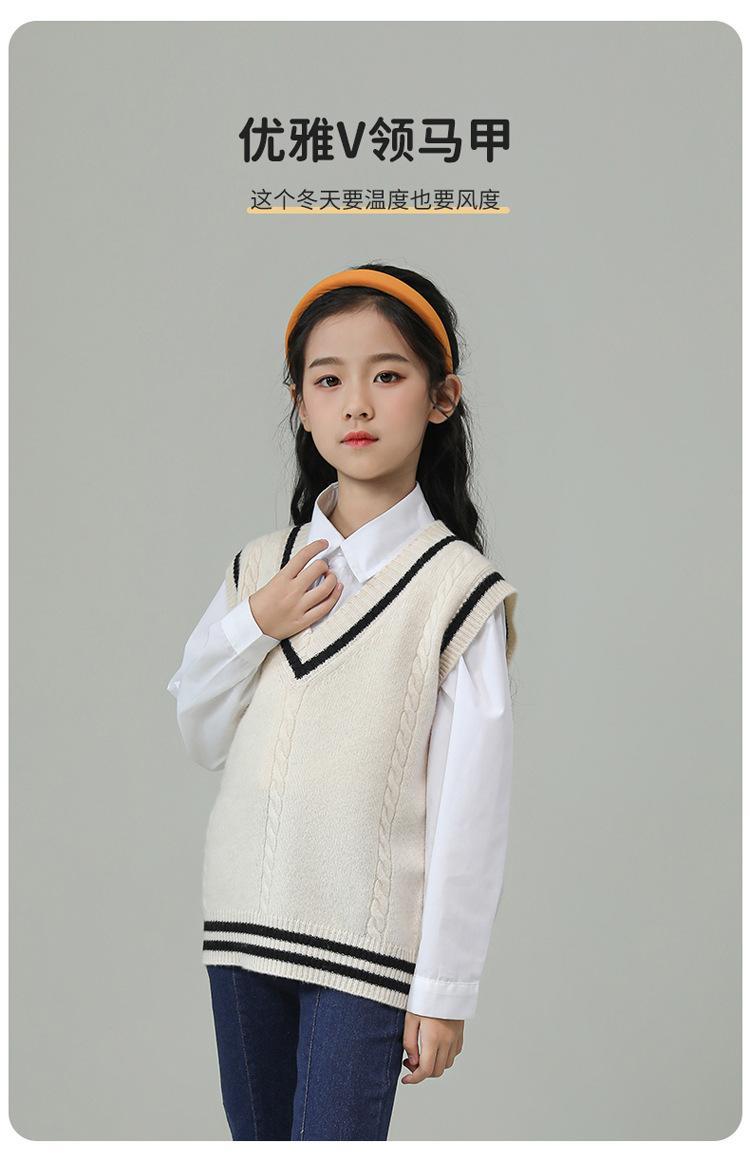 Chaleco de punto 100% lana para niños, estilo universitario, cuello en V, suelto, sin mangas, chaleco tipo jersey, para niños medianos y grandes, uniforme escolar cálido