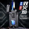 Nuevo encendedor personalizado de doble fuego con conversión de punzón directo, brillante, luz azul fría, transparente, visual, de gas, venta al por mayor transfronteriza.