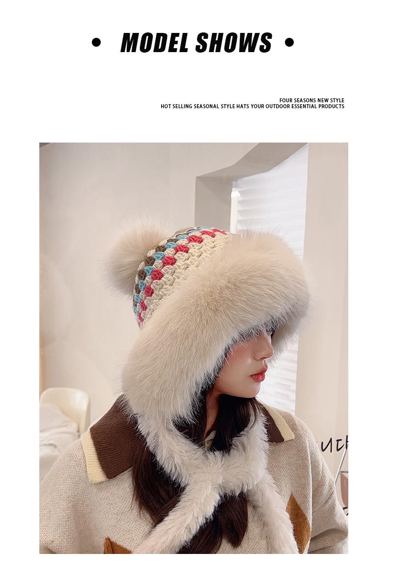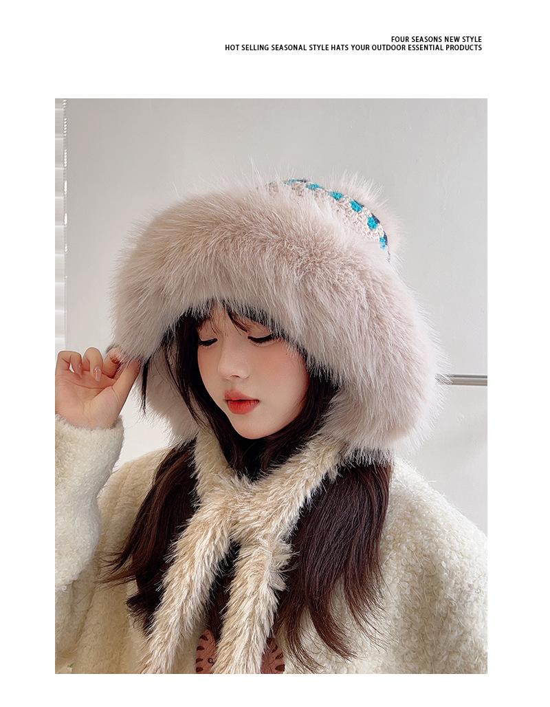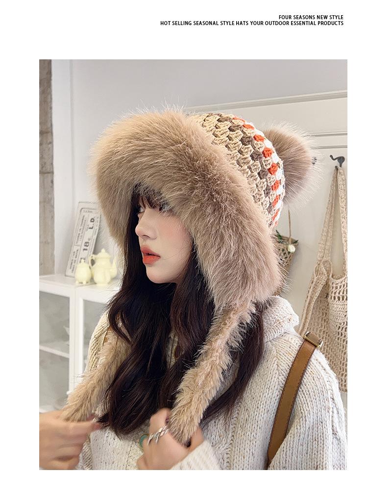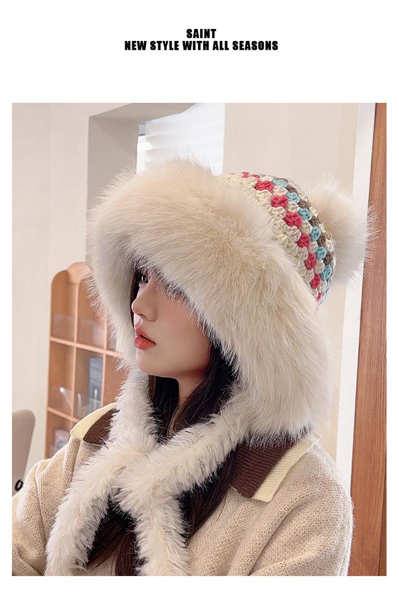 Nuevo gorro esponjoso y grueso para mujer, de estilo étnico, para otoño e invierno, cálido, con protección para los oídos y resistente al frío.
