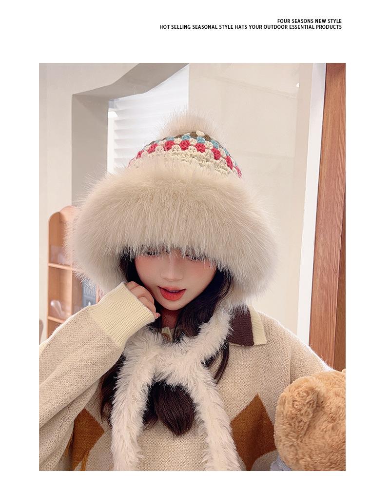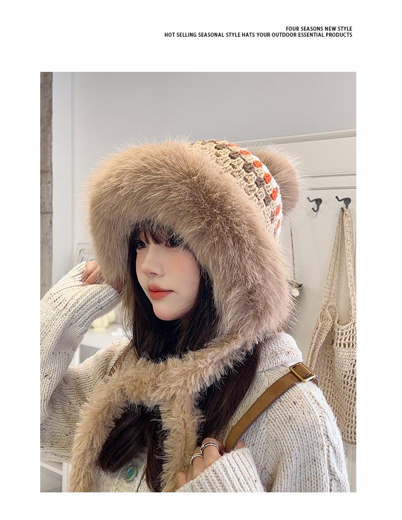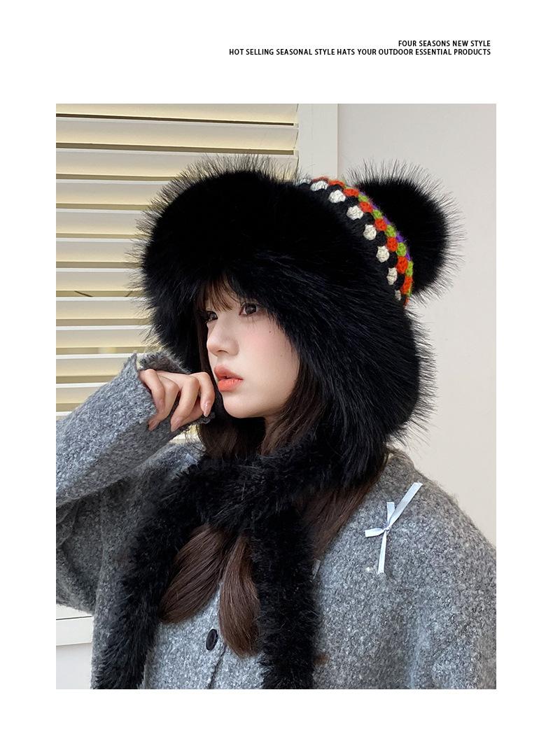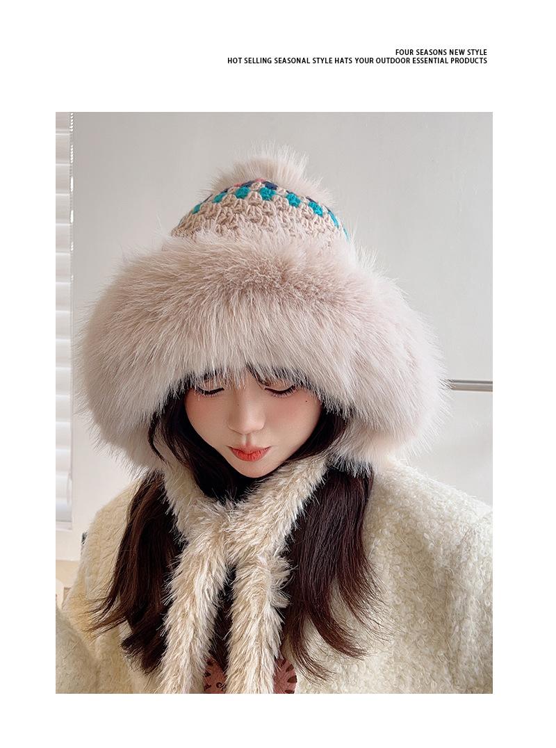 Nuevo gorro esponjoso y grueso para mujer, de estilo étnico, para otoño e invierno, cálido, con protección para los oídos y resistente al frío.