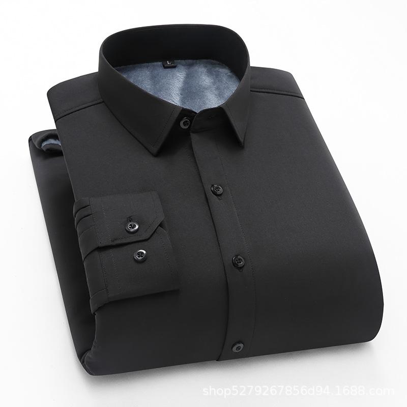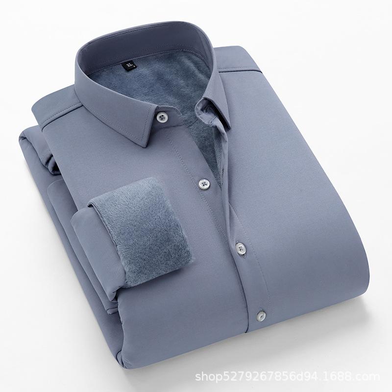 Camisa forrada de polar para hombre, nueva camisa de otoño e invierno de 2024, de talla grande, cálida, informal, de negocios, de manga larga y gruesa.