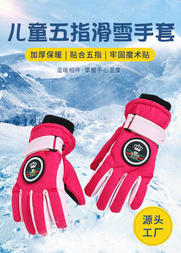 Guantes para niños impermeables con forro de terciopelo grueso, para exteriores, de 5 a 8 años, resistentes al viento, con cinco dedos, cálidos, para esquí, venta al por mayor