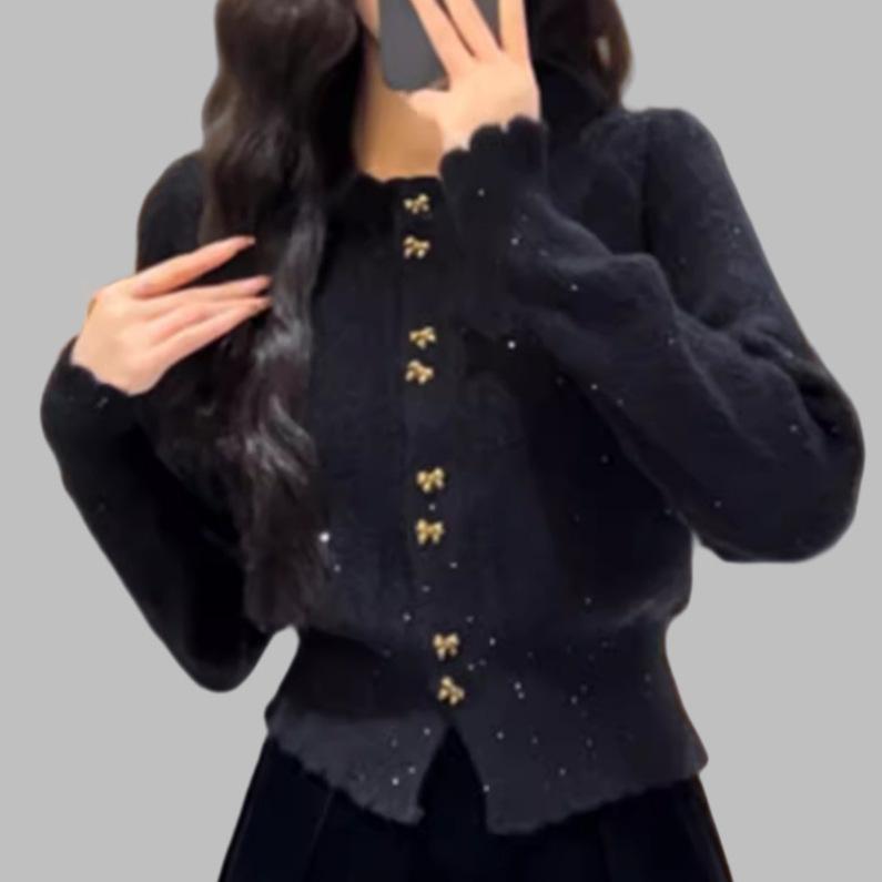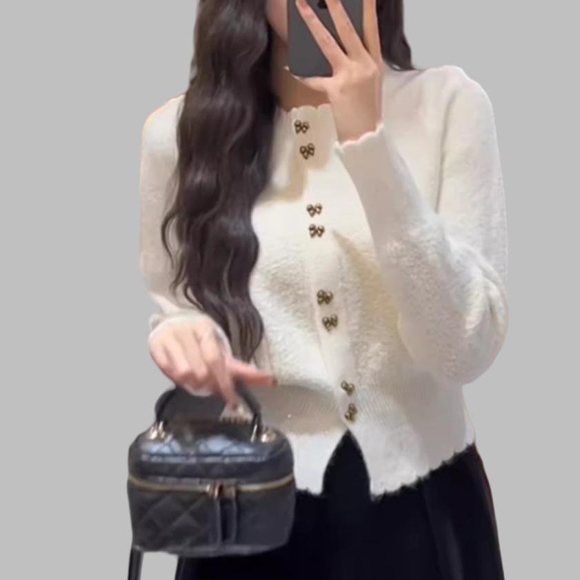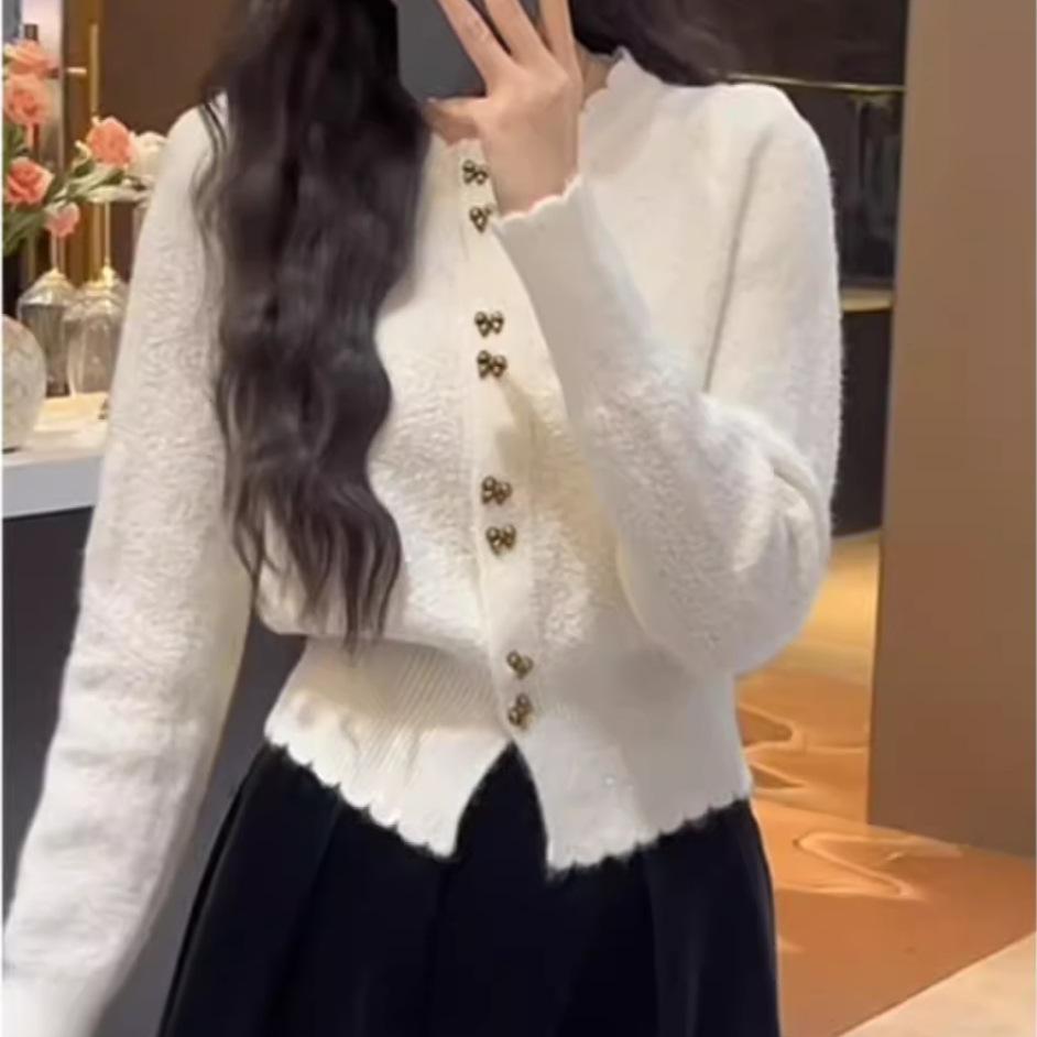 Suéter con botones dorados y mariposas para mujer, estilo extranjero, holgado, de manga larga, color puro, versátil, otoño e invierno, 2024