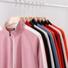 Sudadera personalizada de tela saludable de 310 g, clásica, a rayas, con costuras en colores contrastantes, cuello alto y cremallera, chaqueta moderna y a la moda.