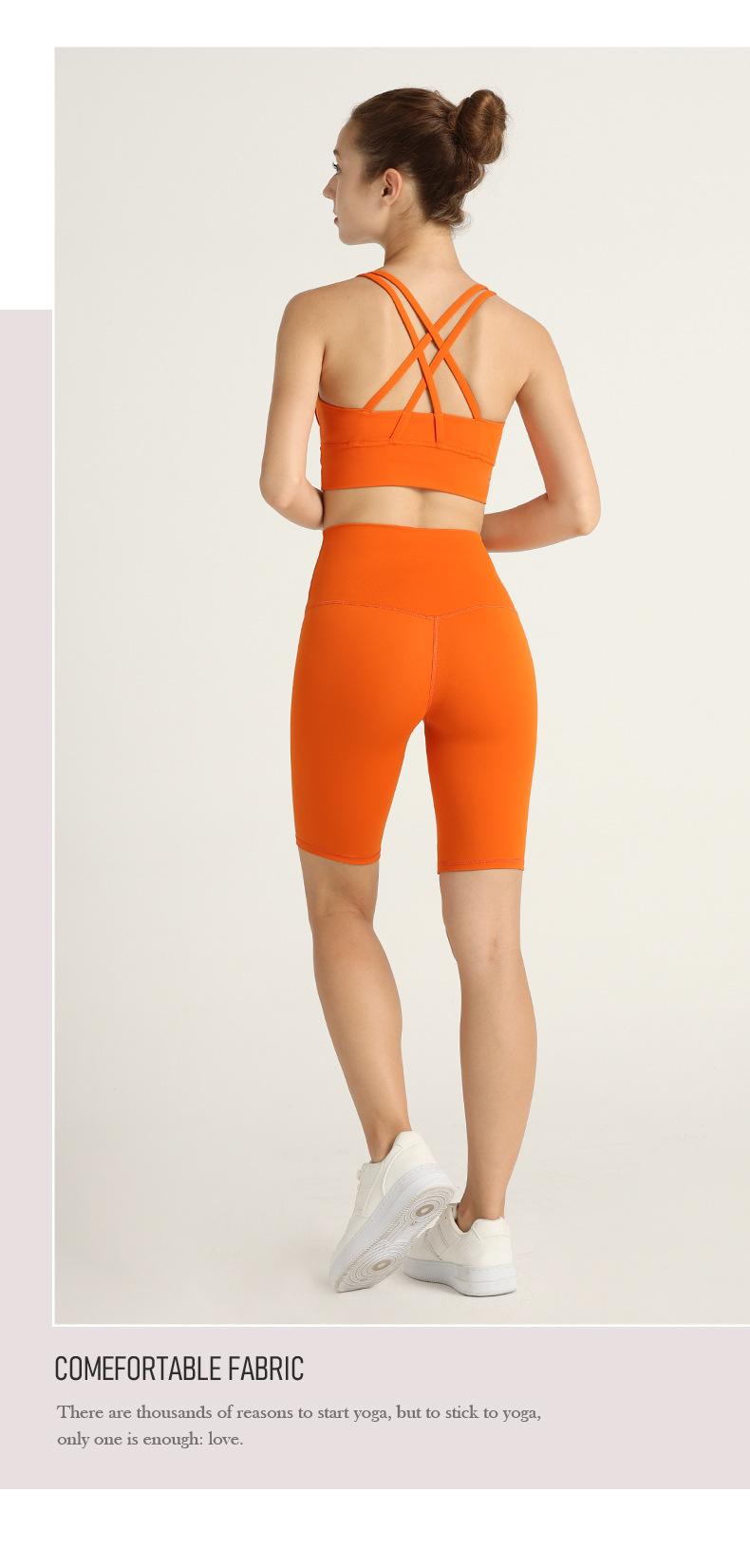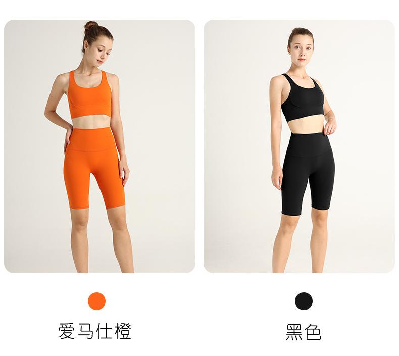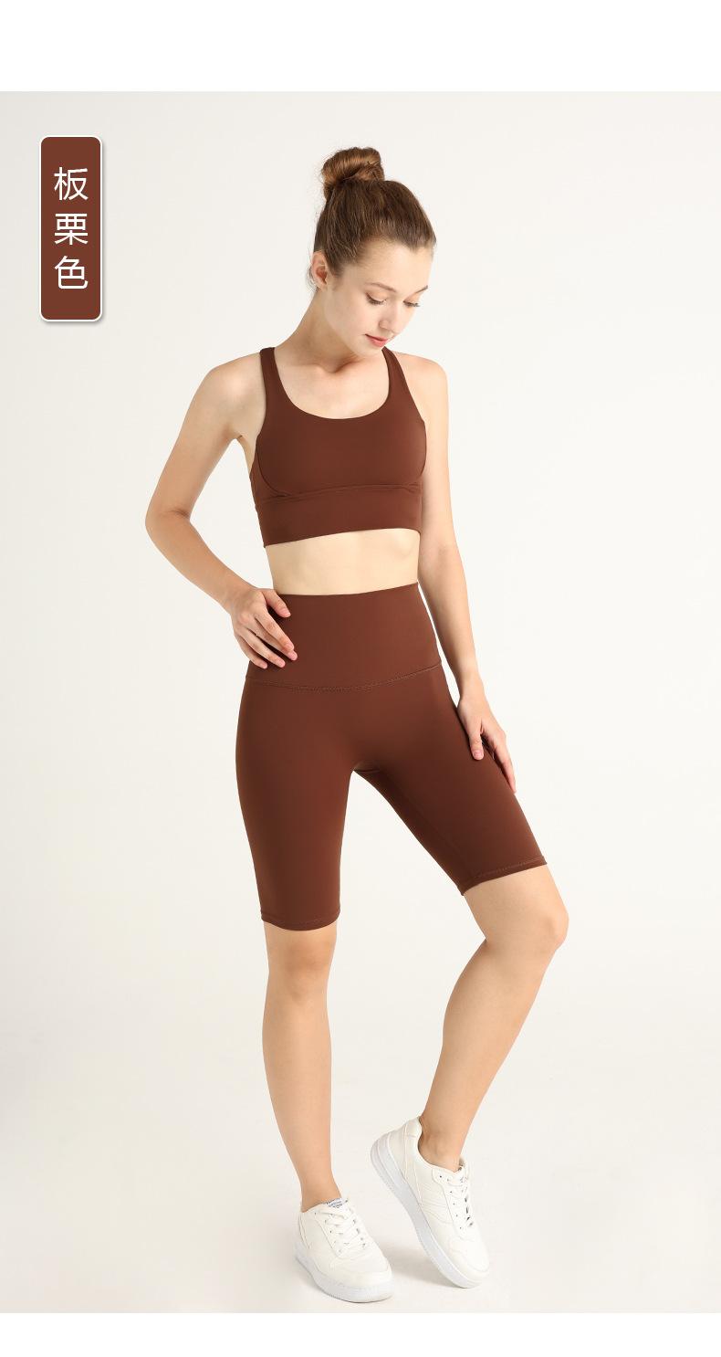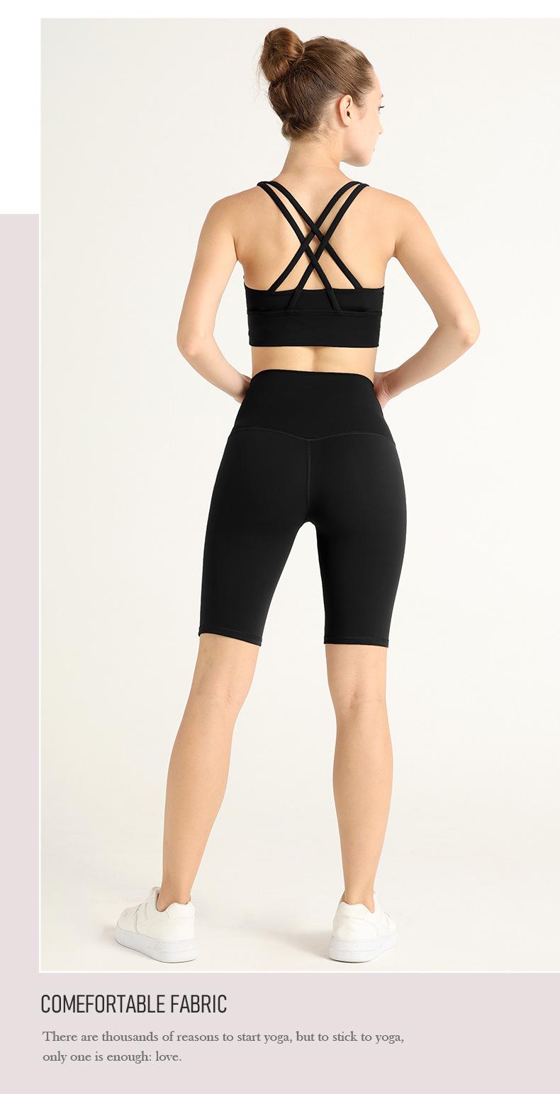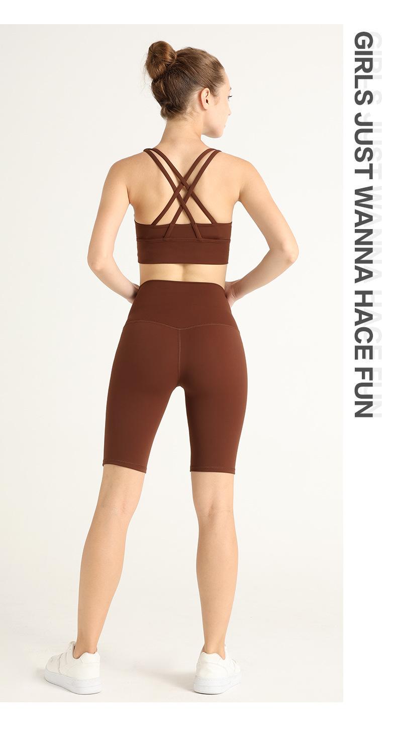 Traje de Chaleco Nude de Verano con Espalda Cruzada de Dos Piezas Europeo y Americano Deportivo Yoga Shorts de Cinco Puntos Ropa de Yoga
