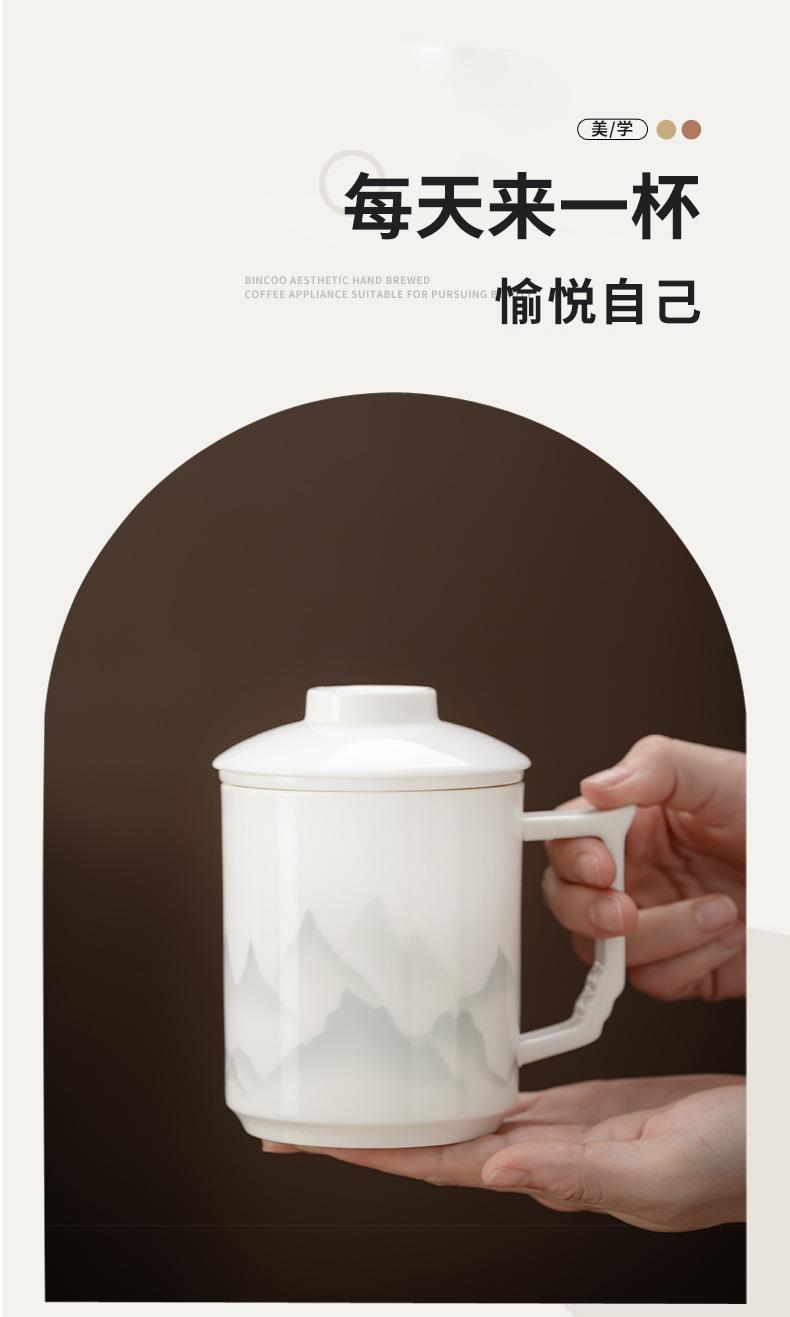 Ink landscape/mutton jade office cup/Zhen Zang gift box
