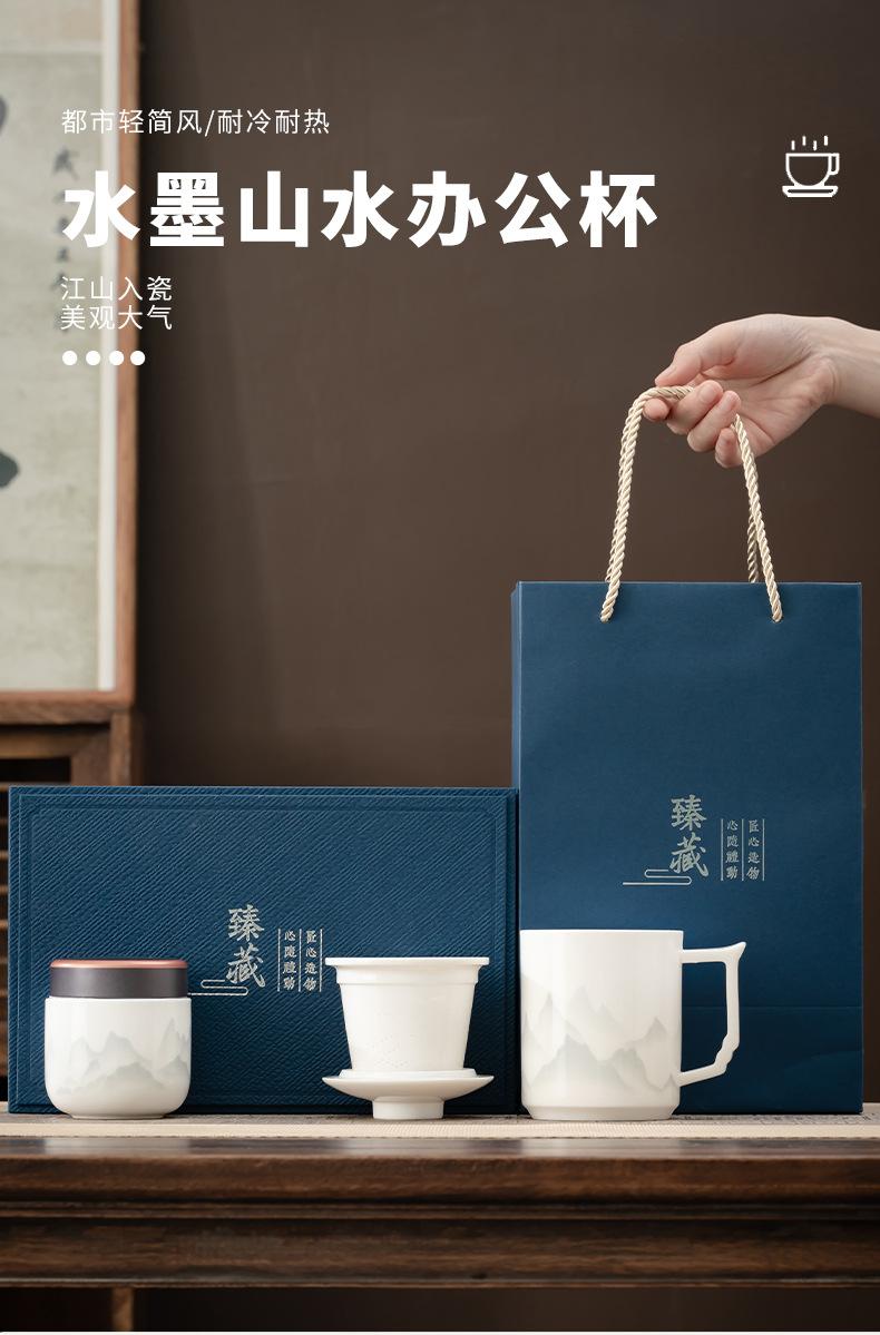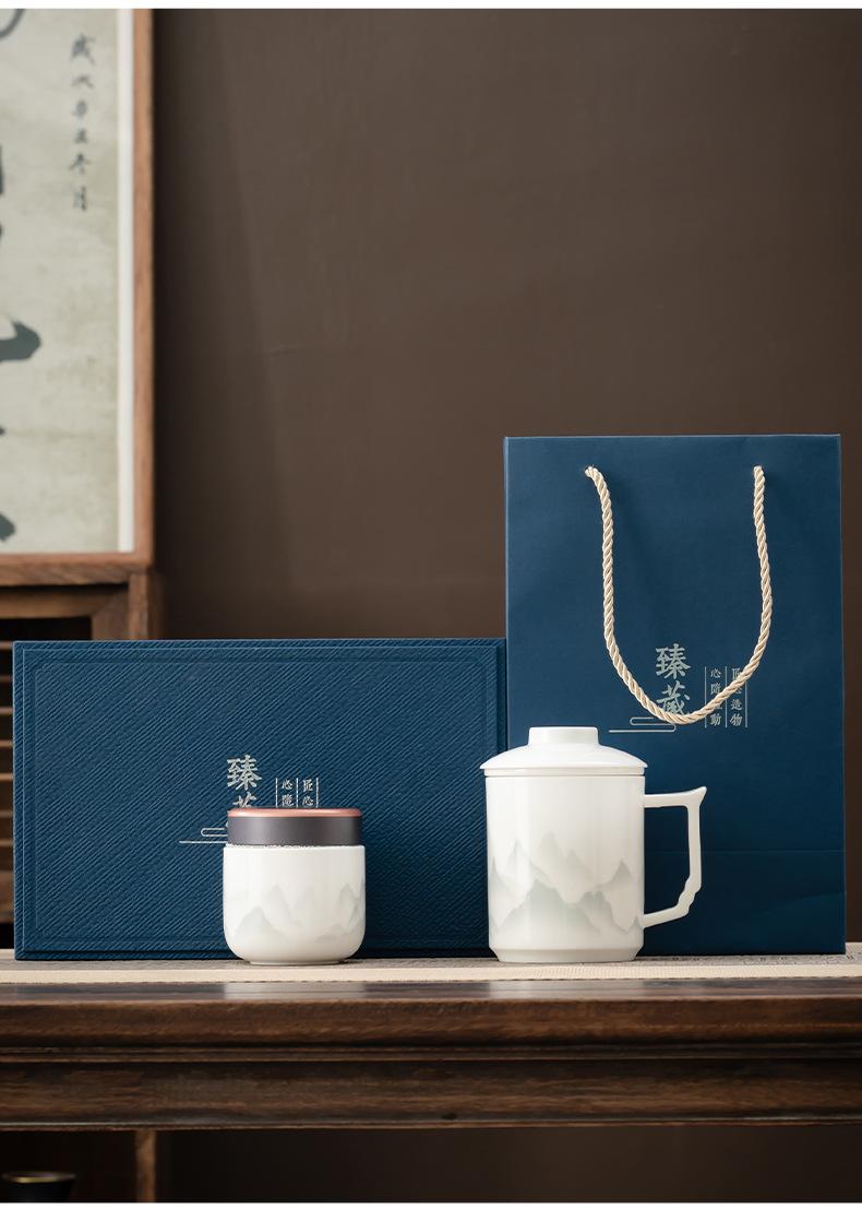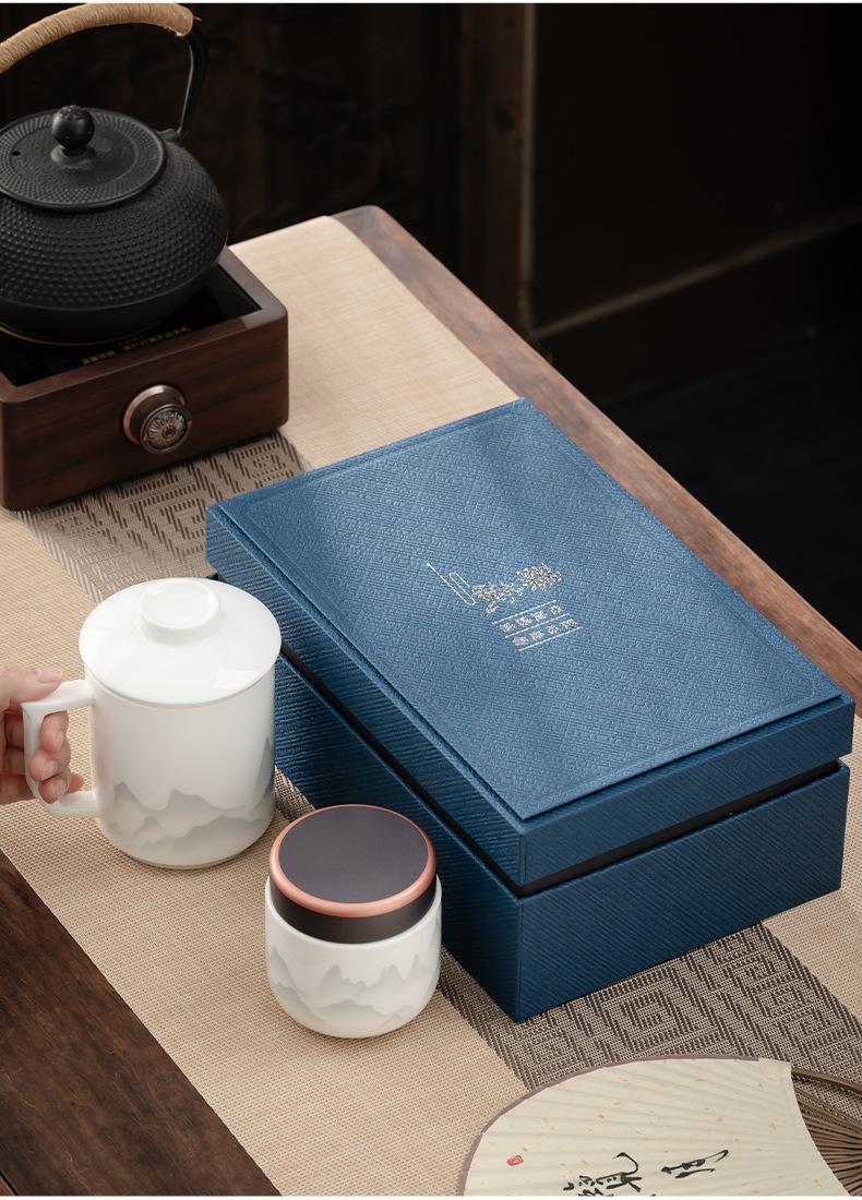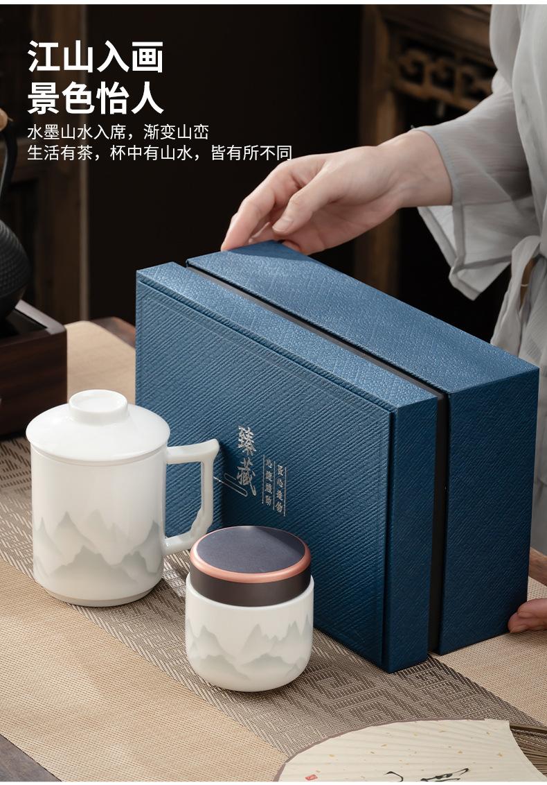 Ink landscape/mutton jade office cup/Zhen Zang gift box, Ink landscape/suet jade office cup tea jar/Zhen Zang gift box