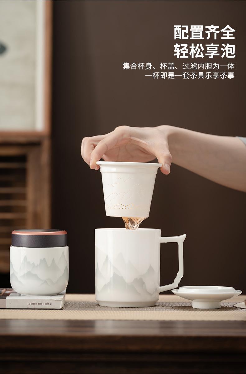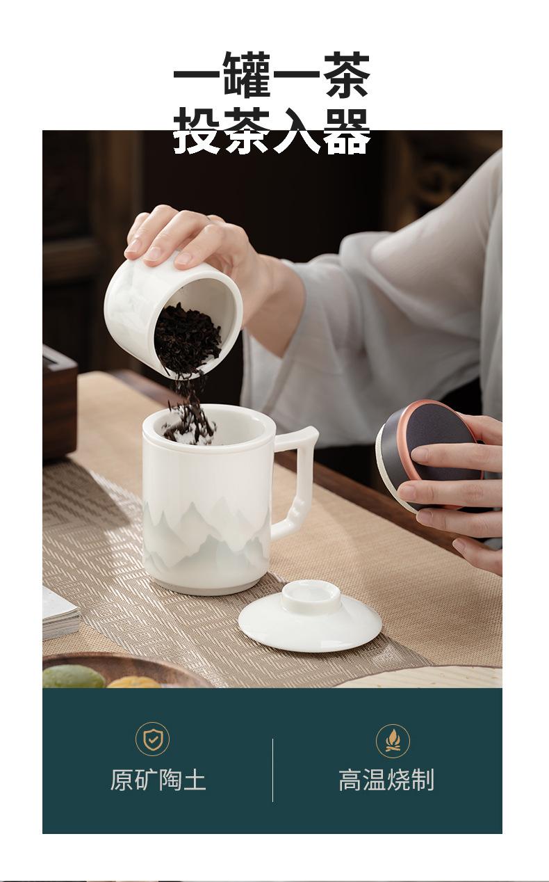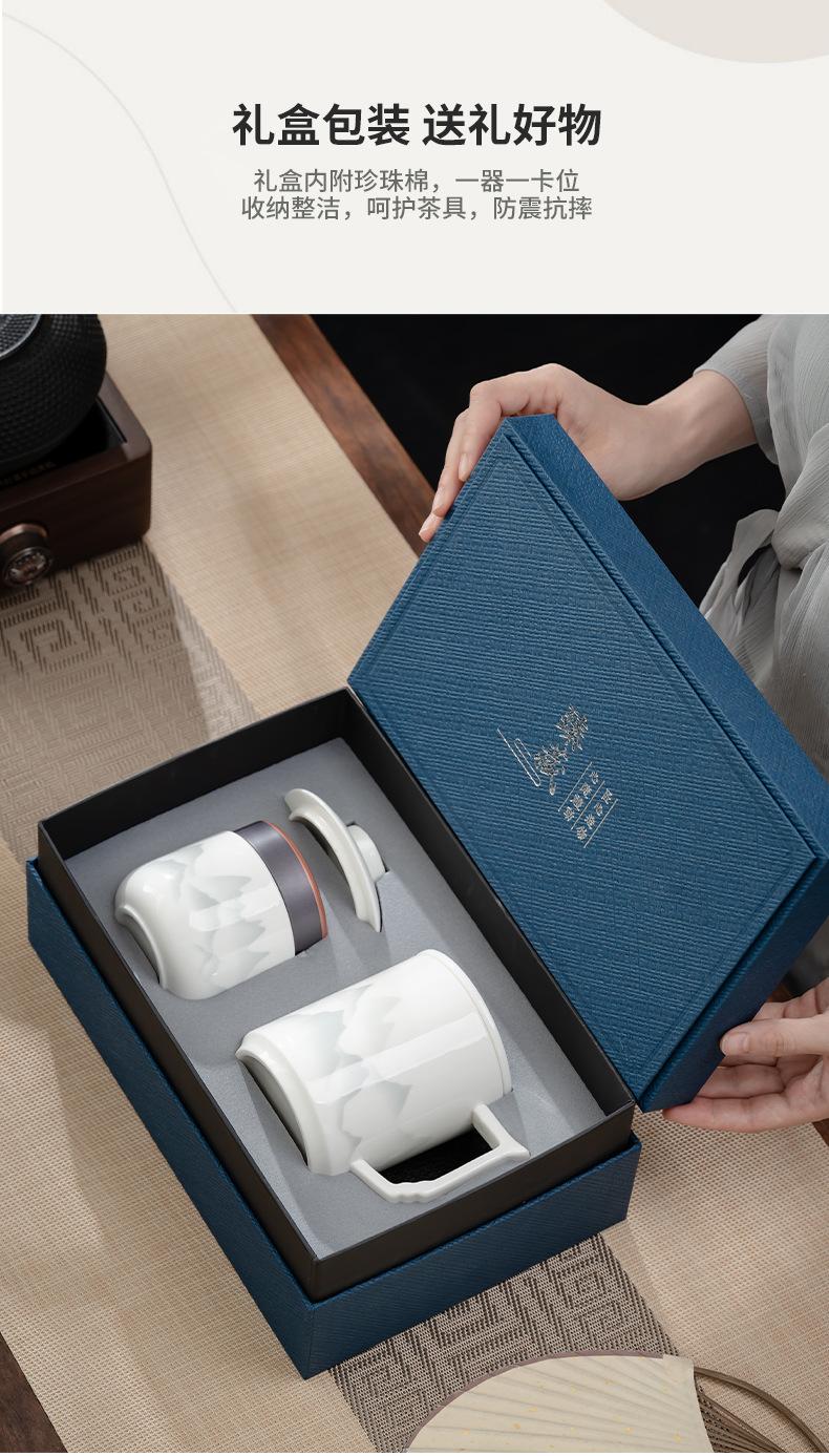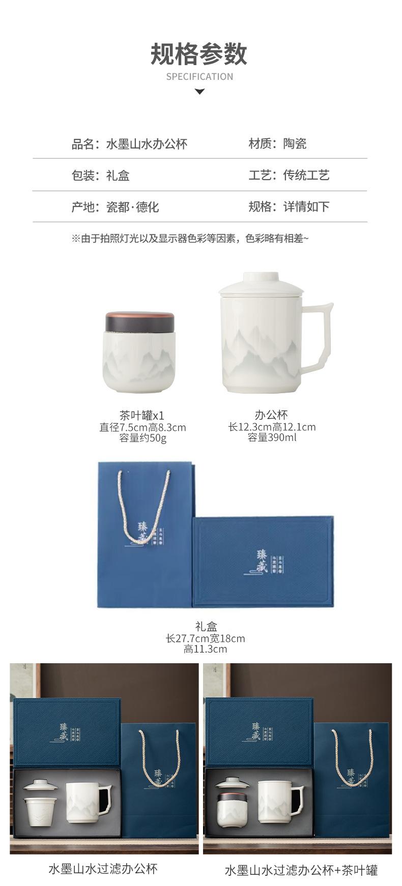 Ink landscape/mutton jade office cup/Zhen Zang gift box, Ink landscape/suet jade office cup tea jar/Zhen Zang gift box