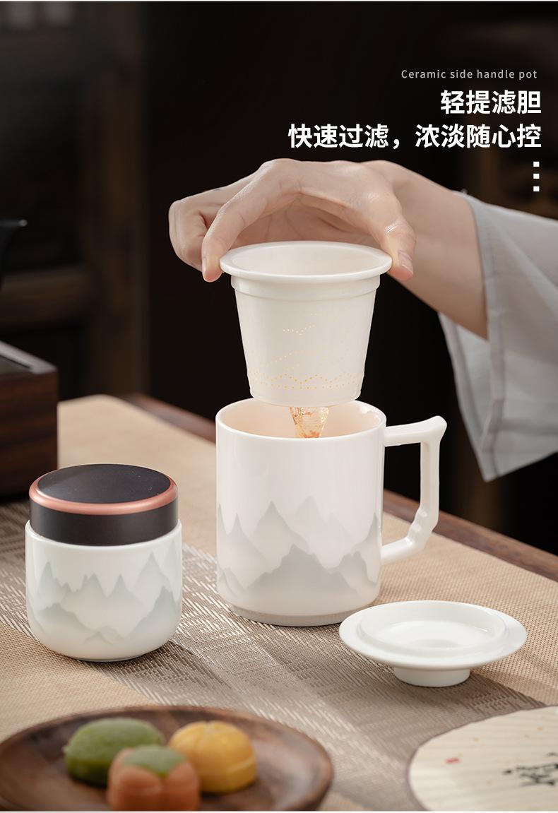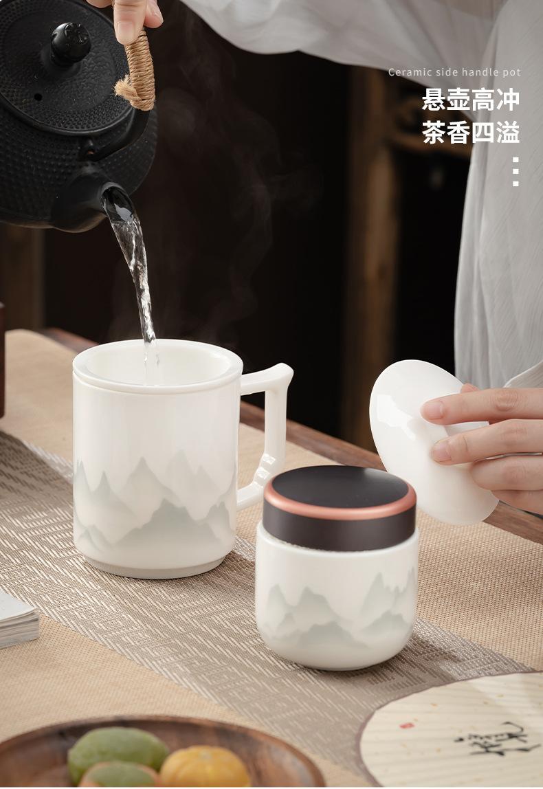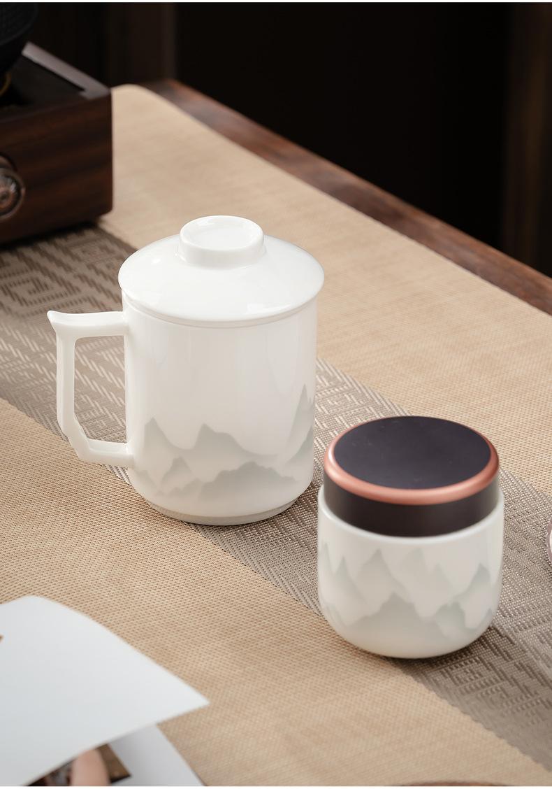 Ink landscape/suet jade office cup tea jar/Zhen Zang gift box