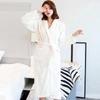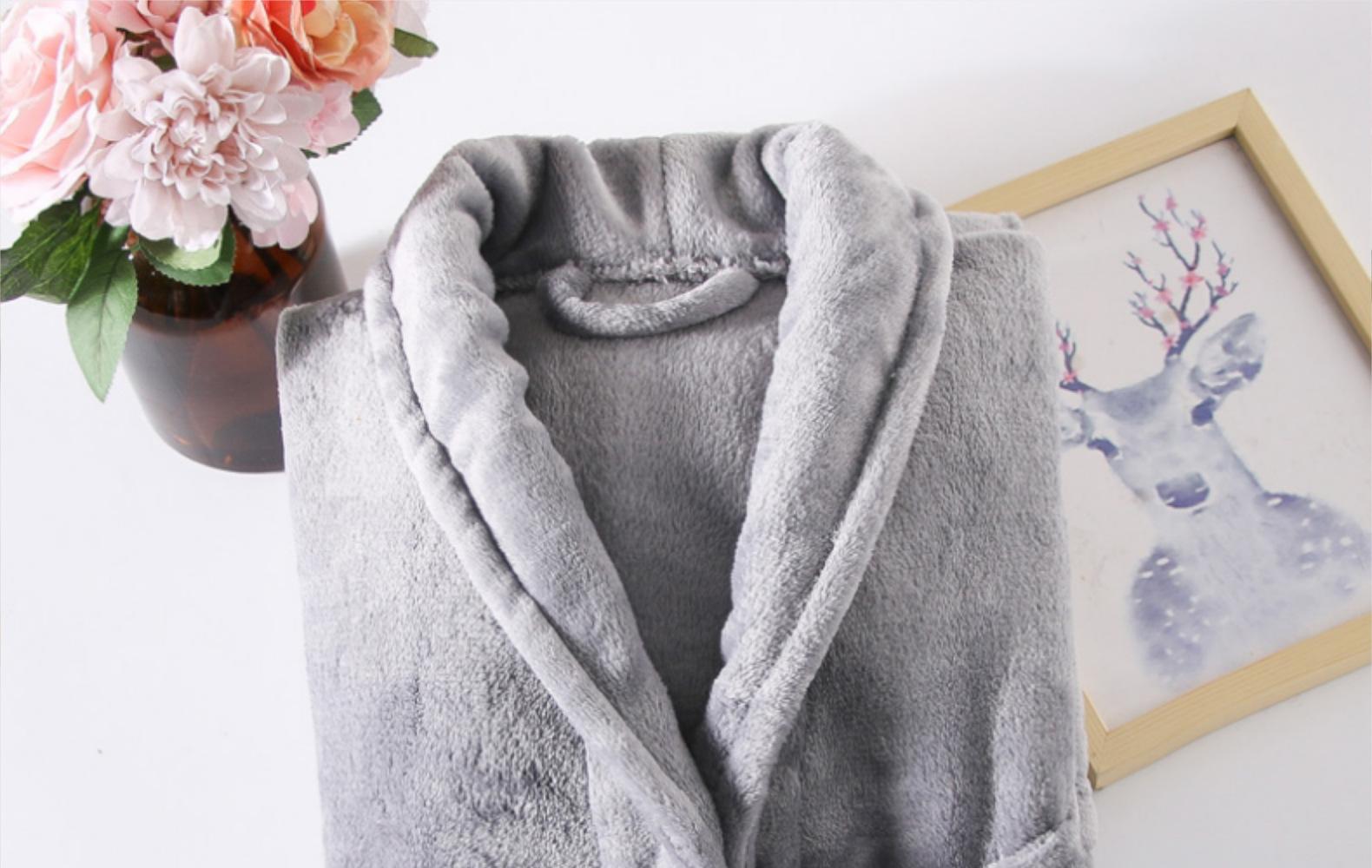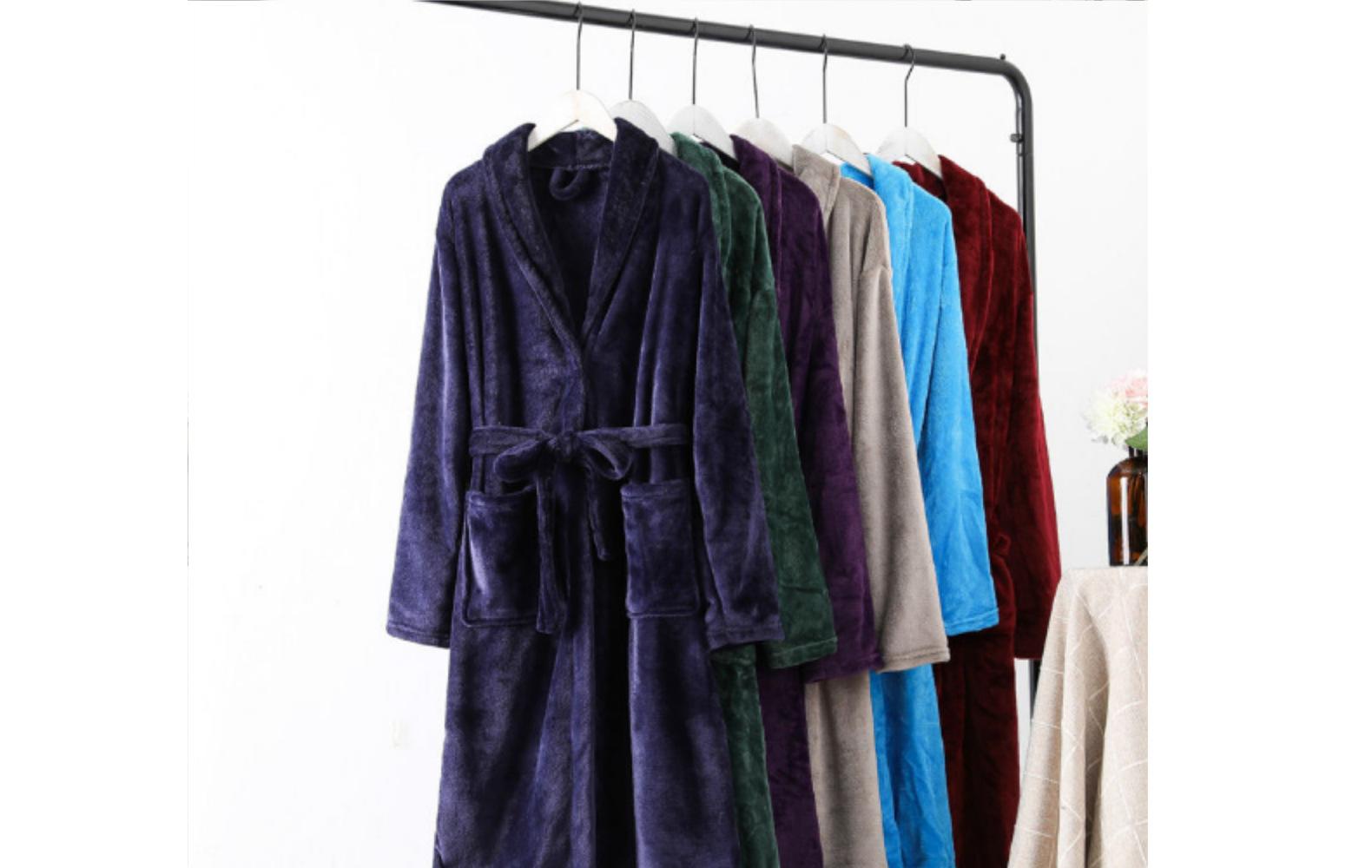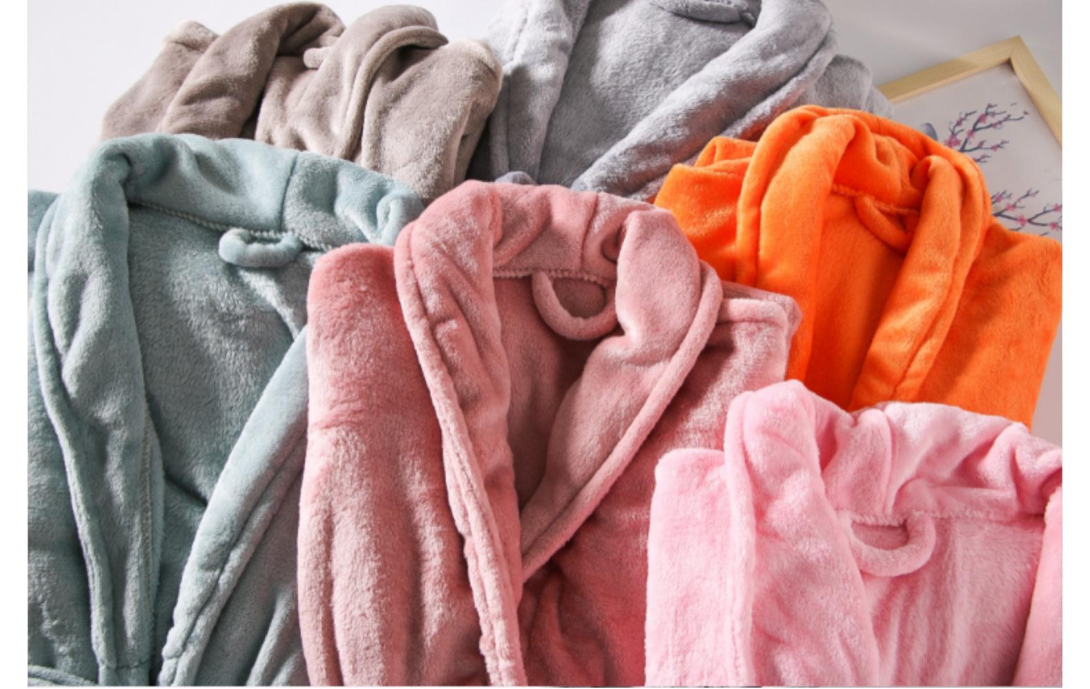 Bata de baño de forro polar coral de manga corta para primavera y otoño, camisón de franela para invierno, manga larga, largo extendido, ropa de casa confeccionada, disponible para distribución