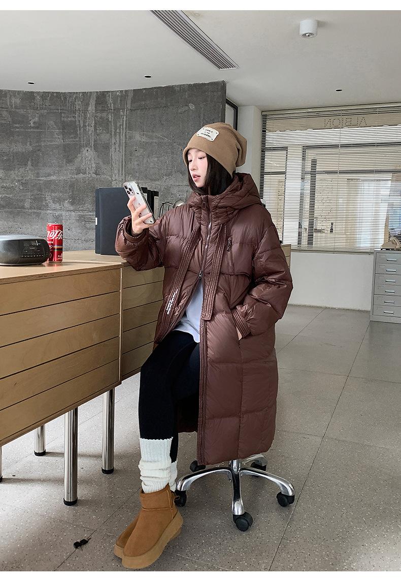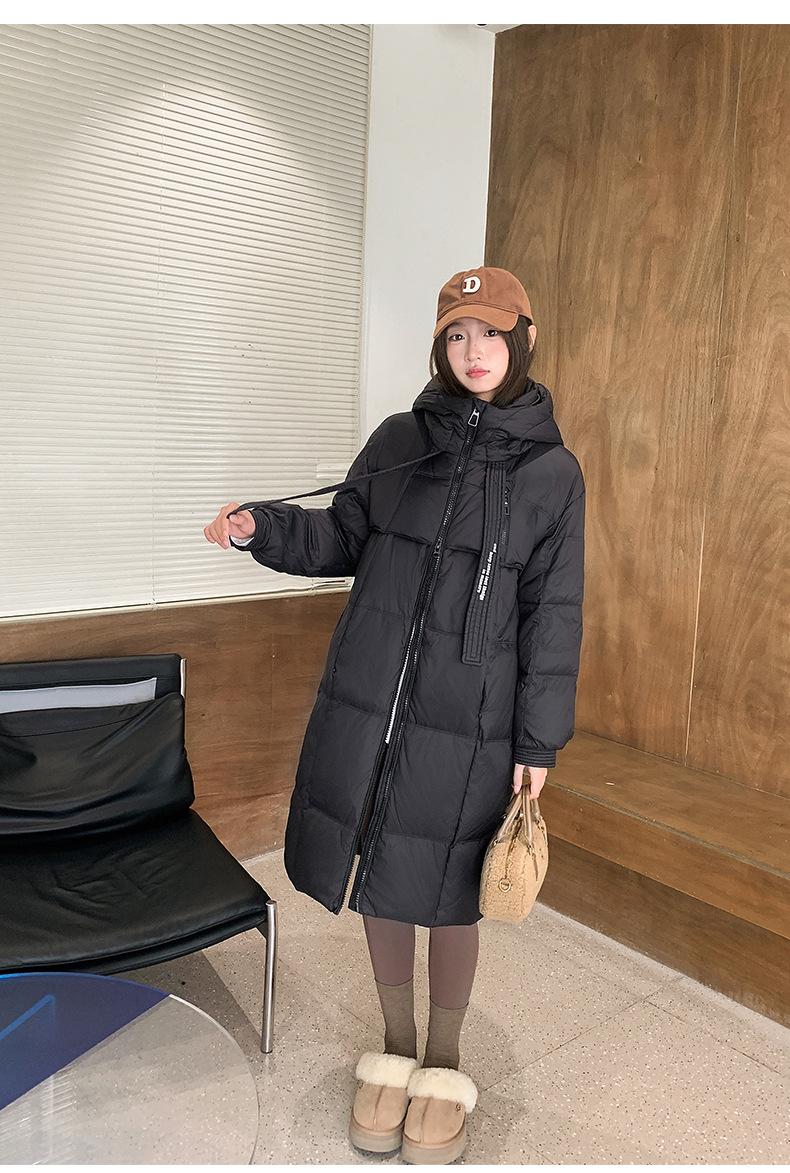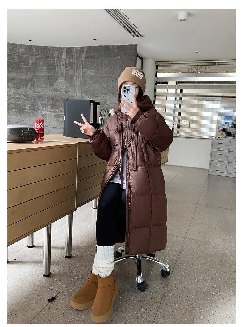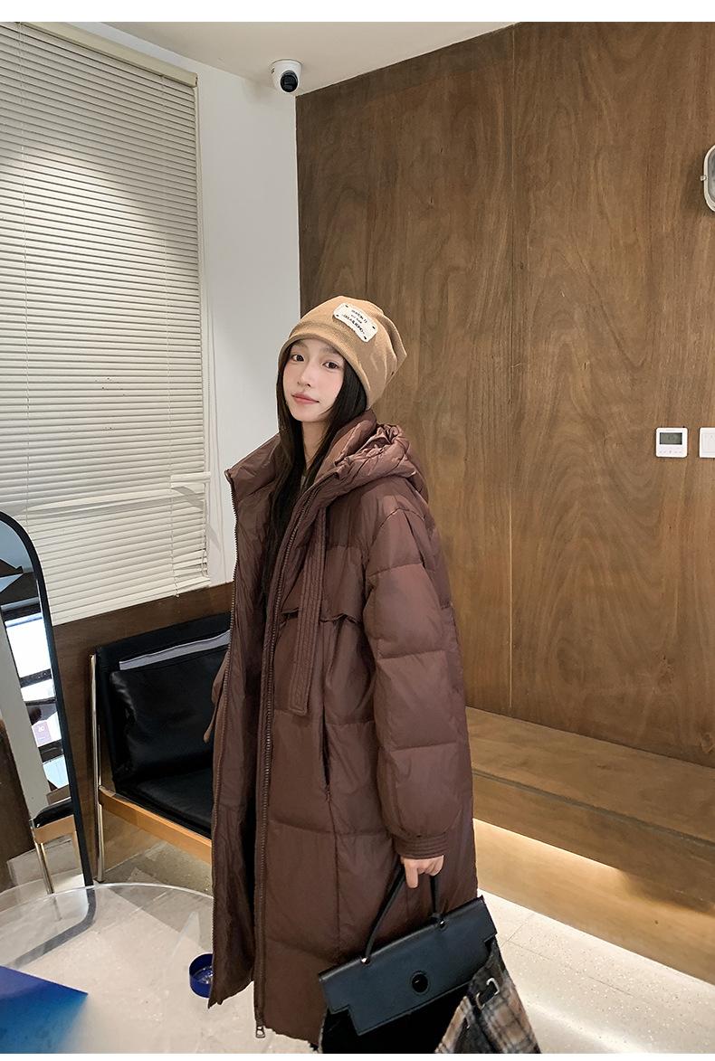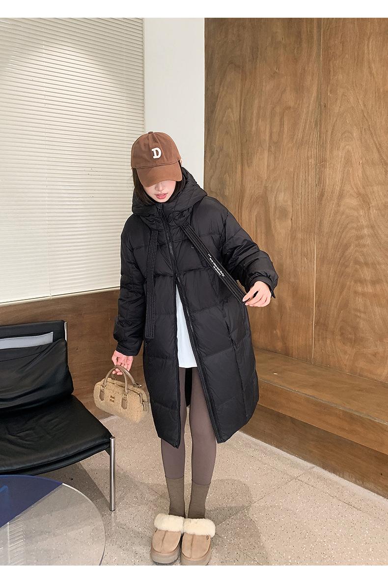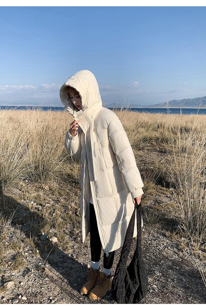 Chamarra de Plumón de Pato Blanco para Mujer Larga Sobre la Rodilla 2024 Nuevo Invierno Transfronteriza Holgada con Capucha Engrosada