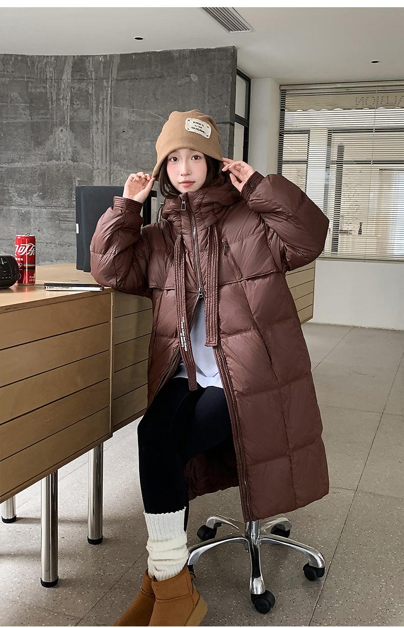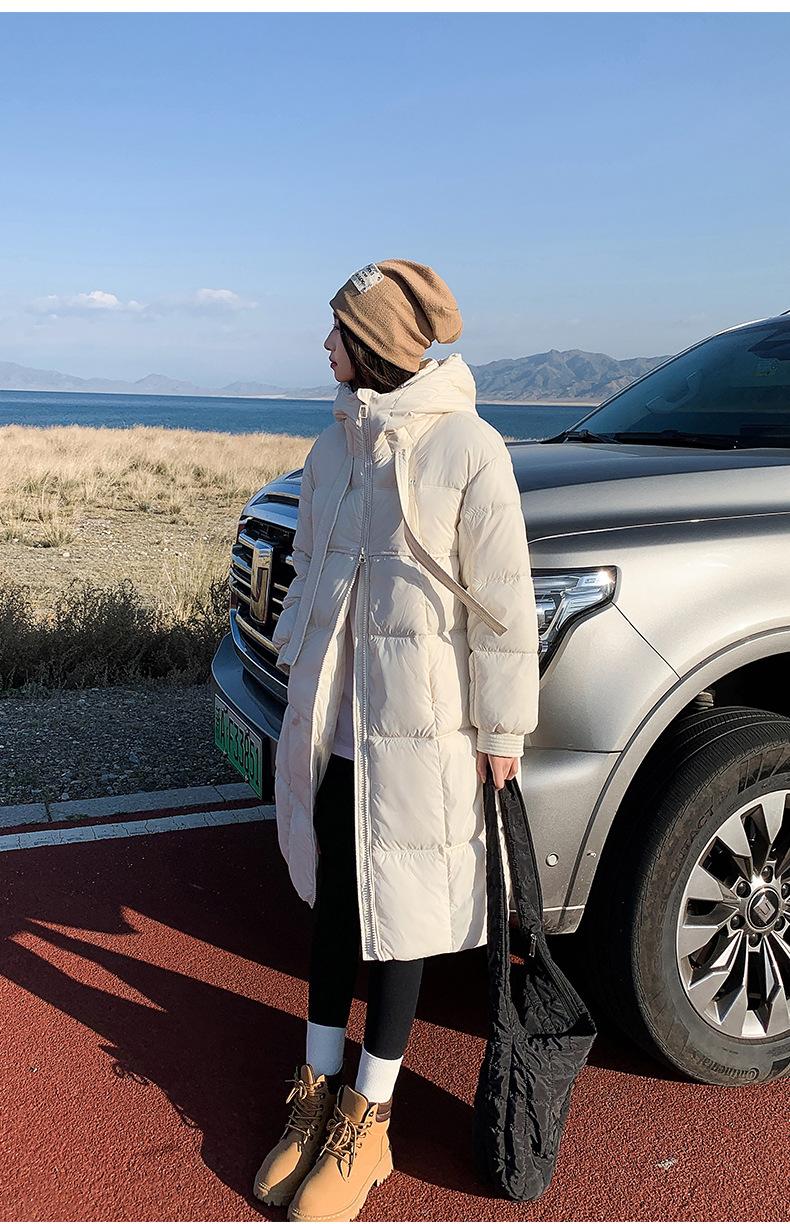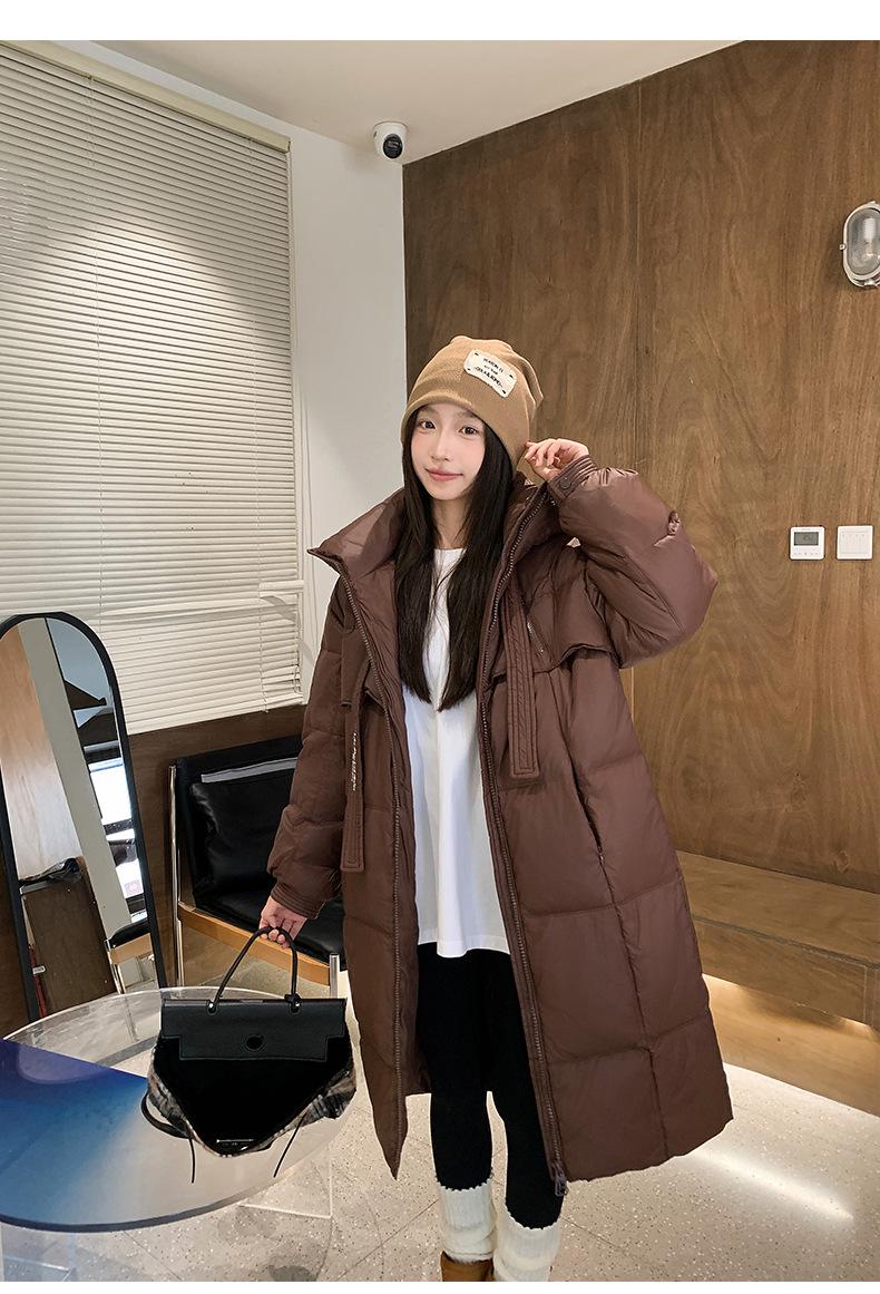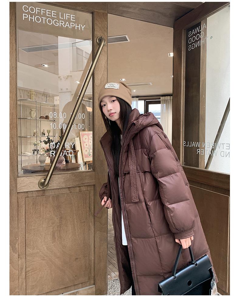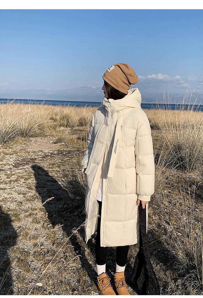 Chamarra de Plumón de Pato Blanco para Mujer Larga Sobre la Rodilla 2024 Nuevo Invierno Transfronteriza Holgada con Capucha Engrosada