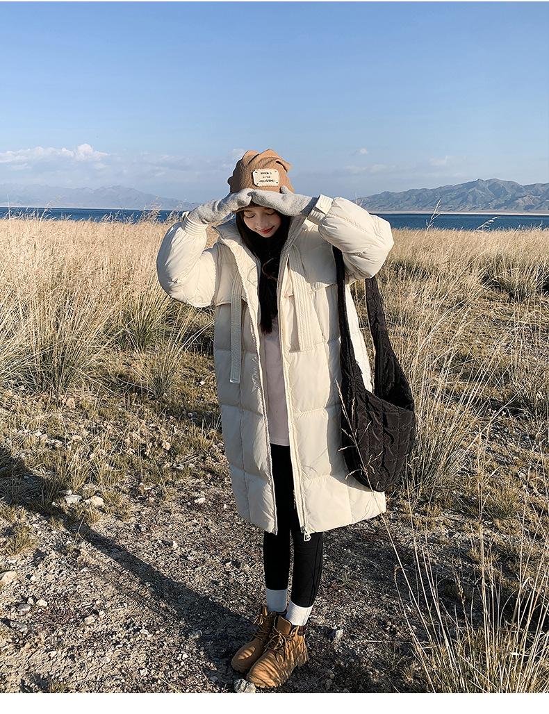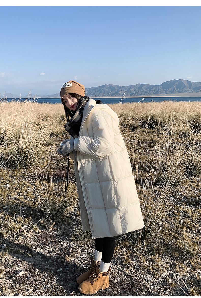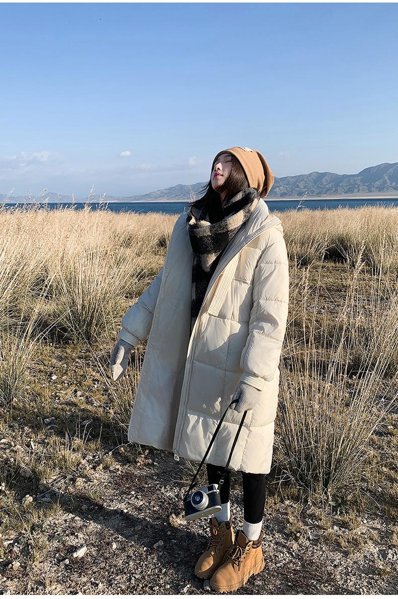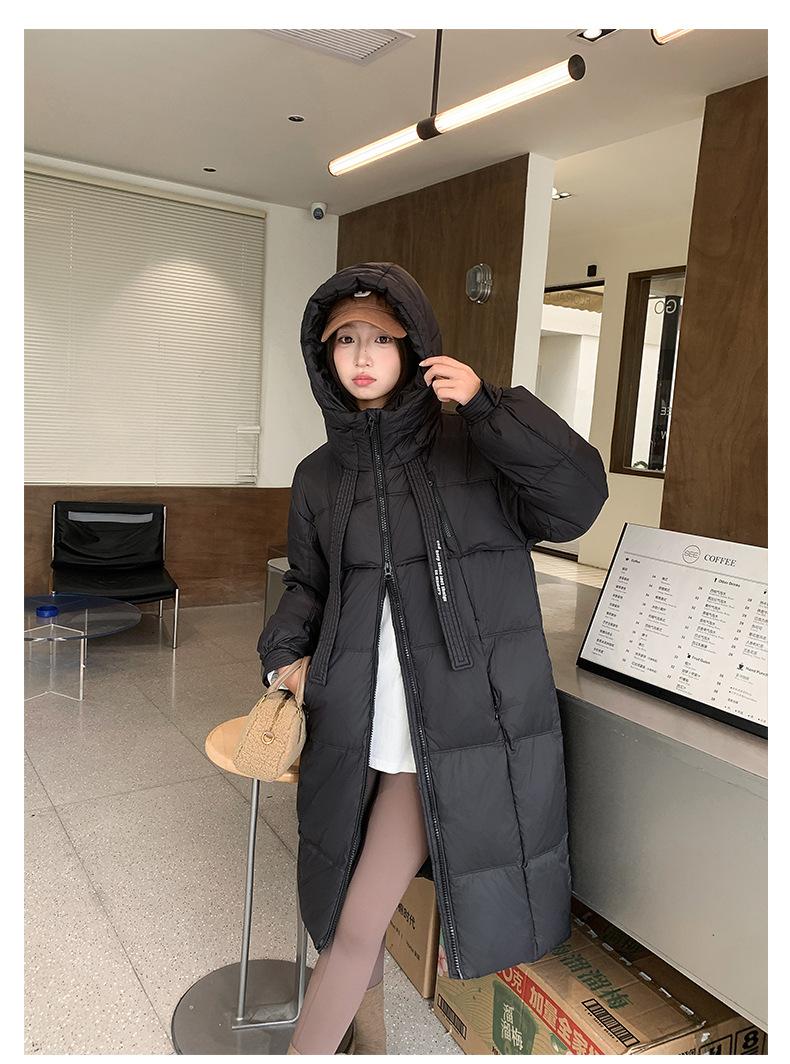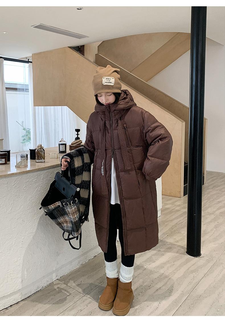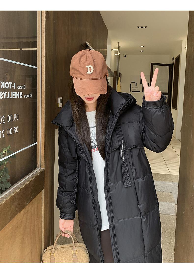 Chamarra de Plumón de Pato Blanco para Mujer Larga Sobre la Rodilla 2024 Nuevo Invierno Transfronteriza Holgada con Capucha Engrosada
