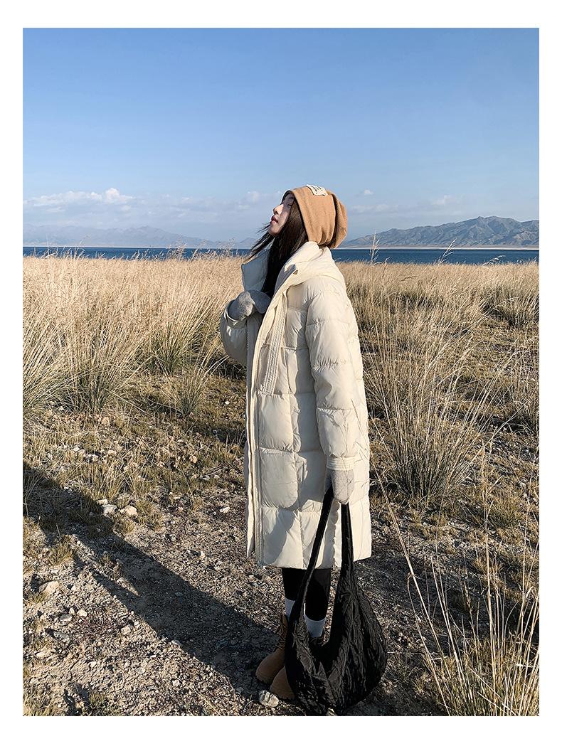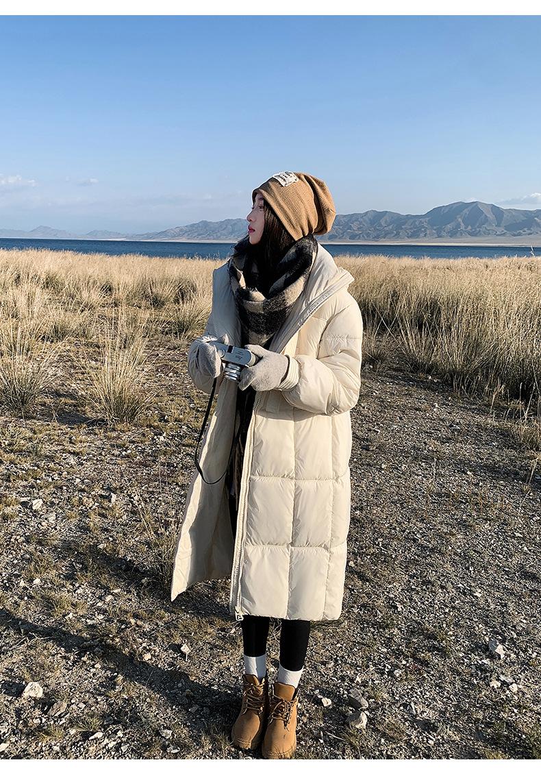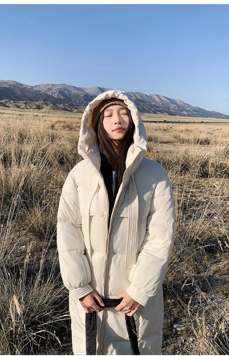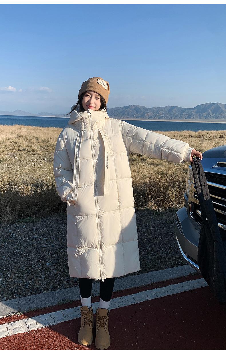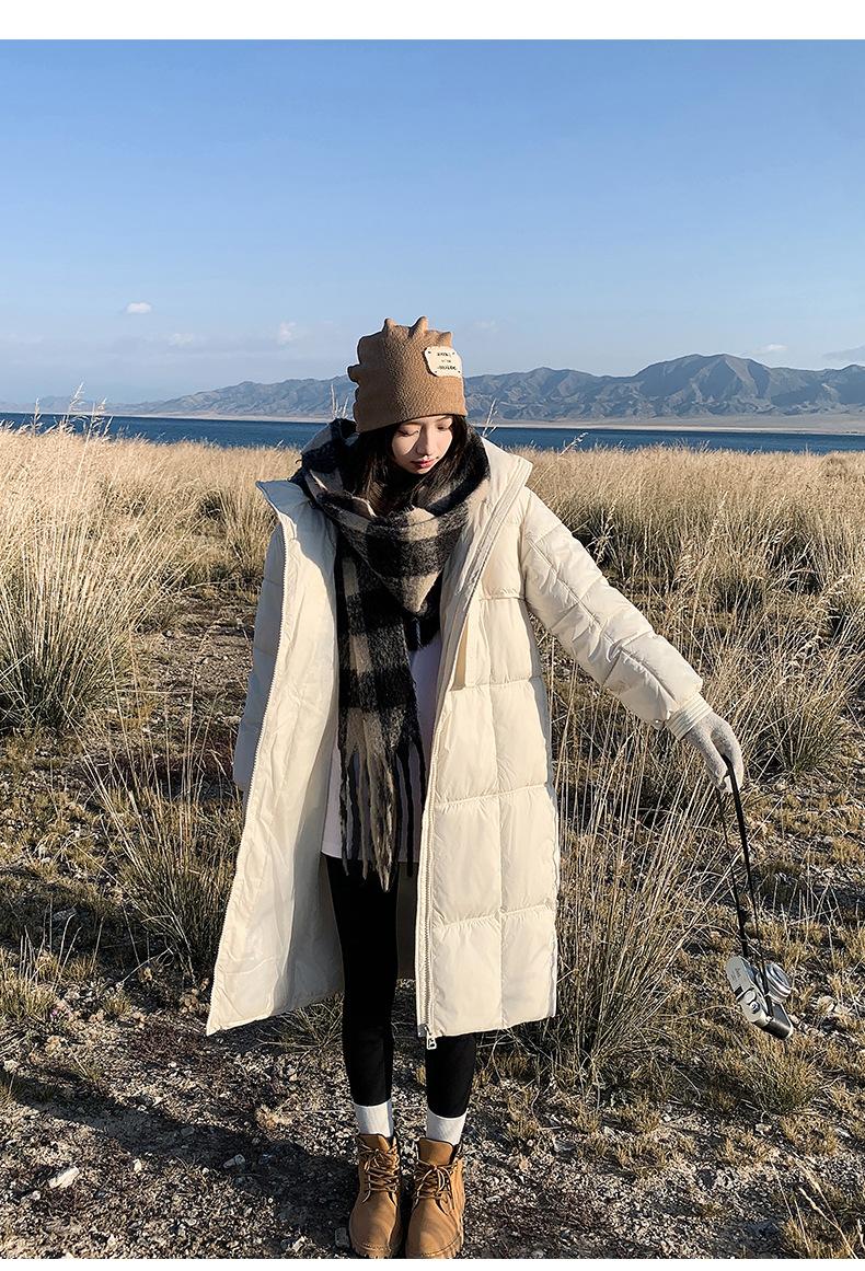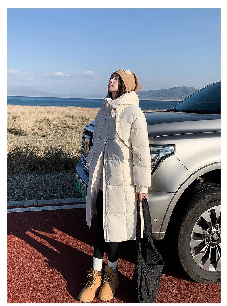 Chamarra de Plumón de Pato Blanco para Mujer Larga Sobre la Rodilla 2024 Nuevo Invierno Transfronteriza Holgada con Capucha Engrosada