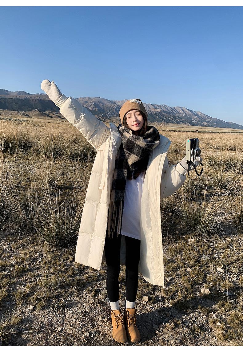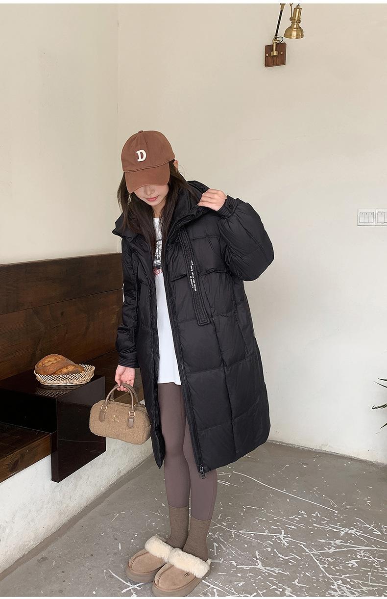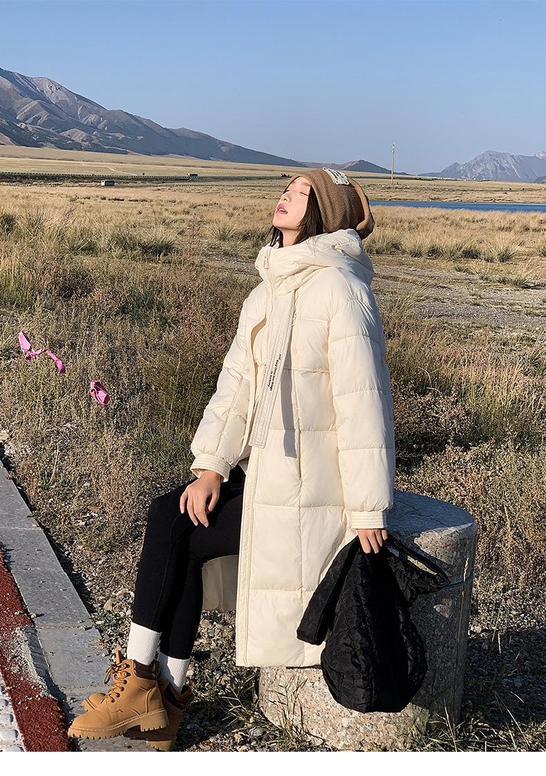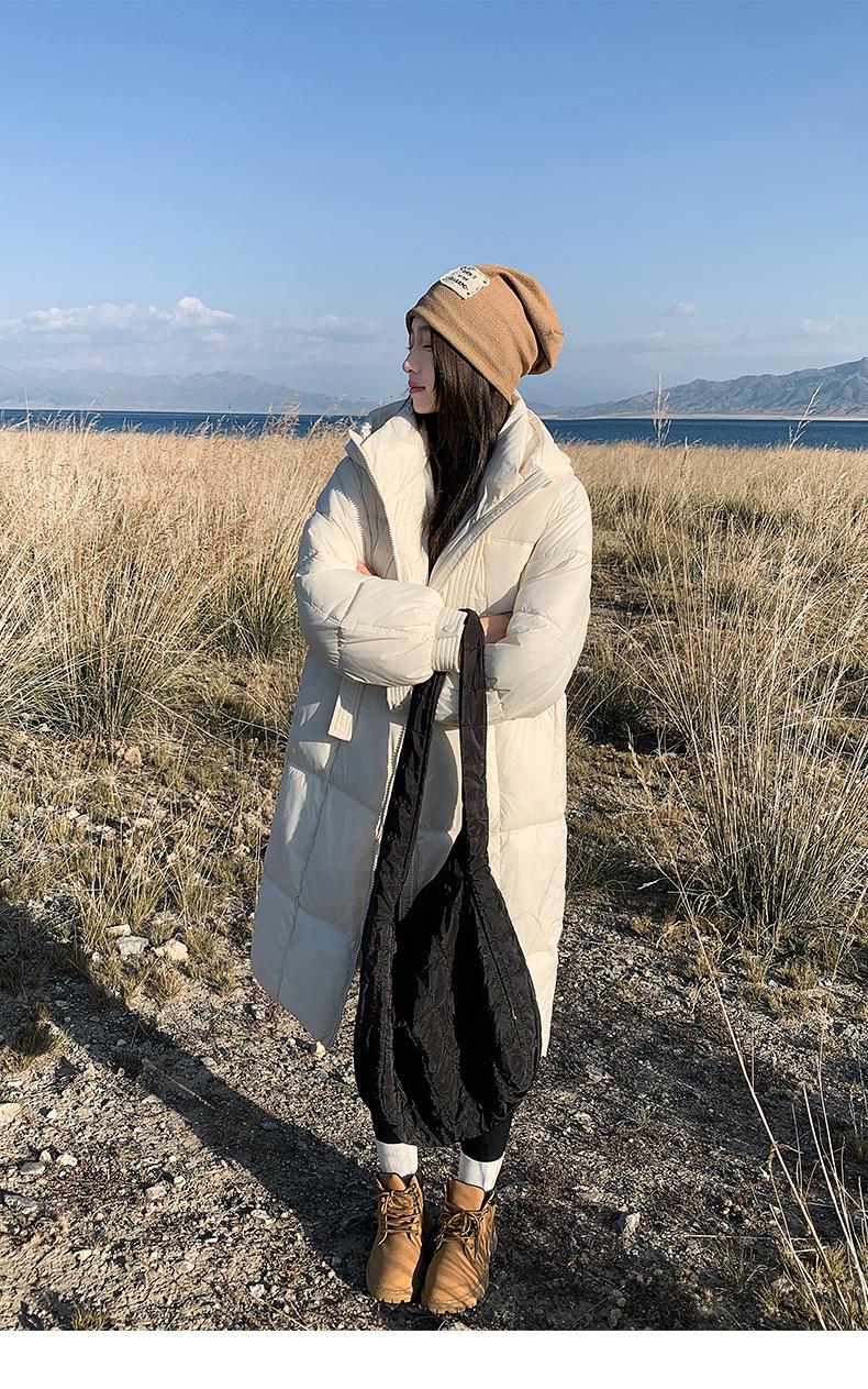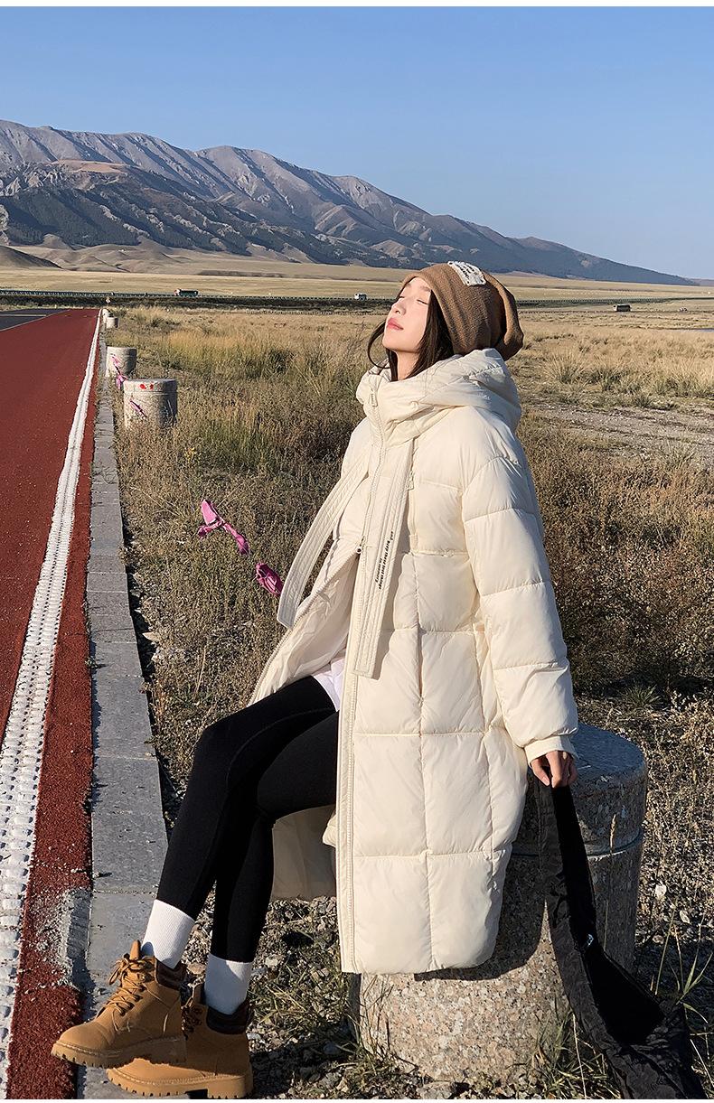Chamarra de Plumón de Pato Blanco para Mujer Larga Sobre la Rodilla 2024 Nuevo Invierno Transfronteriza Holgada con Capucha Engrosada