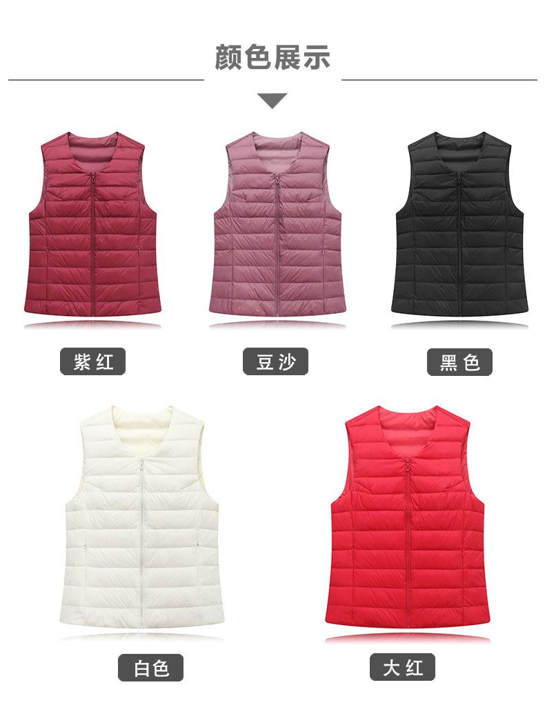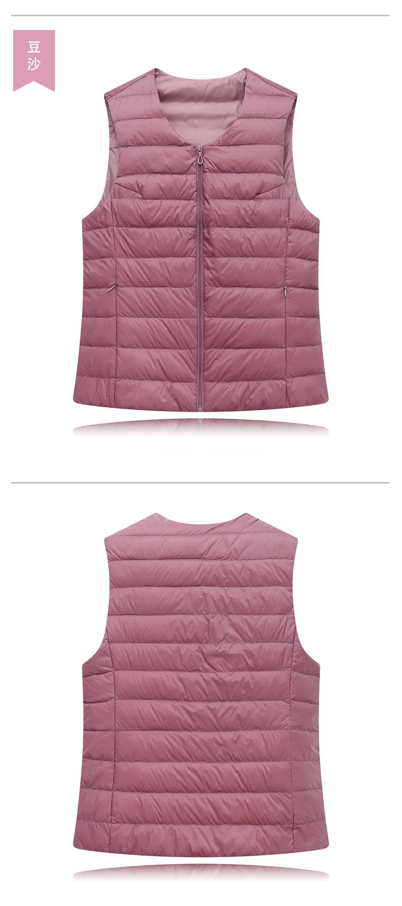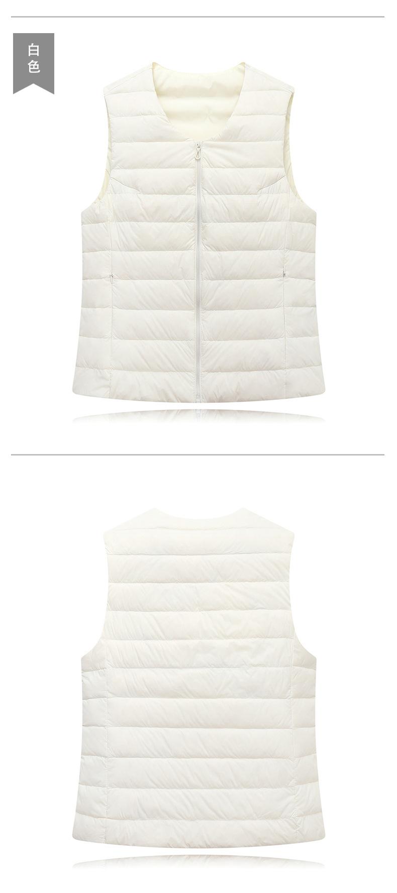 Otoño e Invierno Cuello Redondo Plumón Ligero de Pato Cálido Chaleco Interior Talla Grande para Mujer Sin Cuello Corto Ligero Chaqueta Chaleco de Plumón