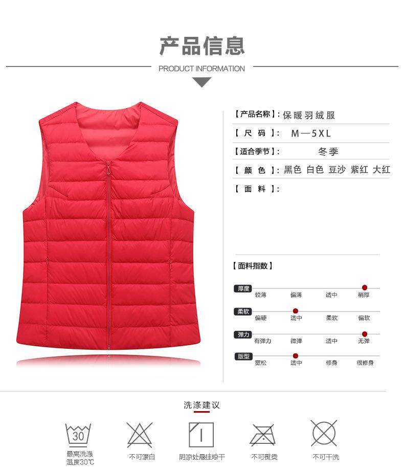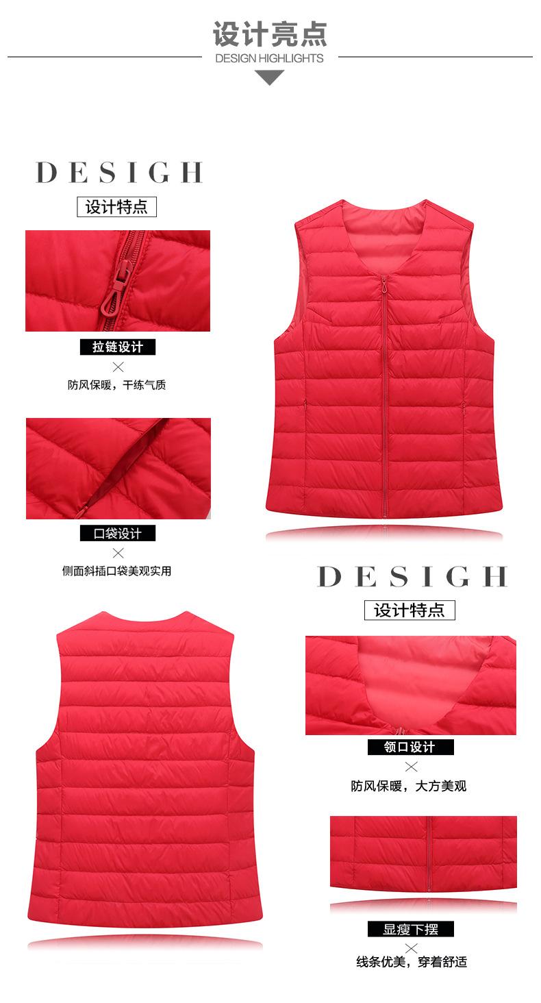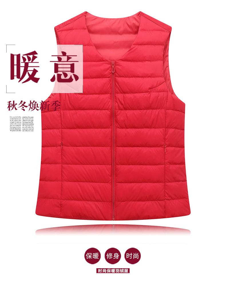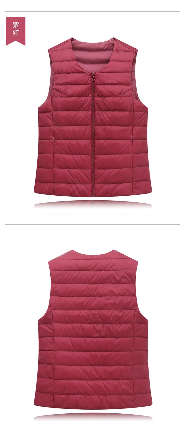 Otoño e Invierno Cuello Redondo Plumón Ligero de Pato Cálido Chaleco Interior Talla Grande para Mujer Sin Cuello Corto Ligero Chaqueta Chaleco de Plumón