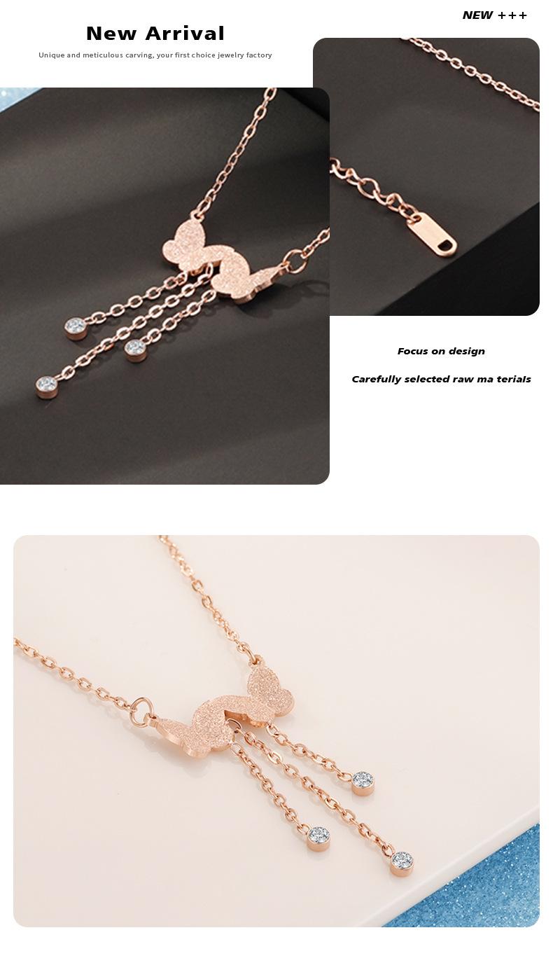 Colgante de acero inoxidable para mujer, estilo coreano, con borlas de mariposa, color liso, ligero, lujoso, popular, combinable con todo, sencillo.
