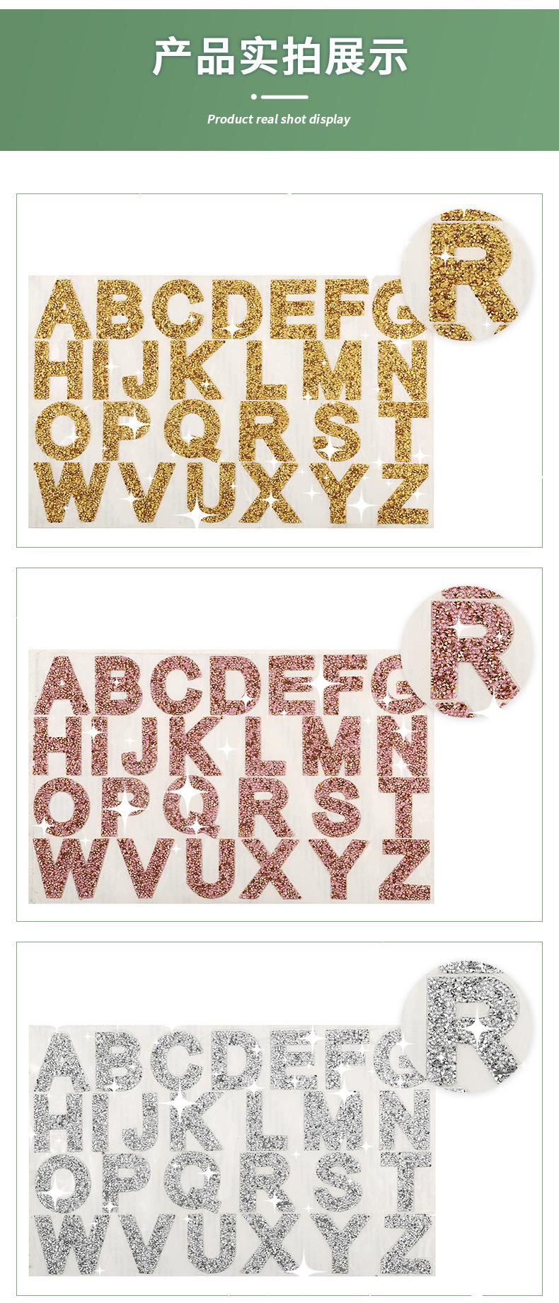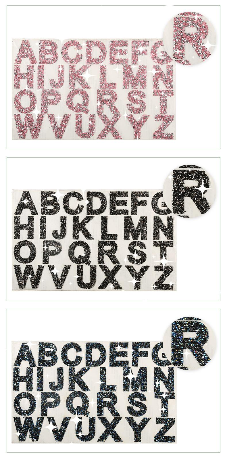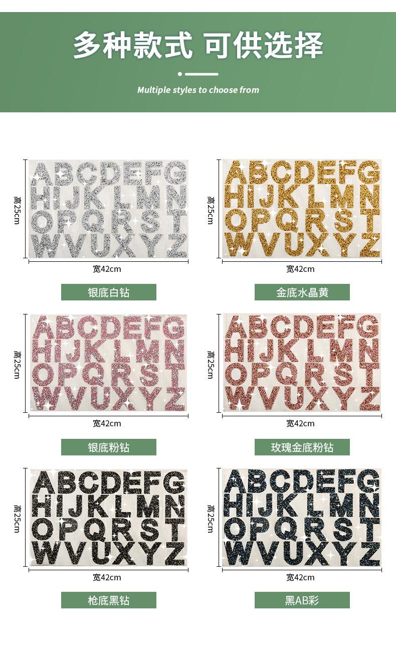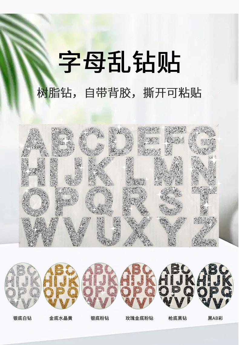Diamantes de resina personalizados de fábrica, 26 letras en inglés, adhesivos de diamantes para bricolaje, accesorios de ropa, zapatos, bolsos y accesorios.