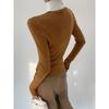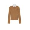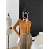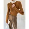 Hongyi Nuevo Estilo Primavera Temprana Cuello Alto Costuras Color Contrastante Tejido de Punto Versátil Slim Top Interior Camisa Base de Lana para Mujer