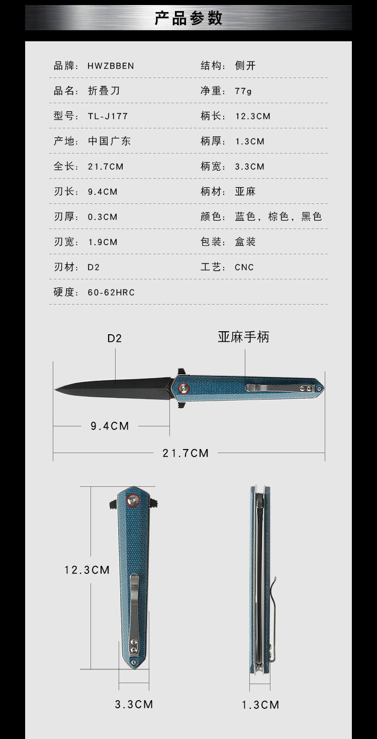 Cuchillo Plegable Portátil Multifuncional para Exterior Herramientas de Ferretería Montañismo Camping Supervivencia Mango de Lino en stock Color Morandi