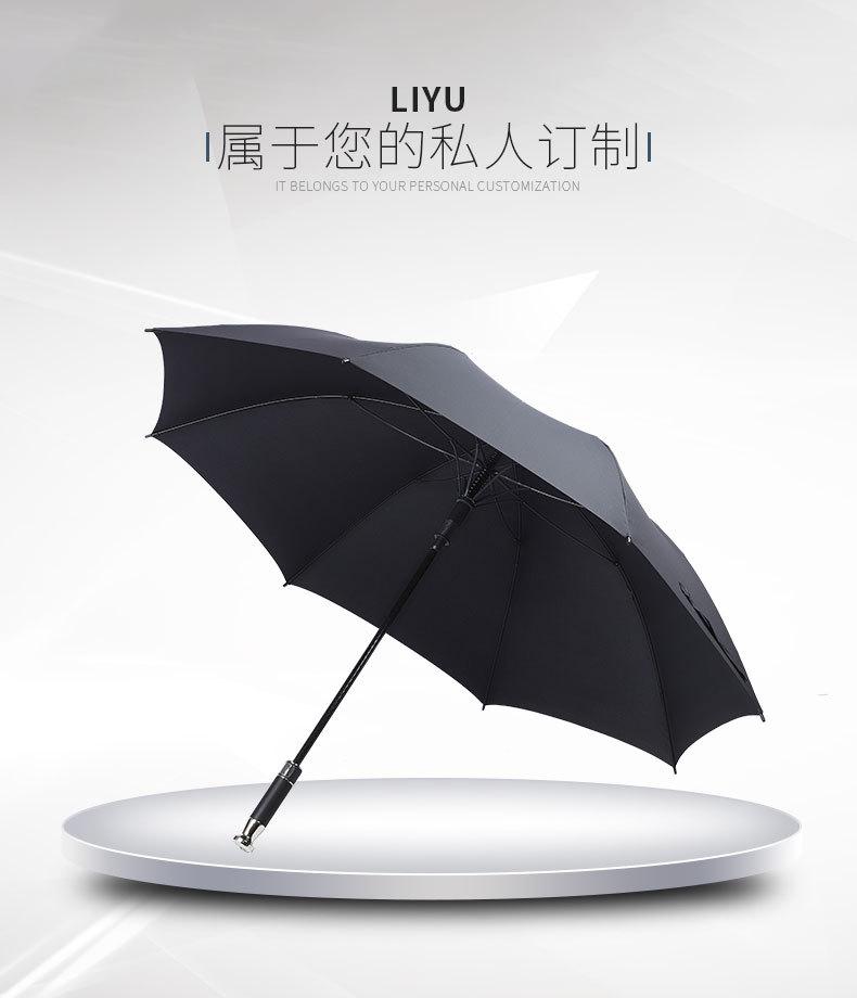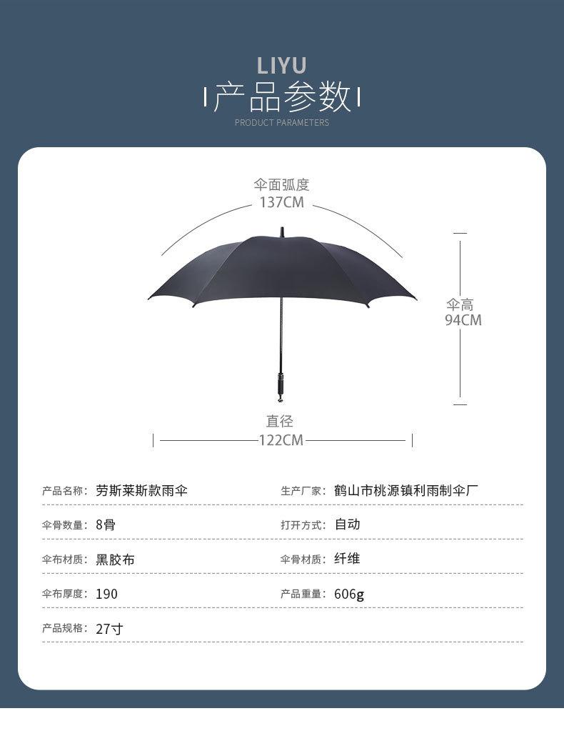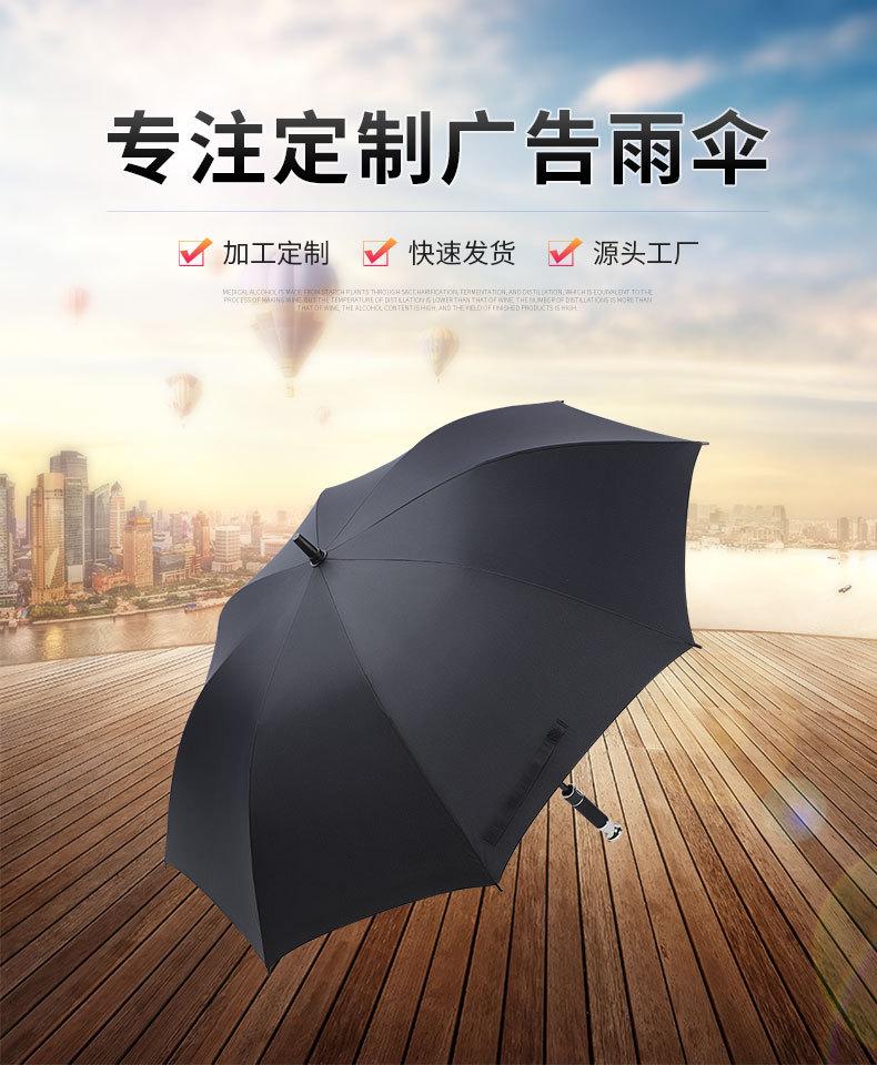 Paraguas de goma negra sólida de 27 pulgadas, paraguas de negocios de mango largo, LOGO, lluvia, uso dual, mango recto, apertura automática, paraguas de regalo de 8 huesos.