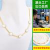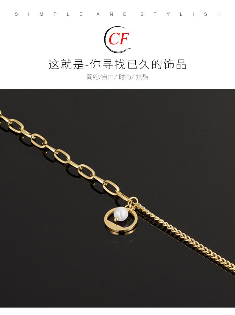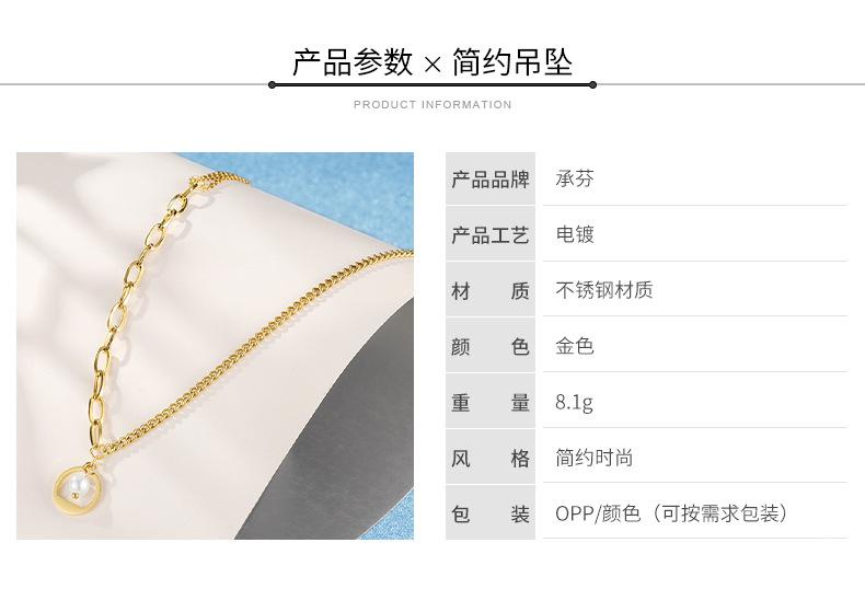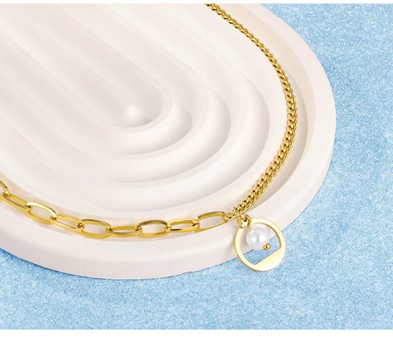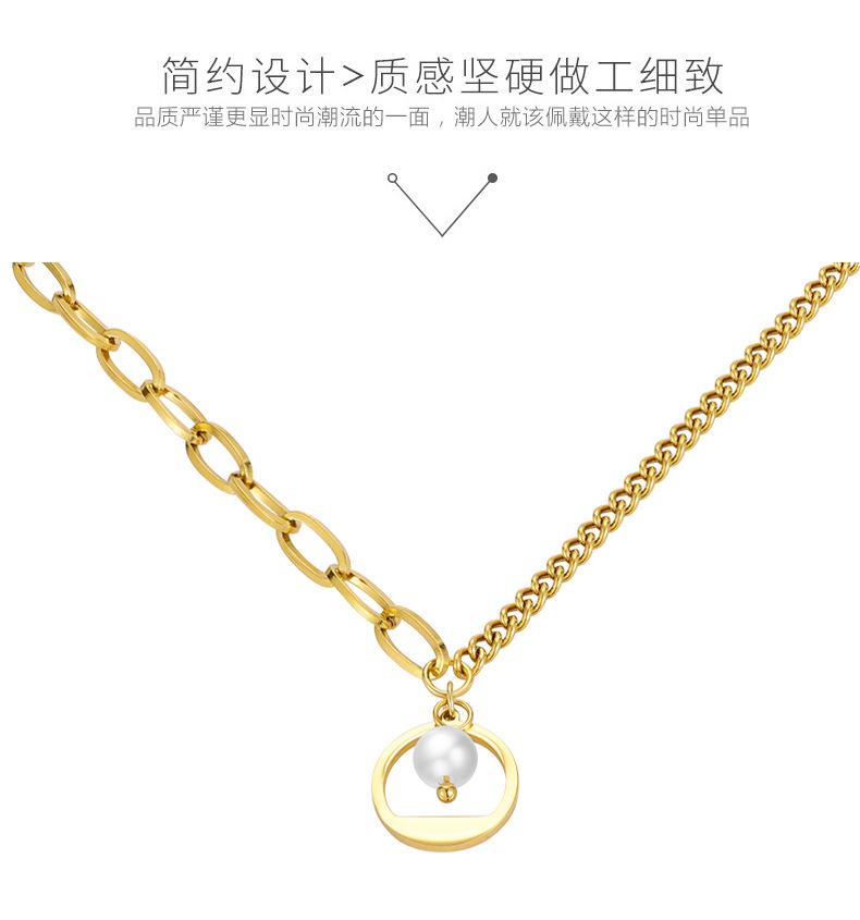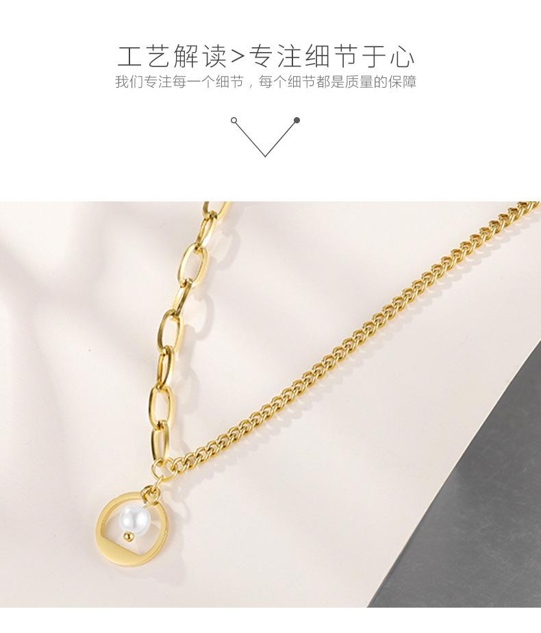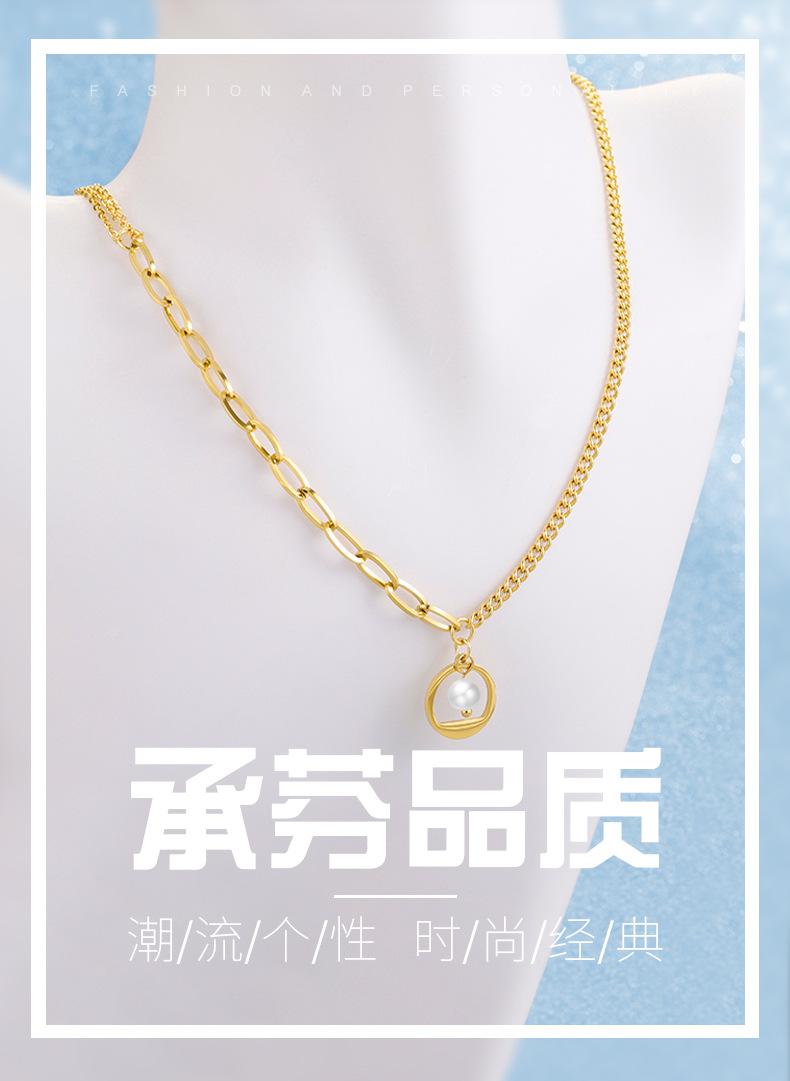 Collar de cadena de acero inoxidable con costuras en oro de 18 quilates para mujer, diseño ligero, lujoso y exquisito, con perlas de imitación incrustadas en la clavícula.