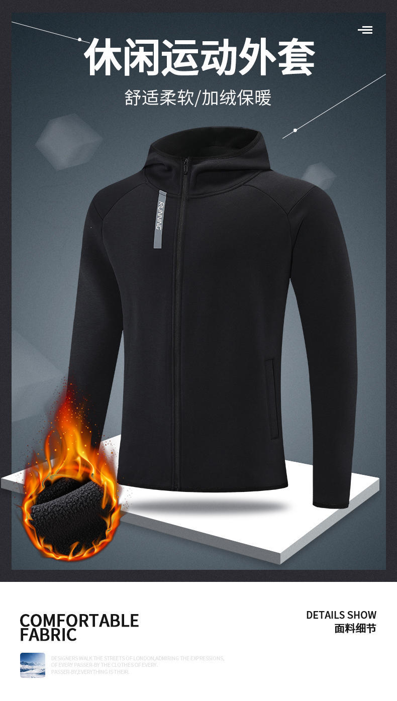 Chaqueta Deportiva para Otoño e Invierno con Forro Polar para Hombre para Correr de Secado Rápido Top Ropa de Entrenamiento Físico para Exterior con Capucha Cierre Cremallera Casual Manga Larga