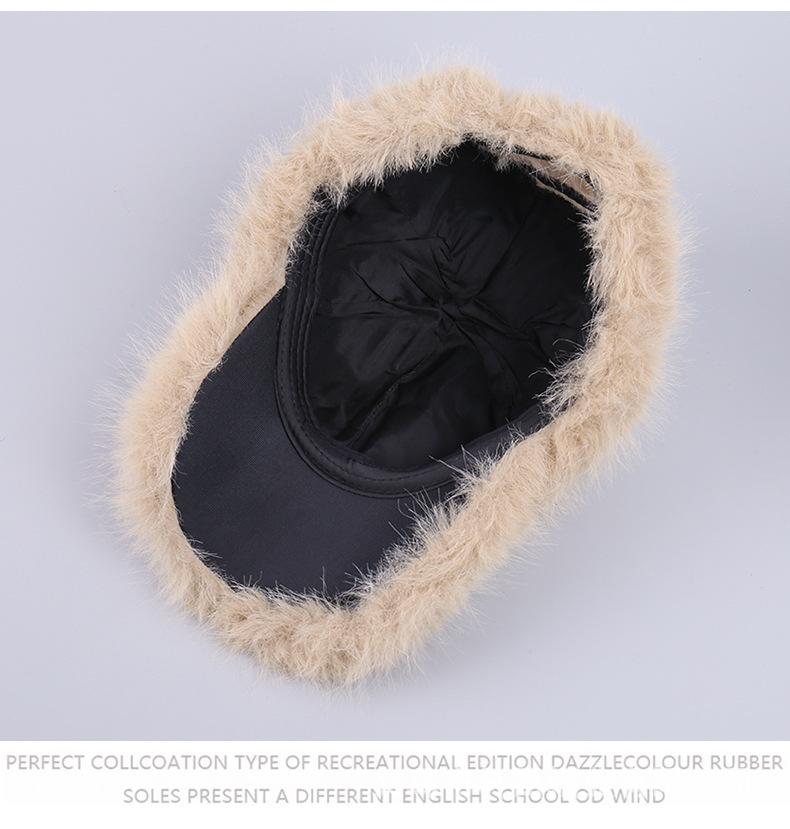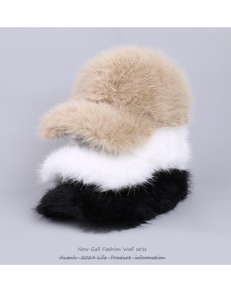 Gorra de béisbol de felpa cálida y resistente al frío para mujer, de invierno, color liso, informal, combinable, gruesa y resistente al frío.