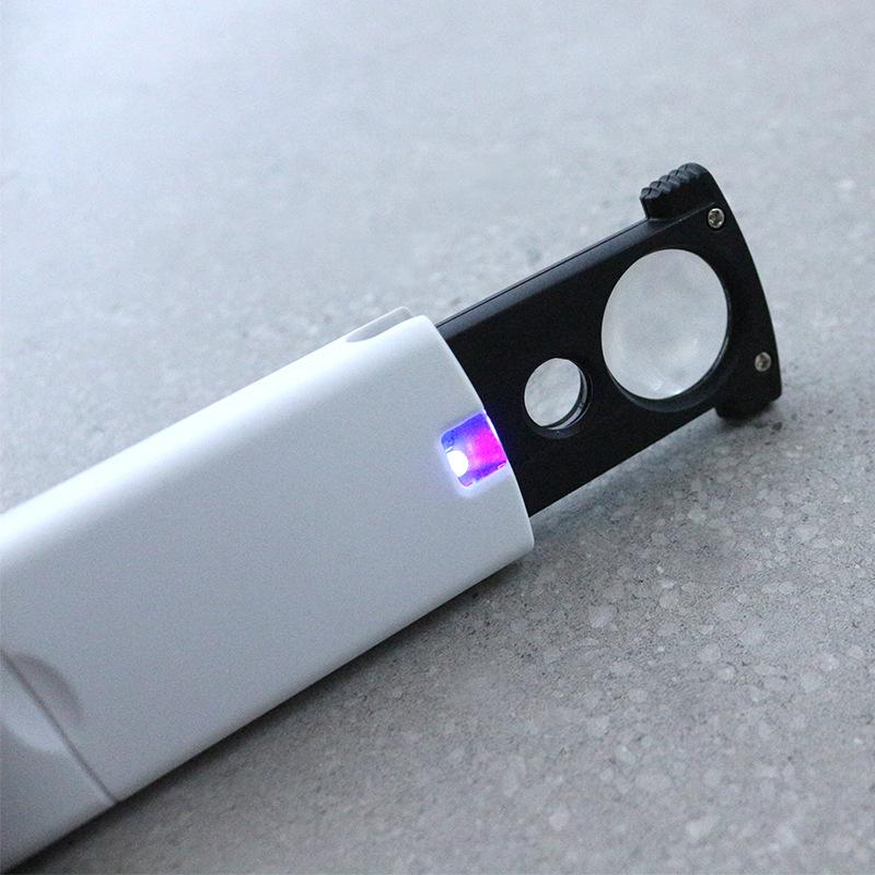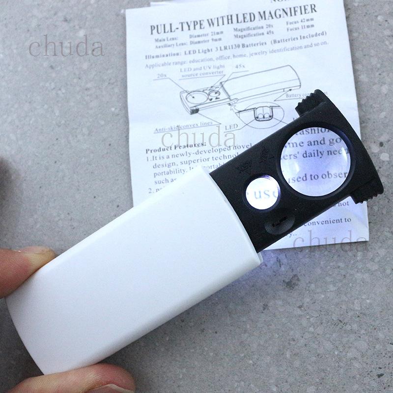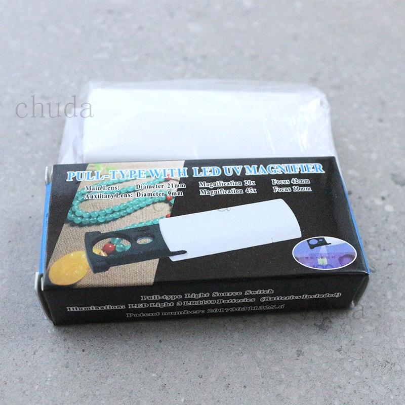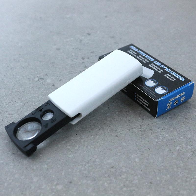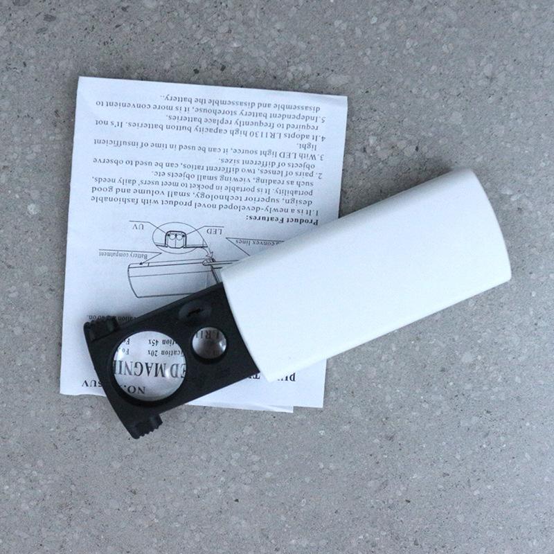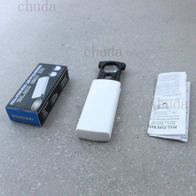 Nueva luz LED lupa portátil doble espejo tipo deslizante folleto de identificación sándalo rojo
