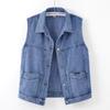 Chaleco vaquero de algodón estilo herramienta de mezclilla azul para mujer, camisa con chaleco, chaleco apilado, venta al por mayor en vivo