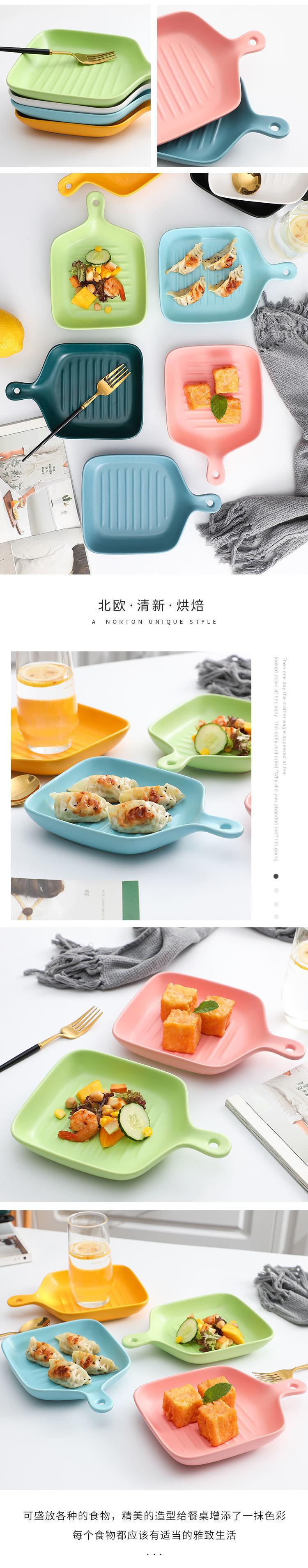 Plato con asa, plato de cerámica nórdica para hornear, horno creativo, plato para hornear arroz con asa, plato popular para el hogar en Internet, plato para la cena